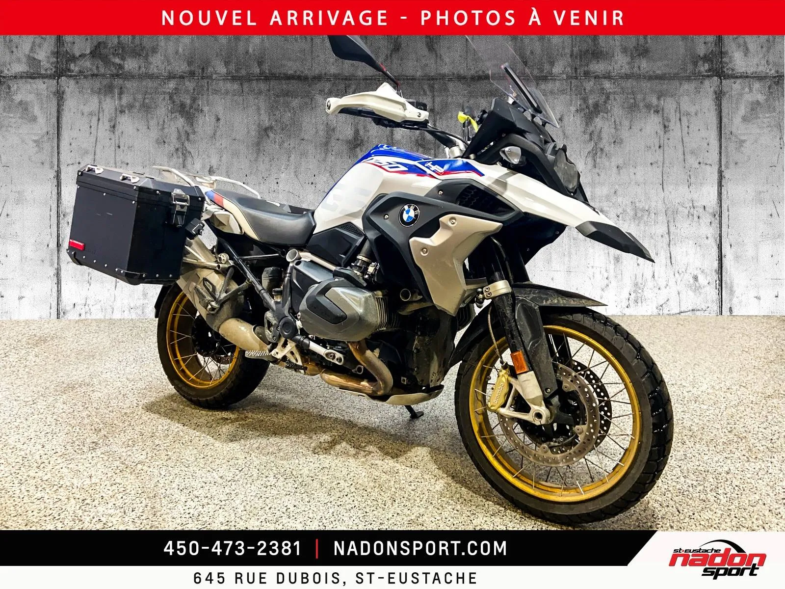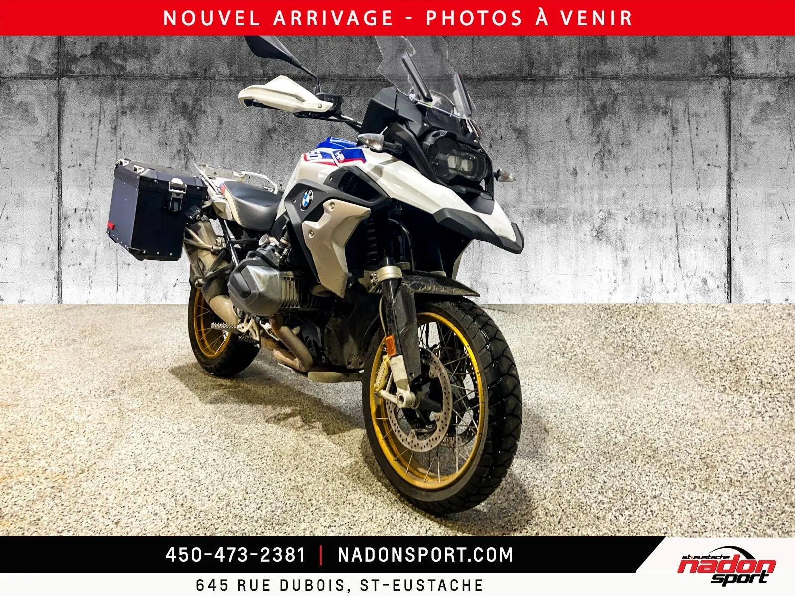 ????️ LA REINE DE L'AVENTURE : BMW R 1250 GS 2019 – PRÊTE POUR TOUT ! ????️ Vous rêvez de parcourir le monde ou simplement de dominer les routes du Québec avec un confort inégalé ? Nadon Sport Saint-Eustache vous présente cette icône : la BMW R 1250 GS 2019. Avec 40 812 km, elle est à peine à la moitié de sa jeunesse et, surtout, elle sort d'un entretien majeur ! ????️ ENTRETIEN RIGOUREUX – RIEN À PRÉVOIR ! On s'est occupés de tout pour que vous n'ayez qu'à rouler : Pneu arrière NEUF : Une traction optimale dès la sortie de la cour. Ajustement des VALVES effectué : Le moteur Boxer tourne comme une horloge suisse. Un entretien crucial déjà fait pour votre tranquillité d'esprit ! ???? LA RÉVOLUTION SHIFTCAM 2019 a marqué l'arrivée du moteur de 1 254 cc doté de la technologie BMW ShiftCam. Résultat : une puissance de 136 ch et un couple monstrueux disponible dès les bas régimes pour des dépassements foudroyants, même chargé. ???? UN ARSENAL D'OPTIONS ET DE TECHNOLOGIES : Écran TFT Couleur 6.5" : Connectivité totale pour votre téléphone et votre musique. Dynamic ESA : La suspension électronique qui s'ajuste seule selon la route et votre poids. Modes de Conduite Pro : Incluant les modes Dynamic et Enduro. Gear Shift Assist Pro : Changez de vitesse (montée/descente) sans toucher à l'embrayage. Confort Absolu : Poignées chauffantes, régulateur de vitesse (Cruise Control) et protège-mains. Sécurité Totale : ABS Pro (virages), DTC (Traction) et aide au départ en pente. ???? FICHE TECHNIQUE Kilométrage : 40 812 km Moteur : Boxer bicylindre 1 254 cc (ShiftCam) Transmission : Par arbre (Shaft drive – aucun entretien de chaîne !)