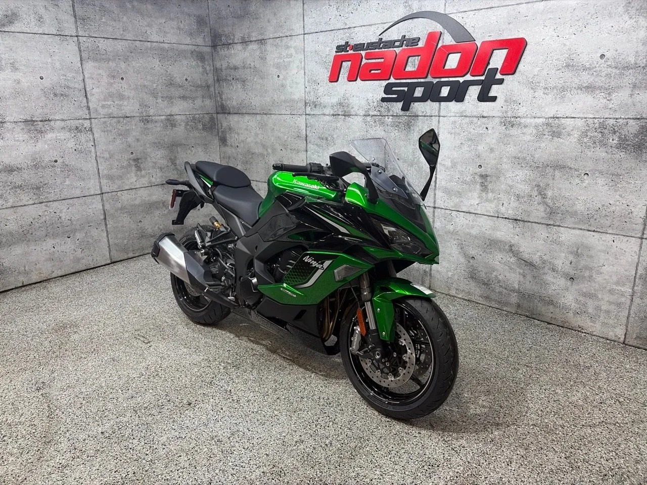 Kawasaki Ninja 1100SX SE 2026 : la sport-touring qui repousse les limites La Kawasaki Ninja 1100SX SE 2026 est bien plus qu’une moto sportive routière : c’est une invitation à la performance, la liberté et le plaisir des longues randonnées, offrant à la fois puissance et confort pour les trajets quotidiens comme pour les escapades sur route. Conçue pour les pilotes à la recherche d’un parfait équilibre entre puissance, confort et technologie, la Ninja 1100SX SE s’impose comme une référence reconnue dans la catégorie des sport-touring hautes performances. Elle est offerte ici en vert Kawasaki métallisé avec des accents noirs raffinés, combinant élégance et agressivité. Équipée d’un moteur quatre cylindres en ligne de 1 043 cm³ avec technologie électronique avancée, la Ninja 1100SX SE offre une accélération puissante, un couple constant et une stabilité exemplaire, idéal pour les longues randonnées, les routes sinueuses et les trajets quotidiens exigeants. Son châssis en aluminium léger et rigide, combiné à une suspension avant et arrière entièrement réglable et une position de conduite ergonomique, assure une maîtrise parfaite et un confort optimal, même dans des conditions exigeantes. Que vous rouliez sur les routes du Québec, dans les Laurentides ou sur des parcours montagneux, ce modèle garantit une expérience de conduite sécuritaire et engageante. Côté design et équipement, la Ninja 1100SX SE 2026 se distingue par son style sportif et moderne, et une technologie pensée pour la performance, la sécurité et le confort : Écran TFT couleur avec connectivité smartphone, Éclairage LED intégral pour une visibilité maximale, ABS et contrôle de traction Kawasaki pour une sécurité accrue, Modes de conduite ajustables pour adapter la moto à toutes les situations, Suspension semi-active électronique SE pour un confort et une stabilité optimisés. Kawasaki signe ici une moto fiable, performante et polyvalente, taillée pour les pilotes qui recherchent un sport-touring capable de tout affronter. Chez Nadon Sport à Saint-Eustache, nous proposons la Kawasaki Ninja 1100SX SE 2026 neuve à
