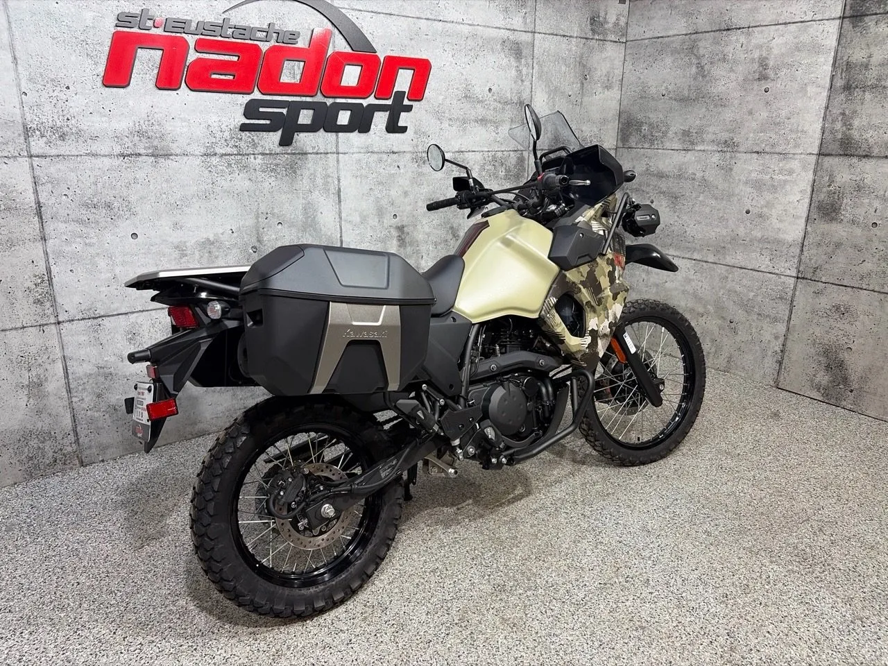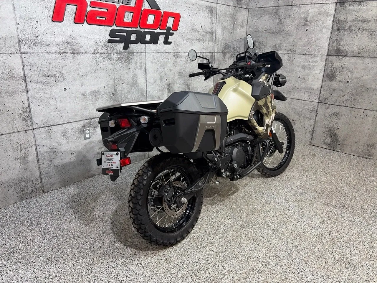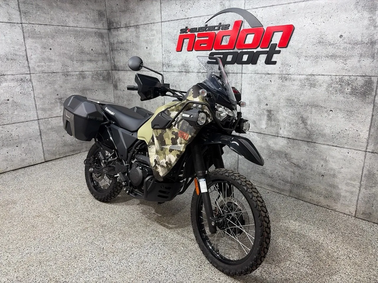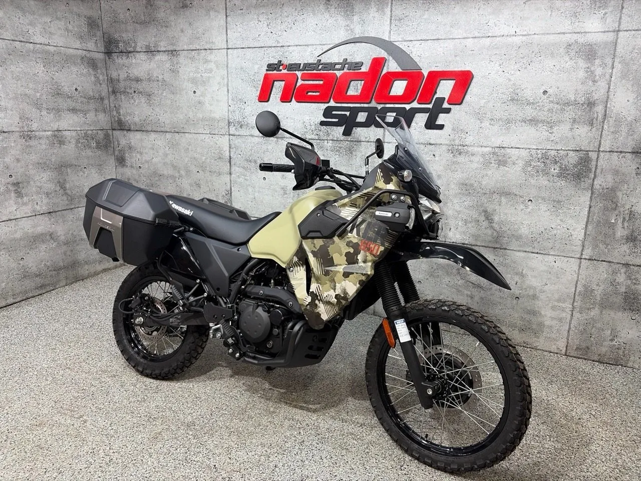 Kawasaki KLR650 Adventure 2026 : L’aventure sans limites La Kawasaki KLR650 Adventure 2026 est bien plus qu’une moto double usage : c’est une invitation à l’aventure, la liberté et la polyvalence, conçue pour les pilotes qui veulent explorer routes, sentiers et horizons lointains avec confiance et plaisir. Conçue pour les pilotes à la recherche d’un parfait équilibre entre puissance, maniabilité et confort, la KLR650 Adventure s’impose comme une référence reconnue dans la catégorie trail / aventure longue distance. Elle est offerte ici en vert Kawasaki dynamique et robuste, reflétant son esprit aventureux et résistant. Équipée d’un moteur monocylindre 652 cm³ 4-temps à injection électronique et refroidissement air/huile, la KLR650 Adventure offre un couple généreux, une traction fiable et une stabilité optimale, idéal pour longues randonnées, sentiers techniques, routes asphaltées et excursions hors route. Son châssis tubulaire renforcé, combiné à une suspension avant télescopique et arrière mono-amortisseur réglable, assure une maniabilité fluide et un confort de conduite supérieur, même dans les conditions les plus exigeantes. Que vous rouliez sur les routes et sentiers du Québec et des Laurentides, cette moto garantit une expérience sécuritaire et engageante. Côté design et équipement, la KLR650 Adventure 2026 se distingue par un style robuste, moderne et aventurier, avec une technologie pensée pour la performance et la sécurité : phares LED, tableau de bord clair, protection moteur, supports pour bagages et autonomie étendue. Kawasaki signe ici une moto fiable, performante et polyvalente, taillée pour l’aventure et le tourisme tout-terrain longue distance. Chez Nadon Sport à Saint-Eustache, nous proposons la Kawasaki KLR650 Adventure 2026 neuve à