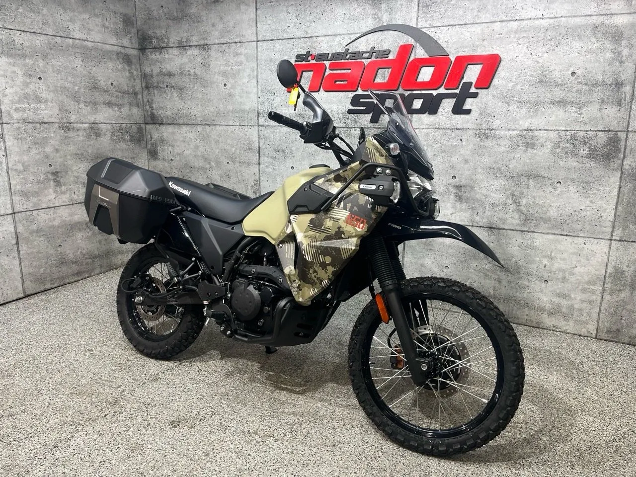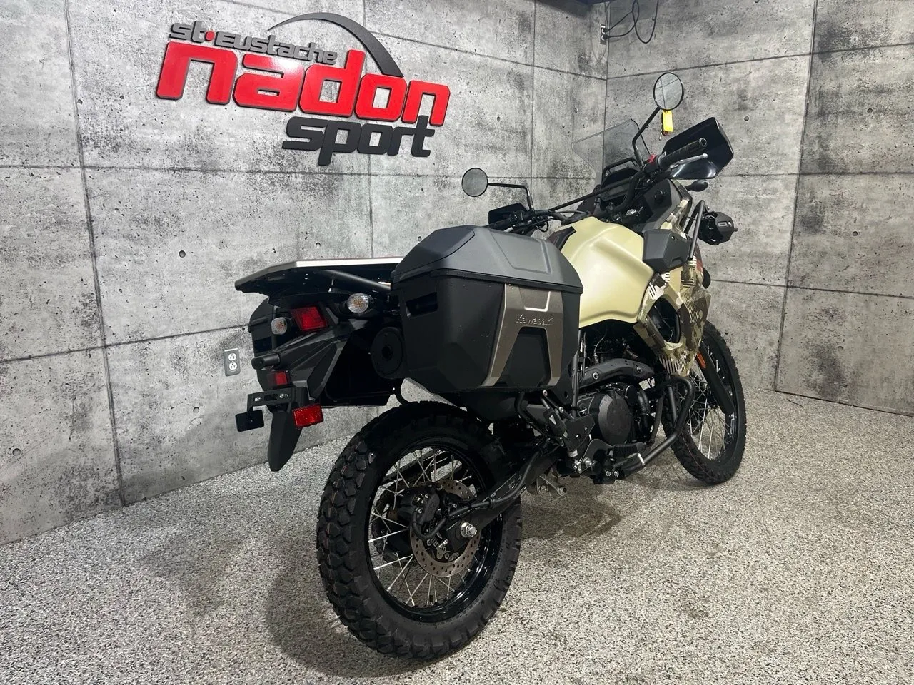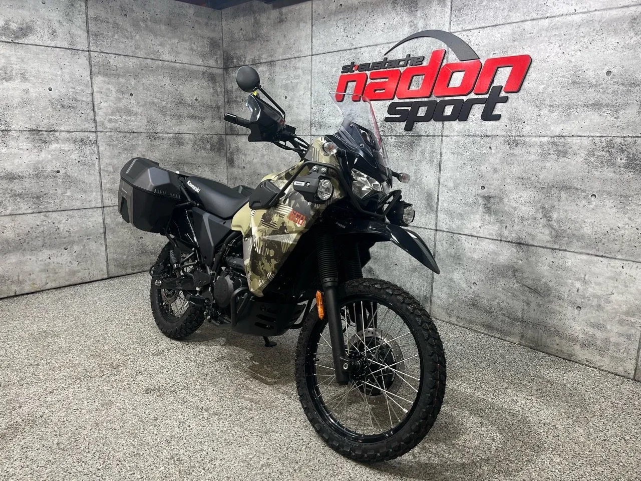 Kawasaki KLR650 Adventure 2026 : L’aventure sans limites La Kawasaki KLR650 Adventure 2026 est bien plus qu’une moto double usage : c’est une invitation à l’aventure, la liberté et la polyvalence, conçue pour les pilotes qui veulent explorer routes, sentiers et horizons lointains avec confiance et plaisir. Conçue pour les pilotes à la recherche d’un parfait équilibre entre puissance, maniabilité et confort, la KLR650 Adventure s’impose comme une référence reconnue dans la catégorie trail / aventure longue distance. Elle est offerte ici en vert Kawasaki dynamique et robuste, reflétant son esprit aventureux et résistant. Équipée d’un moteur monocylindre 652 cm³ 4-temps à injection électronique et refroidissement air/huile, la KLR650 Adventure offre un couple généreux, une traction fiable et une stabilité optimale, idéal pour longues randonnées, sentiers techniques, routes asphaltées et excursions hors route. Son châssis tubulaire renforcé, combiné à une suspension avant télescopique et arrière mono-amortisseur réglable, assure une maniabilité fluide et un confort de conduite supérieur, même dans les conditions les plus exigeantes. Que vous rouliez sur les routes et sentiers du Québec et des Laurentides, cette moto garantit une expérience sécuritaire et engageante. Côté design et équipement, la KLR650 Adventure 2026 se distingue par un style robuste, moderne et aventurier, avec une technologie pensée pour la performance et la sécurité : phares LED, tableau de bord clair, protection moteur, supports pour bagages et autonomie étendue. Kawasaki signe ici une moto fiable, performante et polyvalente, taillée pour l’aventure et le tourisme tout-terrain longue distance. Chez Nadon Sport à Saint-Eustache, nous proposons la Kawasaki KLR650 Adventure 2026 neuve à