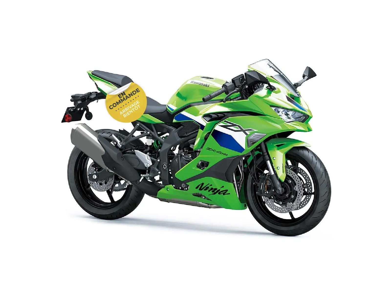 Dans une catégorie bondée de modèles sport de 400 cm³, Kawasaki introduit un nouveau modèle supersport révolutionnaire. La Ninja ZX-4R assemble un moteur de quatre cylindres en ligne de 399 cm³ à la performance inégalée dans un châssis compact aux proportions similaires à celles de la Ninja ZX-25R.  Que ce soit sur la piste ou sur la route, faites l’expérience de la Ninja ZX-4R, de sa puissance exaltante, de son chant enivrant à haut régime et de sa tenue de route précise et agile qui éveilleront la passion du supersport qui sommeille en vous.
