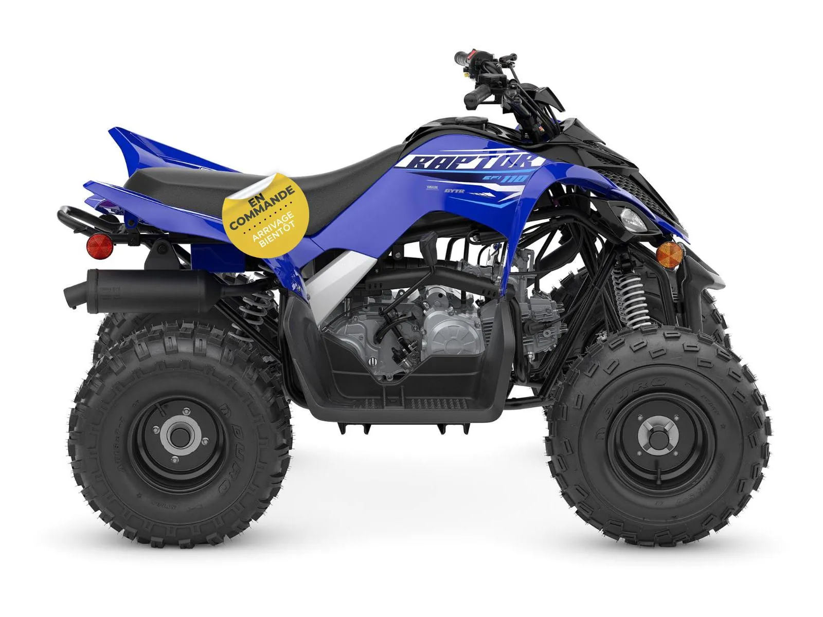 Yamaha Raptor 110 2026 : le premier VTT sport pour apprendre, progresser et s’amuser en toute sécurité Le Yamaha Raptor 110 2026 est bien plus qu’un VTT jeunesse : c’est une véritable invitation à l’aventure, au plaisir de conduite et à l’apprentissage sécuritaire, spécialement conçu pour initier les jeunes pilotes au monde du hors route avec confiance. Conçu pour les pilotes à la recherche d’un parfait équilibre entre maniabilité, fiabilité et sécurité, le Raptor 110 s’impose comme une référence reconnue dans la catégorie des VTT sport jeunesse. Il est offert ici en bleu Yamaha Racing vif et dynamique, une couleur emblématique qui reprend le style des modèles sport pleine grandeur et fait rêver les futurs passionnés. Équipé d’un moteur monocylindre de 112 cm³ à refroidissement par air, doté d’une transmission automatique à 4 rapports et d’un démarrage électrique, le Raptor 110 offre une accélération douce, une traction contrôlée et une excellente stabilité, idéales pour l’apprentissage, les sentiers et le hors route léger. Son châssis compact et robuste, combiné à une ergonomie pensée pour les jeunes pilotes, une position de conduite naturelle et une direction précise, assure une prise en main facile et rassurante, même dans des conditions exigeantes ou lors des premières sorties. Que vous rouliez au Québec, dans les Laurentides ou sur des sentiers privés, ce Raptor 110 garantit une expérience de conduite sécuritaire, engageante et amusante, sous la supervision des parents. Côté design et équipement, le Raptor 110 2026 se distingue par un style sportif inspiré de la compétition et une technologie pensée avant tout pour la sécurité et le contrôle : Limiteur d’accélérateur ajustable pour un apprentissage progressif Coupe-circuit de sécurité (tether switch) Démarrage électrique simple et fiable Transmission automatique adaptée aux débutants Freins efficaces et faciles à doser Yamaha signe ici un VTT jeunesse fiable, sécuritaire et durable, taillé pour l’initiation au pilotage et le plaisir en famille. Chez Nadon Sport à Saint-Eustache, nous proposons le Yamaha Raptor 110 2026 neuf à