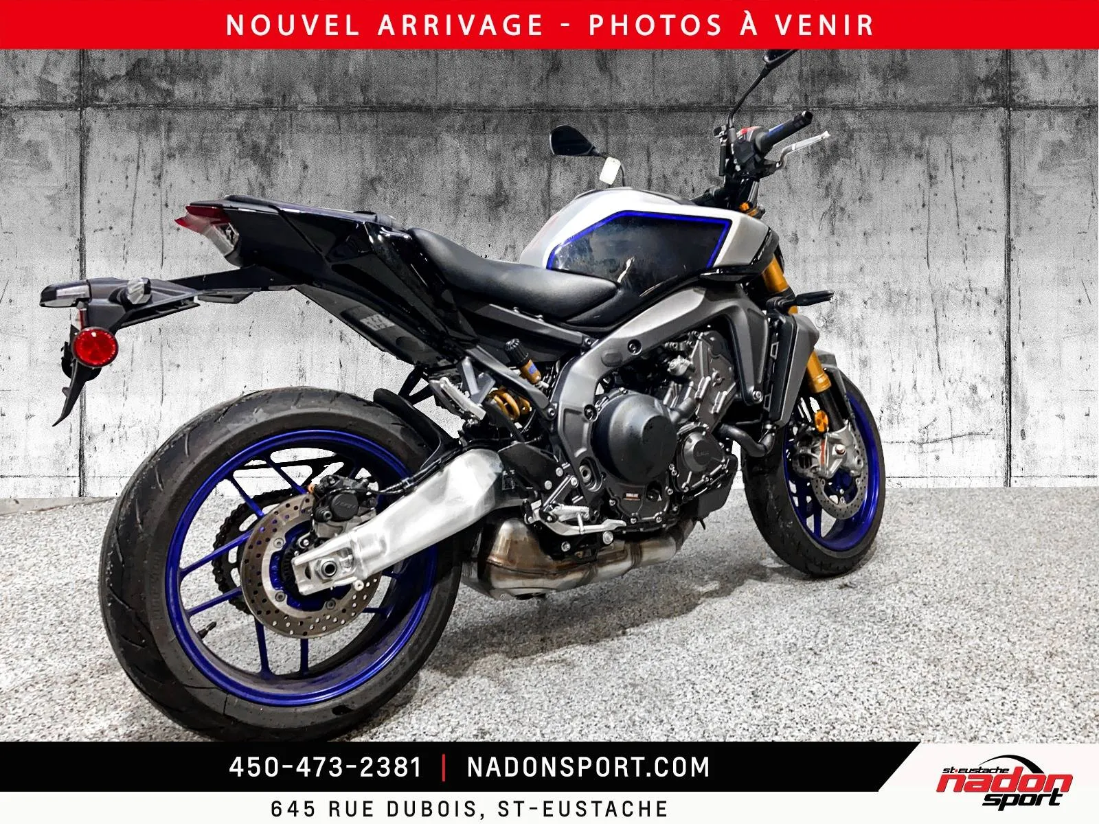 ???? ÉDITION SP : Yamaha MT-09 SP 2024 – La Perfection Hyper Naked Vivez l'adrénaline pure avec la version la plus radicale du moteur CP3. Pourquoi acheter neuf quand on peut obtenir une MT-09 SP 2024 pratiquement neuve, déjà rodée et prête à livrer ses 119 chevaux ? Avec seulement 5 696 km, cette machine représente le sommet de l'ingénierie japonaise : un moteur explosif marié à une partie cycle de compétition. ???? Caractéristiques Principales : Année : 2024 (Dernier design et technologie) Kilométrage : 5 696 km Moteur : Trois cylindres CP3 de 890cc (Le moteur le plus acclamé de sa catégorie) Couleur : Icon Performance (Exclusif à la SP) ???? Équipement Premium & Options SP : Suspensions de Course : Fourche KYB haut de gamme et amortisseur arrière Öhlins entièrement ajustable pour une tenue de route chirurgicale. Freinage Ultime : Étriers Brembo Stylema (le standard des super-motos) pour une puissance de freinage inégalée. Technologie de Pointe : Quickshifter (QSS) montée/descente, régulateur de vitesse (Cruise Control) et modes de conduite "Track" personnalisables. Aides à la conduite : Centrale IMU 6 axes gérant l'ABS en virage, le contrôle de traction et le contrôle de cabrage. Look Exclusif : Bras oscillant en aluminium brossé et finitions haut de gamme propres à la série SP. ???? PRIX NADON SPORT : 18 495 $ L'avis de l'expert : La MT-09 SP est souvent en rupture de stock. À ce prix, vous obtenez une moto 2024 dans un état concours, équipée des meilleures suspensions au monde, sans les délais de livraison du neuf. ???? Disponible chez Nadon Sport St-Eustache Ne tardez pas, les modèles SP sont les plus recherchés sur le marché et celui-ci ne restera pas longtemps en inventaire.