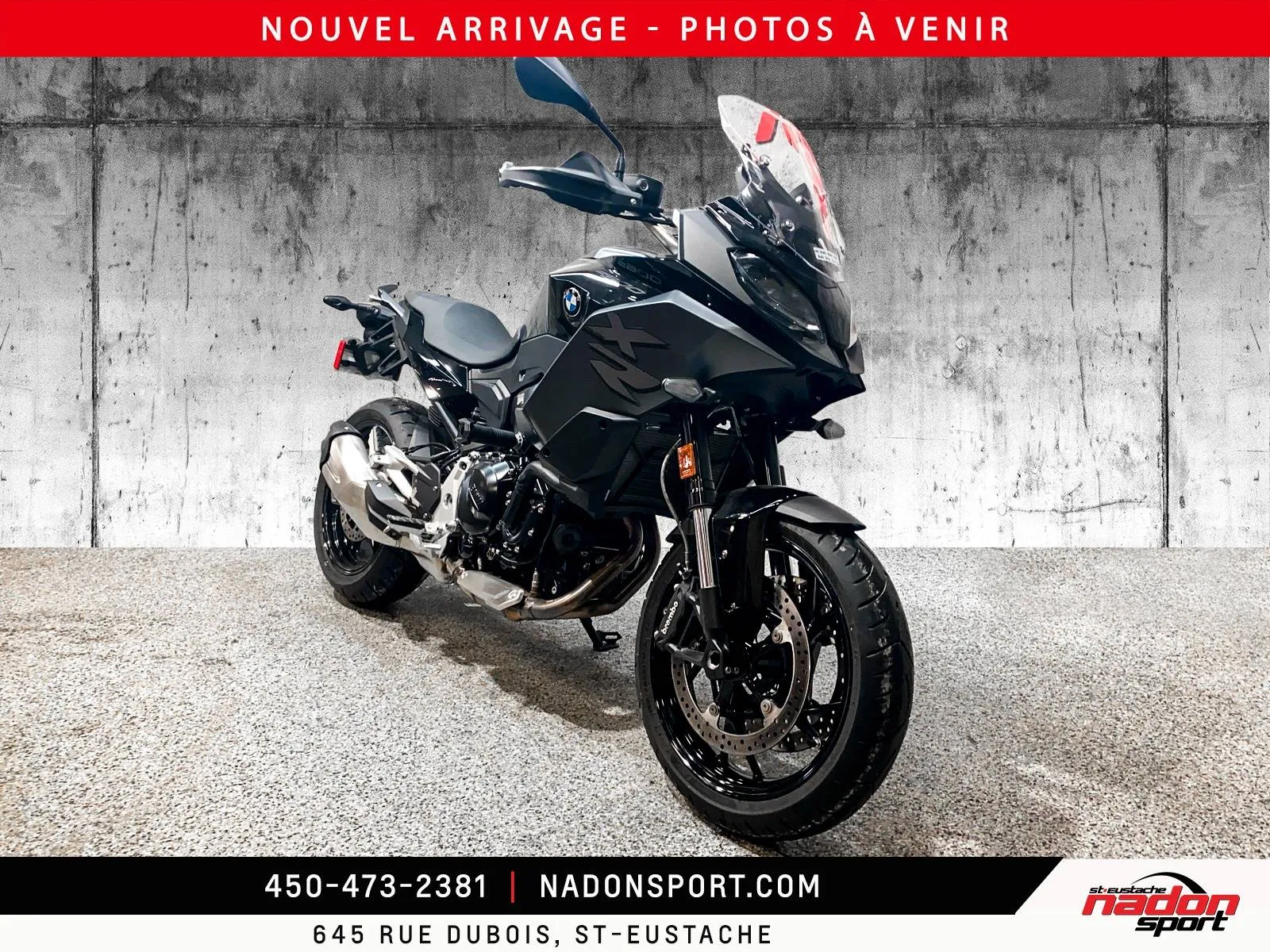 ???? RARETÉ : BMW F900 XR 2023 – SEULEMENT 3 700 KM ! ???? L’équilibre parfait entre sportivité et tourisme est ici. Chez Nadon Sport Saint-Eustache, nous avons déniché la perle rare pour vous. Cette BMW F900 XR 2023 affiche un kilométrage dérisoire de 3 700 km. Elle est pratiquement neuve, déjà rodée, et n'attend qu'un nouveau propriétaire pour dévorer l'asphalte ! ???? PRIX NADON SPORT : 13 495 $ (Financement ultra-compétitif disponible sur place – Sortez rouler dès aujourd'hui !) ????️ UNE MACHINE TOUTE ÉQUIPÉE (OPTIONS INCLUSES) Pourquoi payer le prix fort pour du neuf quand vous pouvez avoir toutes ces options premium maintenant ? ✅ Bas Kilométrage : Uniquement 3 700 km au compteur. ✅ Moteur : Bicylindre de 895 cc offrant 99 ch de pur plaisir. ✅ Écran TFT 6.5" : Connectivité Bluetooth intégrée pour la navigation et la musique. ✅ Éclairage LED Pro : Avec phare de virage adaptatif pour une sécurité maximale la nuit. ✅ Modes de conduite : Ajustez la réponse du moteur selon vos envies (Rain/Road). ✅ Ergonomie XR : Position de conduite droite et confortable, idéale pour les longues randonnées. ✅ Pare-brise ajustable : Pour une protection optimale contre le vent. ⭐ POURQUOI CHOISIR NADON SPORT ? Acheter chez Nadon Sport Saint-Eustache, c’est choisir la tranquillité d’esprit : Inspection Rigoureuse : Cette moto a été inspectée par nos techniciens certifiés BMW. Garantie : Profitez de la balance de garantie pour rouler sans stress. Service après-vente : Une équipe de passionnés à votre service depuis des années. ???? FAITES VITE – PREMIER ARRIVÉ, PREMIER SERVI ! Les modèles XR avec un kilométrage aussi bas ne restent jamais plus de quelques jours en salle de montre.