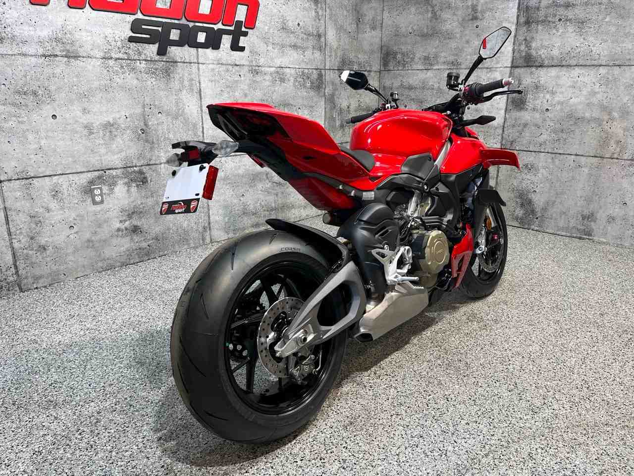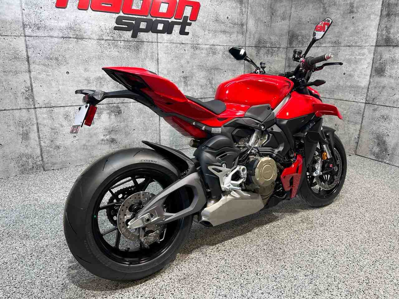 Le design de la nouvelle Streetfighter V4 associe le sentiment d'appartenance à la famille Panigale à un caractère unique et inimitable. L'emblématique DRL et les ailes biplans transmettent agressivité et puissance, sophistication et technologie, capturant parfaitement l'insolence de la Streetfighter.