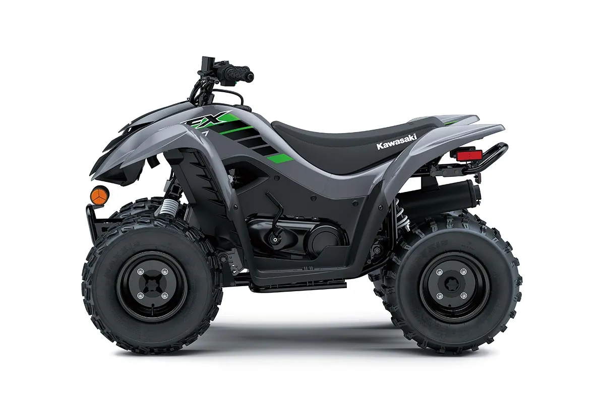 Le plaisir à quatre roues commence avec KFX. Laissez les enfants s’amuser à l’extérieur sur le VTT KFX90 grâce à une puissance et à des dimensions adaptées aux pilotes âgés de 10 ans et plus. Le KFX90 permet de vivre de grandes aventures et de s’attaquer aux terrains les plus exigeants grâce à un moteur de 90 cm³ et une suspension sportive.