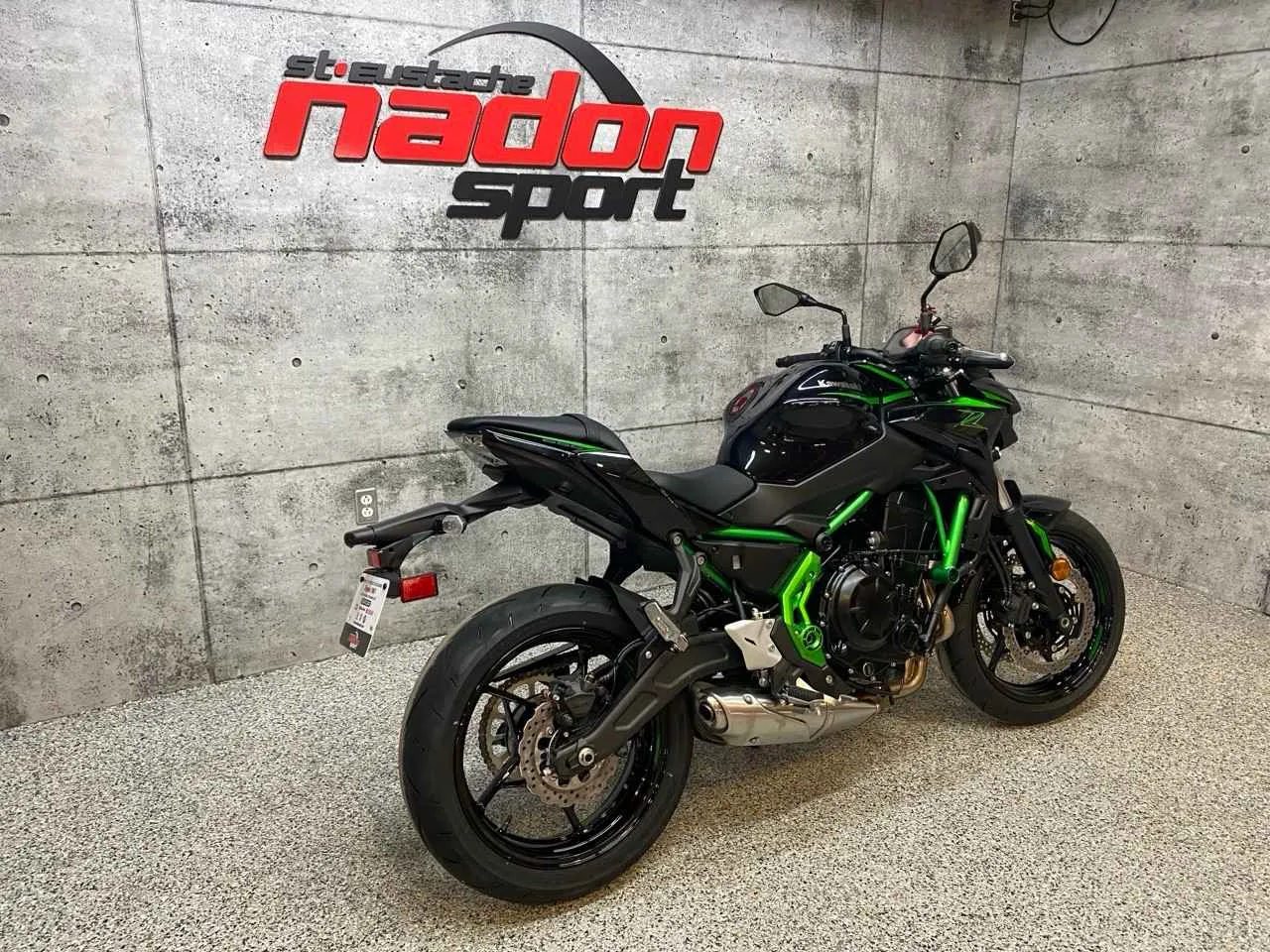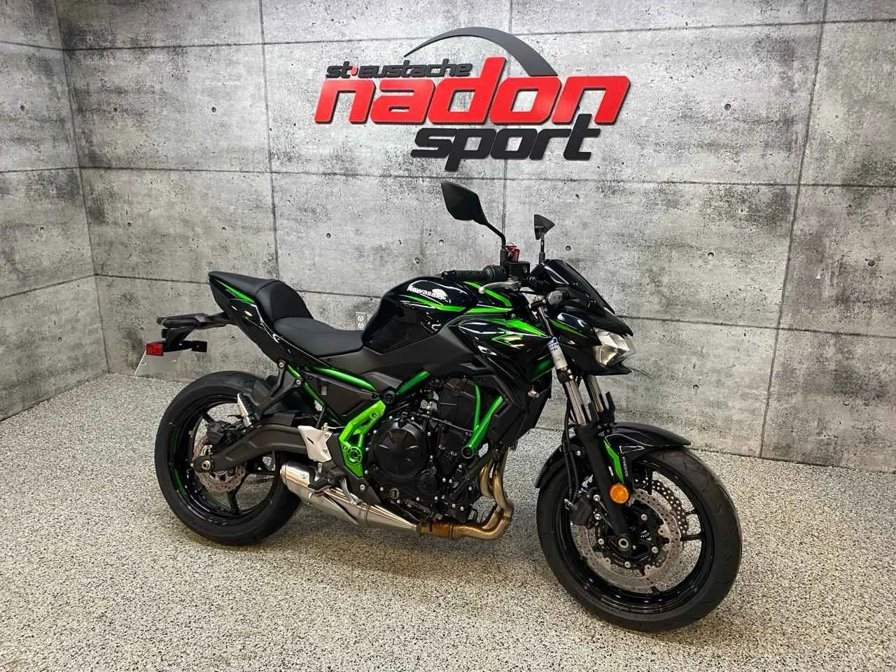 Kawasaki Z650 2025 : le roadster idéal pour dominer la route au quotidien La Kawasaki Z650 2025 est bien plus qu’une moto de route : c’est une véritable invitation à la performance, à la liberté et à la polyvalence, autant pour les trajets quotidiens que pour les sorties plaisir. Conçue pour les pilotes à la recherche d’un parfait équilibre entre puissance maîtrisée, maniabilité agile et fiabilité éprouvée, la Z650 s’impose comme une référence incontournable dans la catégorie des roadsters sport de moyenne cylindrée. Elle est offerte ici en vert Kawasaki au fini éclatant et sportif, une couleur emblématique qui souligne son caractère agressif et moderne. Équipée d’un moteur bicylindre parallèle de 649 cm³ à refroidissement liquide avec injection électronique, la Z650 offre une accélération vive, un couple généreux à bas et moyen régime ainsi qu’une excellente stabilité, idéale pour la route, les longues randonnées et les déplacements quotidiens. Son châssis treillis léger, combiné à une suspension équilibrée, une transmission souple et une position de conduite droite et naturelle, assure une prise en main intuitive et un contrôle précis, même dans des conditions exigeantes. Que vous rouliez au Québec, dans les Laurentides ou sur les routes urbaines et sinueuses, ce modèle garantit une expérience de conduite sécuritaire, engageante et agréable. Côté design et équipement, la Kawasaki Z650 2025 se distingue par un style sportif et moderne et une technologie pensée pour la sécurité et le confort, incluant : Écran TFT couleur avec connectivité Éclairage DEL complet Système de freinage ABS Contrôle de traction Kawasaki (KTRC) Embrayage assisté et antidribble Kawasaki signe ici une moto fiable, performante et polyvalente, taillée pour la conduite sur route, autant pour les motocyclistes en apprentissage avancé que pour les pilotes expérimentés. Chez Nadon Sport à Saint-Eustache, nous proposons la Kawasaki Z650 2025 neuve à