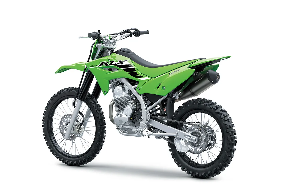 Le plaisir grandeur nature de la moto tout-terrain KLX230R signifie qu'il est temps de sortir jouer. Affrontez le terrain avec agilité et puissance, tout en soulevant de la terre en cours de route. La suspension à long débattement agencée à un meilleur contrôle à basse vitesse confère à cette moto une sensation sportive qui se démarque des autres. Avec son style inspiré de la gamme KX, la KLX230R hautement performante et légère, apporte une bonne dose de plaisir à chaque sortie en tout-terrain.