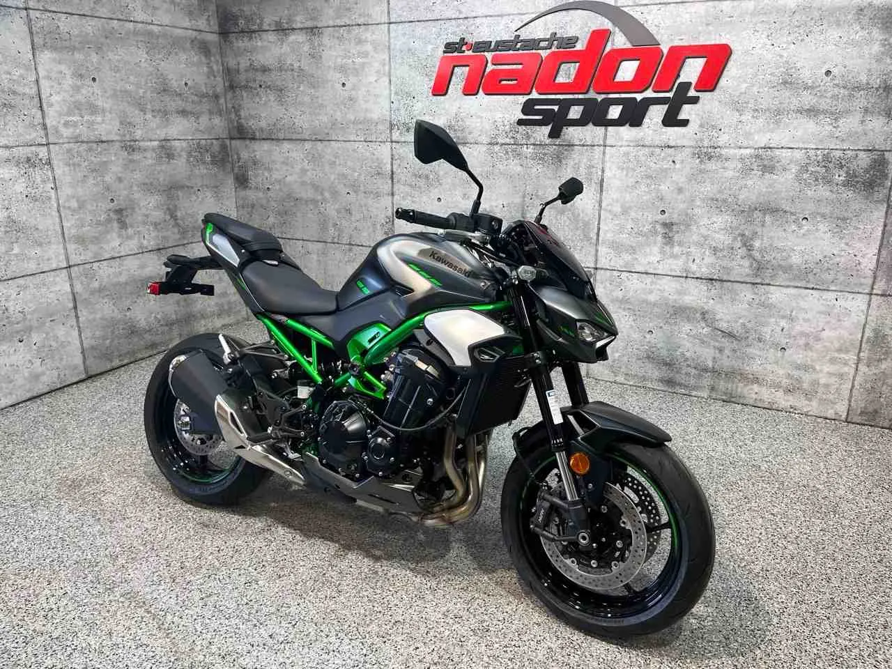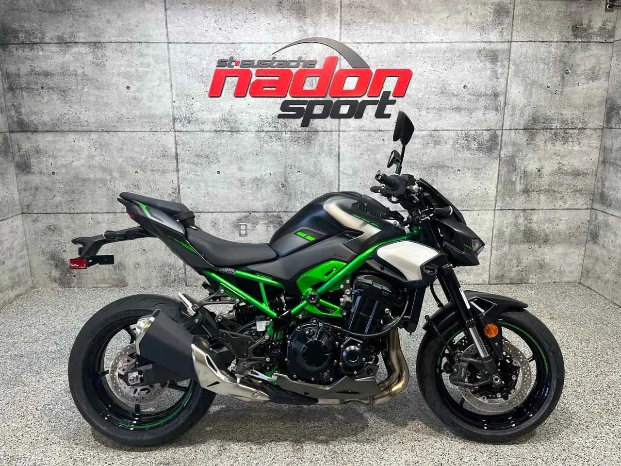 Kawasaki Z900 2025 : la puissance brute au service du plaisir de conduite La Kawasaki Z900 2025 est bien plus qu’une moto de route : c’est une invitation à la performance, à la liberté et au pur plaisir de pilotage. Conçue pour les pilotes à la recherche d’un parfait équilibre entre puissance, maniabilité et technologie, la Z900 s’impose comme une référence incontournable dans la catégorie des roadsters sportifs de moyenne cylindrée. Elle est offerte ici en noir métallisé profond aux accents agressifs, une teinte moderne et racée qui souligne son caractère sportif et affirmé. Équipée d’un moteur 4 cylindres en ligne de 948 cm³ à refroidissement liquide avec injection électronique, la Z900 offre une accélération franche, un couple généreux et une stabilité exemplaire, idéale pour la route, les sorties sportives et les longues randonnées. Son châssis treillis léger et rigide, combiné à une suspension performante et à une position de conduite naturelle et bien équilibrée, assure une tenue de route précise et une confiance totale, même dans des conditions exigeantes. Que vous rouliez au Québec, dans les Laurentides ou sur les routes sinueuses, la Z900 garantit une expérience de conduite à la fois sécuritaire, dynamique et engageante. Côté design et équipement, la Kawasaki Z900 2025 se distingue par un style sportif et moderne et une technologie pensée pour la performance et la sécurité, incluant : Éclairage DEL complet Système de freinage ABS Modes de conduite sélectionnables Contrôle de traction Kawasaki (KTRC) Écran TFT couleur avec connectivité Kawasaki signe ici une moto fiable, performante et polyvalente, taillée pour les pilotes passionnés de conduite sportive au quotidien. Chez Nadon Sport à Saint-Eustache, nous proposons la Kawasaki Z900 2025 neuve à $, avec plusieurs options de financement flexibles, incluant 1re, 2e et 3e chance au crédit. Venez la découvrir en concession et comprendre pourquoi elle est considérée comme l’une des meilleures motos roadster du marché. Chez Nadon Sport, notre équipe accompagne les passionnés de sports motorisés du Québec depuis 1961 dans le choix de véhicules adaptés à leur style de conduite et à leur utilisation. Situé à Saint-Eustache, notre concessionnaire offre un service personnalisé, des conseils d’experts et un accompagnement complet avant et après l’achat.