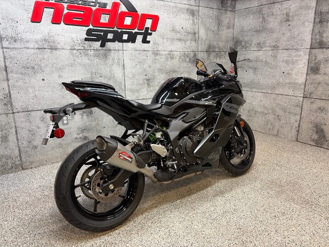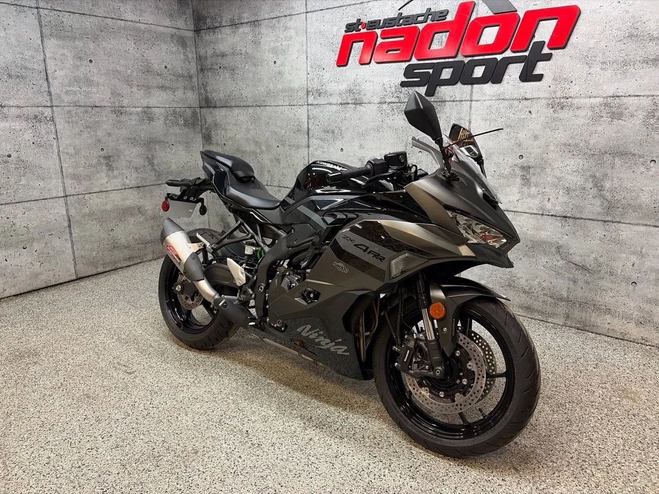 Dans une catégorie bondée de modèles sport de 400 cm³, Kawasaki introduit un nouveau modèle supersport révolutionnaire. La Ninja ZX-4R assemble un moteur de quatre cylindres en ligne de 399 cm³ à la performance inégalée dans un châssis compact aux proportions similaires à celles de la Ninja ZX-25R. Que ce soit sur la piste ou sur la route, faites l’expérience de la Ninja ZX-4R, de sa puissance exaltante, de son chant enivrant à haut régime et de sa tenue de route précise et agile qui éveilleront la passion du supersport qui sommeille en vous.