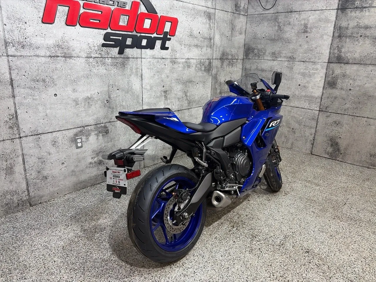 La YZF-R7 2026 comble habilement l’écart entre la YZF-R3 et la YZF-R9, grâce à une série de mises à jour qui l’alignent sur ses grandes sœures tout en offrant des performances éprouvées en conditions réelles dans un format intermédiaire. Un design actualisé exclusif à la série R, associé à des améliorations apportées à la suspension, à la géométrie de direction et à la commande électronique des gaz YCC-T, le tout complété par une gamme d'aides au pilotage électroniques, font de la R7 la machine idéale tant sur la piste qu’en dehors.