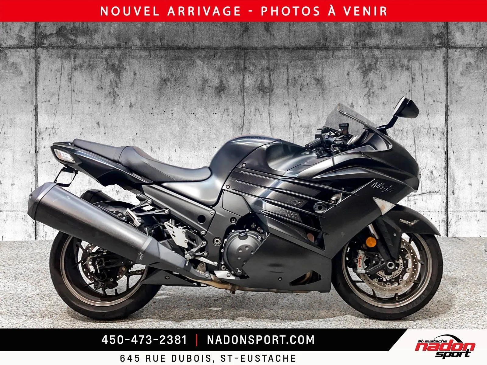???? LA RÉFÉRENCE ABSOLUE : Kawasaki Ninja ZX-14R 2016 Dominez la route avec l'une des motos de série les plus puissantes au monde. Vous cherchez la puissance brute sans compromis ? Cette Kawasaki ZX-14R 2016 est une légende du bitume. Avec son moteur de 1441cc capable de performances foudroyantes, elle offre une expérience de conduite qu'aucune autre machine ne peut égaler. ???? Fiche Technique : Année : 2016 Modèle : Ninja ZX-14R (Le summum de la gamme Ninja) Kilométrage : 44 872 km (Moteur réputé pour sa longévité et sa robustesse) Moteur : 4 cylindres de 1441cc (Puissance phénoménale et couple massif) ✨ Points Forts & Équipement : PNEU AVANT NEUF : Fraîchement installé pour une adhérence et une sécurité optimales dès votre première sortie. Électronique de Pointe : Contrôle de traction (KTRC) à 3 modes et sélection de cartographie moteur (Power Modes). Freinage Brembo & Embrayage Antidribble : De série sur ce modèle pour un contrôle total. Confort Surprenant : Bien que ce soit une Ninja, son ergonomie permet de longs trajets en tout confort. Look Imposant : Une silhouette aérodynamique qui commande le respect partout où elle passe. ???? PRIX NADON SPORT : 6 495 $ (De la pure performance à un prix dérisoire !) L'avis de l'expert : On ne fait plus des moteurs comme celui-là. À moins de 6 500 $, c'est l'occasion de posséder une icône de la performance mondiale avec un pneu avant neuf. Un investissement plaisir garanti ! ???? Disponible maintenant chez Nadon Sport St-Eustache Les amateurs de sensations fortes savent que la ZX-14R ne reste jamais longtemps en salle de montre