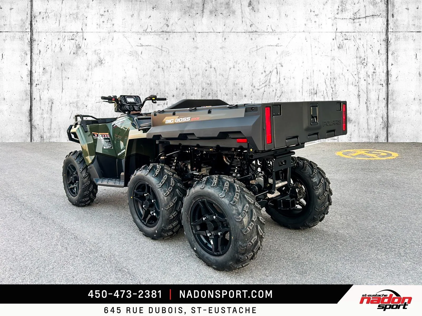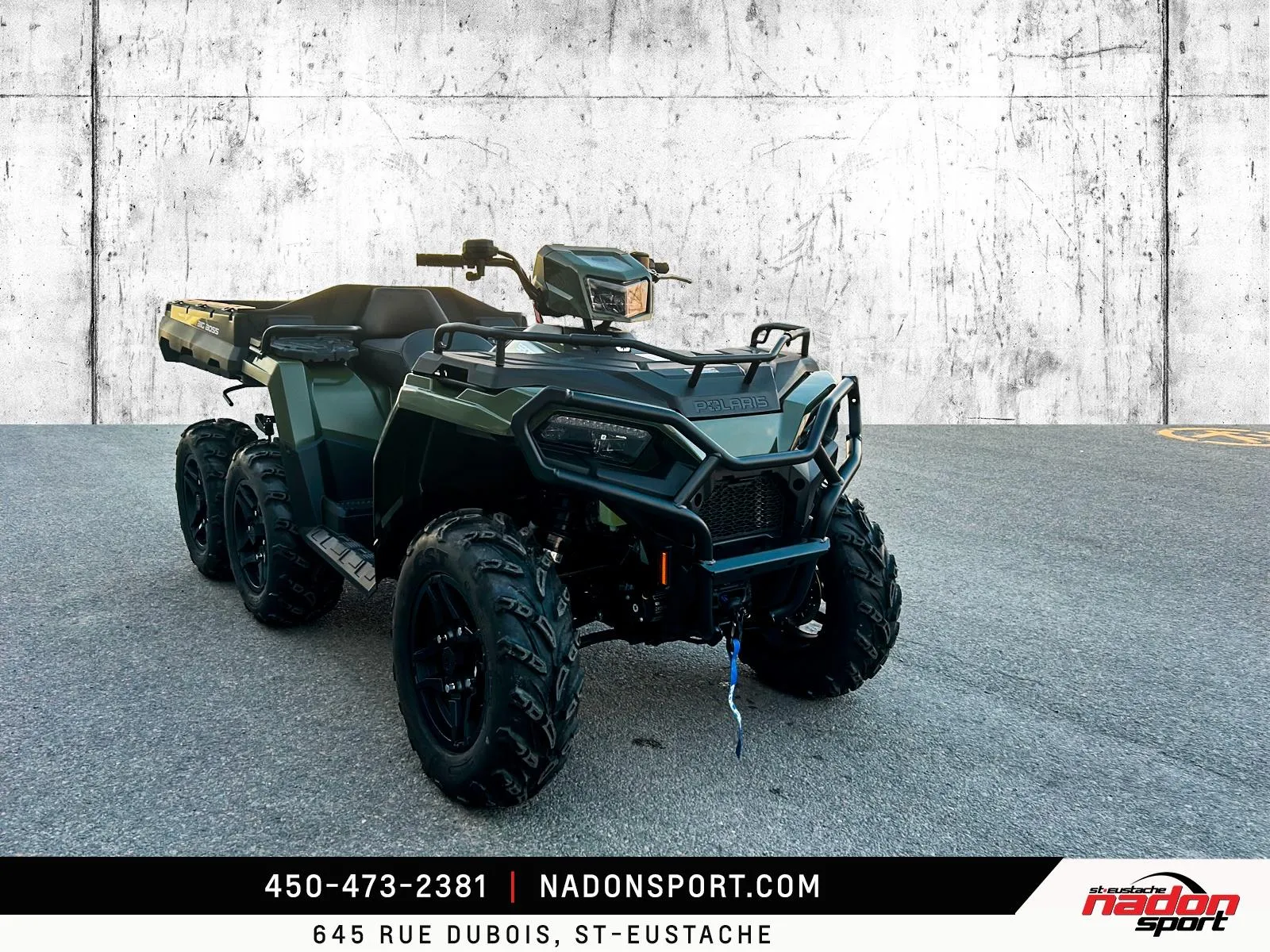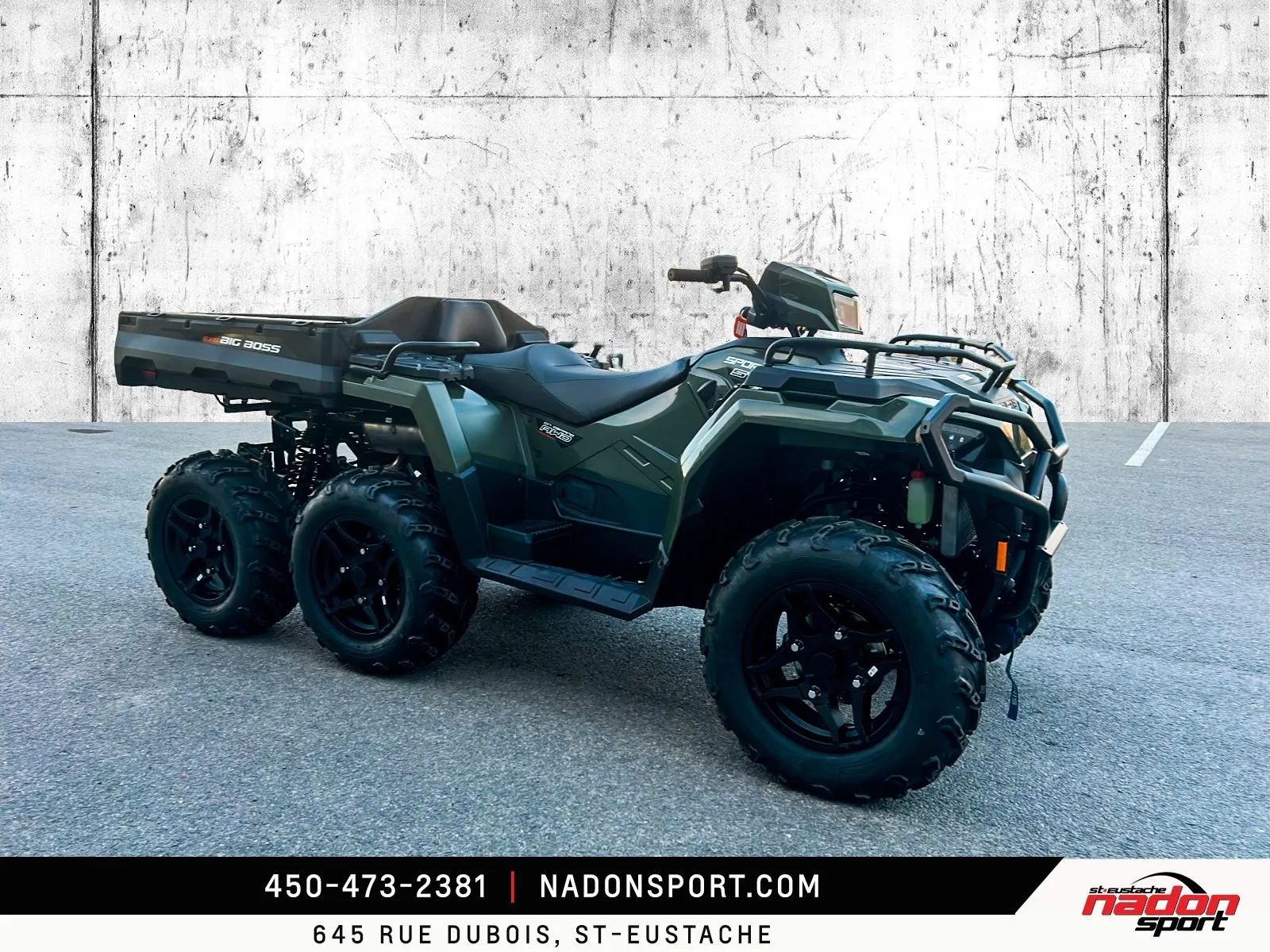 Polaris Sportsman 6x6 570 2026 : puissance et polyvalence extrêmes pour le travail et l’aventure. Le Polaris Sportsman 6x6 570 2026 est bien plus qu’un VTT utilitaire : c’est une invitation à explorer tous les terrains, accomplir vos tâches les plus exigeantes et profiter pleinement de la liberté tout-terrain. Conçu pour les pilotes à la recherche d’un parfait équilibre entre puissance, fiabilité et maniabilité, le Sportsman 6x6 570 s’impose comme une référence reconnue dans la catégorie VTT utilitaire 6x6. Il est offert ici en vert camo robuste avec finitions noir mat, pour un look durable et fonctionnel. Équipé d’un moteur bicylindre 567cc à injection électronique, le 6x6 570 offre couple généreux, traction exceptionnelle et stabilité même avec de lourdes charges, idéal pour travail forestier, transport de matériaux, sentiers accidentés et aventures hors route. Son châssis renforcé avec transmission intégrale 6x6, combiné à une suspension indépendante avant/arrière et une direction assistée, assure une conduite stable et confortable, même dans les conditions les plus exigeantes. Que vous rouliez sur le Québec, les Laurentides, routes de campagne ou sentiers escarpés, ce VTT garantit une expérience sécuritaire et performante. Côté design et équipement, le Sportsman 6x6 570 2026 se distingue par un style robuste et fonctionnel, et une technologie pensée pour performance, sécurité et confort : Direction assistée EPS pour un pilotage précis Traction intégrale 6 roues avec différentiel verrouillable Plateforme de chargement utilitaire à grande capacité Suspension indépendante à grand débattement Éclairage LED haute visibilité pour toutes les conditions Polaris signe ici un VTT utilitaire fiable, performant et polyvalent, taillé pour les travaux exigeants et les aventures extrêmes. Chez Nadon Sport à Saint-Eustache, nous proposons le Polaris Sportsman 6x6 570 2026 neuf à $, avec plusieurs options de financement flexibles, incluant la 1re, 2e et 3e chance au crédit. Venez le découvrir en concession et comprendre pourquoi il est considéré comme l’un des meilleurs VTT utilitaires du marché. Chez Nadon Sport, notre équipe accompagne les passionnés de sports motorisés du Québec depuis 1961, offrant un service personnalisé, des conseils d’experts et un accompagnement complet avant et après l’achat.