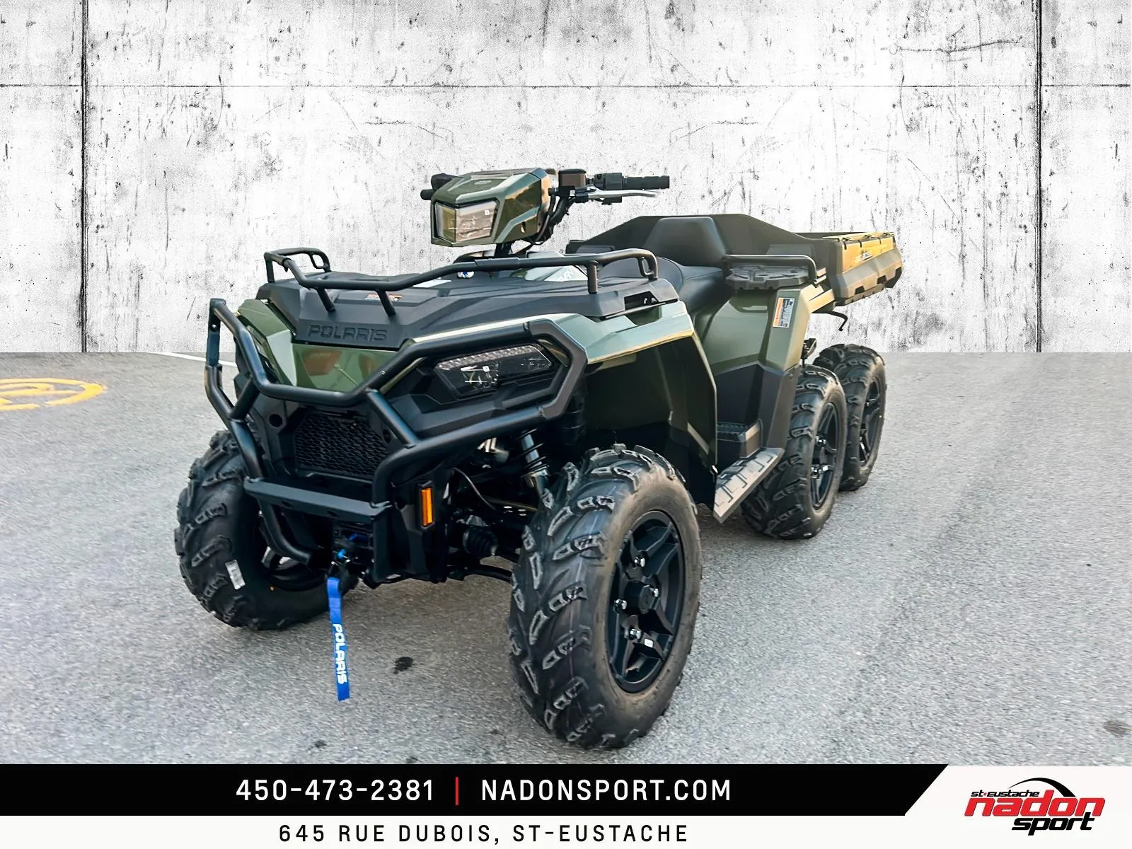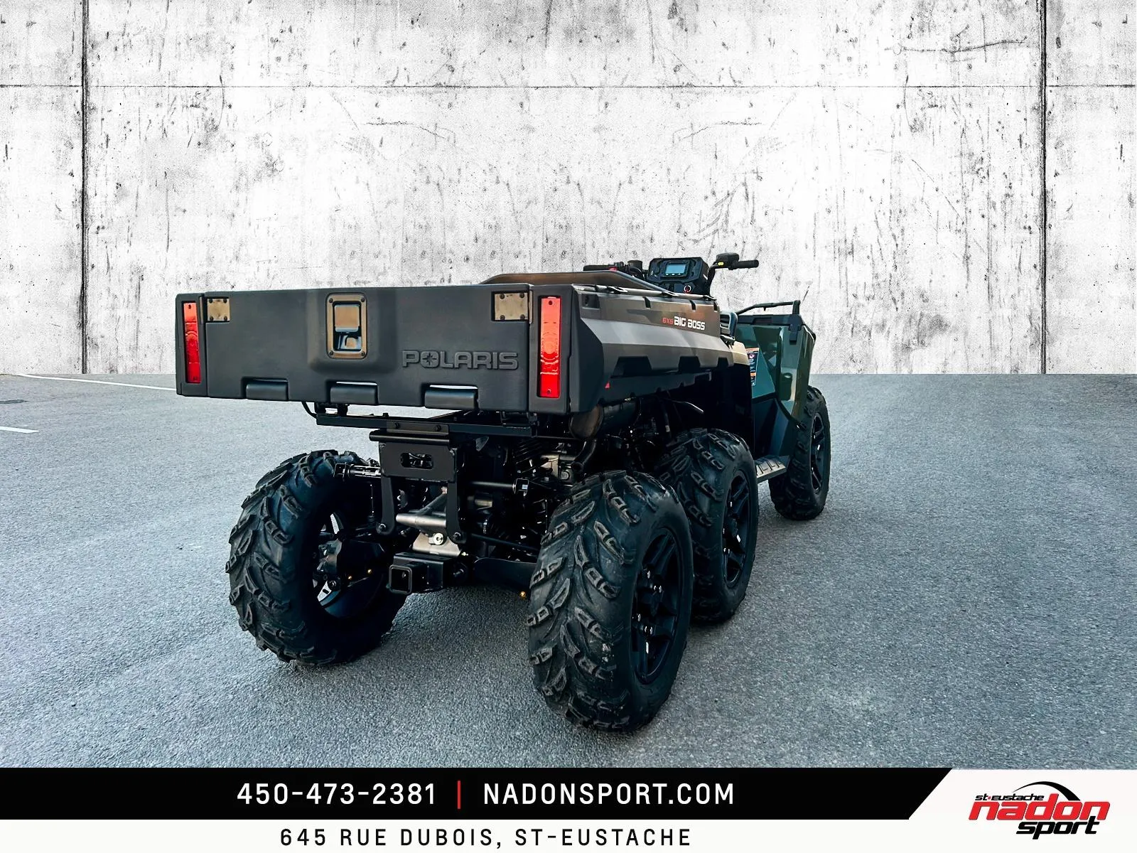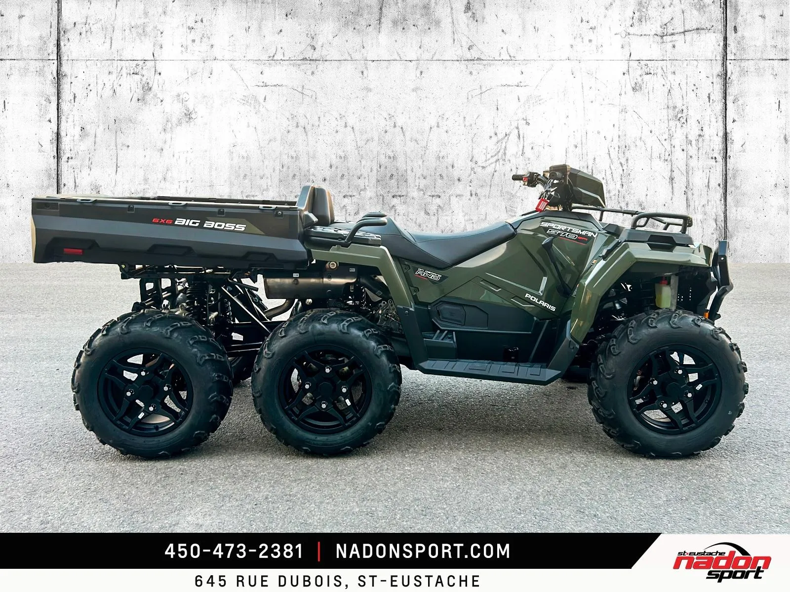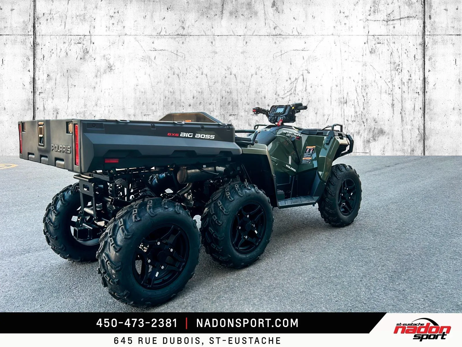 Polaris Sportsman 6x6 570 2026 : puissance et polyvalence extrêmes pour le travail et l’aventure. Le Polaris Sportsman 6x6 570 2026 est bien plus qu’un VTT utilitaire : c’est une invitation à explorer tous les terrains, accomplir vos tâches les plus exigeantes et profiter pleinement de la liberté tout-terrain. Conçu pour les pilotes à la recherche d’un parfait équilibre entre puissance, fiabilité et maniabilité, le Sportsman 6x6 570 s’impose comme une référence reconnue dans la catégorie VTT utilitaire 6x6. Il est offert ici en vert camo robuste avec finitions noir mat, pour un look durable et fonctionnel. Équipé d’un moteur bicylindre 567cc à injection électronique, le 6x6 570 offre couple généreux, traction exceptionnelle et stabilité même avec de lourdes charges, idéal pour travail forestier, transport de matériaux, sentiers accidentés et aventures hors route. Son châssis renforcé avec transmission intégrale 6x6, combiné à une suspension indépendante avant/arrière et une direction assistée, assure une conduite stable et confortable, même dans les conditions les plus exigeantes. Que vous rouliez sur le Québec, les Laurentides, routes de campagne ou sentiers escarpés, ce VTT garantit une expérience sécuritaire et performante. Côté design et équipement, le Sportsman 6x6 570 2026 se distingue par un style robuste et fonctionnel, et une technologie pensée pour performance, sécurité et confort : Direction assistée EPS pour un pilotage précis Traction intégrale 6 roues avec différentiel verrouillable Plateforme de chargement utilitaire à grande capacité Suspension indépendante à grand débattement Éclairage LED haute visibilité pour toutes les conditions Polaris signe ici un VTT utilitaire fiable, performant et polyvalent, taillé pour les travaux exigeants et les aventures extrêmes. Chez Nadon Sport à Saint-Eustache, nous proposons le Polaris Sportsman 6x6 570 2026 neuf à $, avec plusieurs options de financement flexibles, incluant la 1re, 2e et 3e chance au crédit. Venez le découvrir en concession et comprendre pourquoi il est considéré comme l’un des meilleurs VTT utilitaires du marché. Chez Nadon Sport, notre équipe accompagne les passionnés de sports motorisés du Québec depuis 1961, offrant un service personnalisé, des conseils d’experts et un accompagnement complet avant et après l’achat.