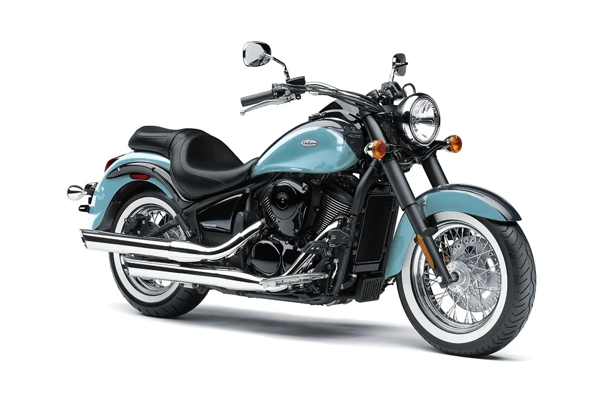 La gamme Kawasaki Vulcan 900, propulsée par un bicylindre en V de 903 cm³, a déjà tout le style et l’attitude d’une moto custom. De la peinture détaillée à l’échappement intense, les Vulcan 900 sont une expression artistique de votre individualité. Profitez de la fusion dynamique de la fabrication à la main, de l’ajustement haut de gamme et de la finition des Vulcan 900 alliance captivante que seule Kawasaki pouvait produire.
