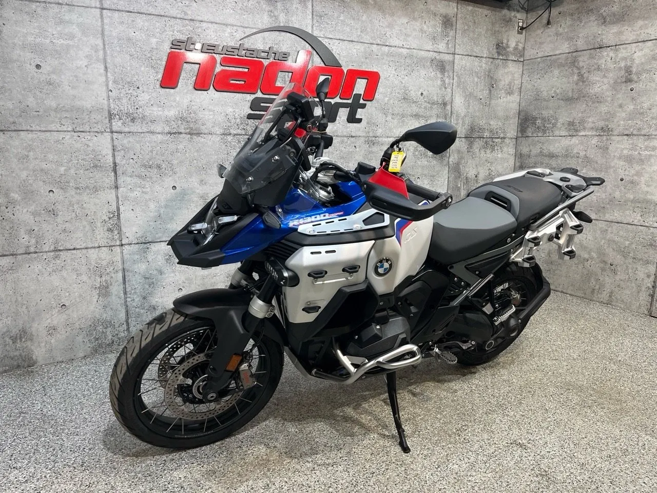 BMW R 1300 GS Adventure 2025 – Usagé 7 335 km — Excellent état La nouvelle GSA 1300 redéfinit le segment aventure : autonomie accrue, châssis allégé, moteur de 145 hp, suspensions électroniques DSA, technologies avancées, confort longue distance et équipements premiums. Une machine conçue pour les voyages exigeants. Prix demandé 31 999 $ OPTIONS INCLUSES (avec prix MSRP 2025) Code Option Prix MSRP 020D Adaptive Height Adjustment 1 055 $ 0219 Deluxe Headlight 685 $ 0222 Gear Shift Assistant Pro Inclus dans Dynamic Package (235) 0224 Ride Modes Pro Inclus dans Dynamic Package (235) 0233 Touring Package 1 355 $ 0235 Dynamic Package 2 160 $ 024A Enduro Package Pro 1 025 $ 0272 GPS Prep / Navigation Prep 300 $ 02NA Sport Brake Inclus dans Dynamic Package 0340 Chrome Exhaust Manifold 125 $ 0381 Manual English N/C 0382 Manual French N/C 0413 Pillion Passenger Package 435 $ 0457 Style GS Trophy 955 $ 053B M Lightweight Battery 260 $ 0559 Electrically Adjustable Windscreen Équipement GSA 05AB Country-Specific Brake Light N/C 05AS Riding Assistant 1 055 $ 0603 Alarm System 350 $ 0636 Centre Stand Inclus dans Touring Package 0680 Aluminum Case Holders Inclus dans Luggage Prep 0690 Top Case Carrier Inclus dans Luggage Prep 06AC Intelligent Emergency Call N/C 06AE Teleservices N/C 0732 Canada Version N/C 0771 Cross-Spoke Wheels 645 $ 077C Comfort Rider’s Seat 70 $ 0992 Retailer Equipment Control N/C 09T2 GS Trophy Content Inclus avec 457 Prix neuf équivalent MSRP R1300GS Adventure 2025 : 26 645 $ Options : 10 475 $ Préparation (PDI) : 1 295 $ Prix neuf total : 38 415 $ Bleu Métallique de Course, GS Trophy, Groupe Dynamisme, Groupe Touring, Régulation Adaptative de la Hauteur, Phare Pro, Groupe Enduro Pro, Kit pour Passager, Système d'Aide à la Conduite, Système Antivol avec Alarme, Selle Confort, Support pour Topcase. Découvrez l'excellence de notre sélection de véhicules d'occasion, soigneusement inspectés par nos mécaniciens certifiés. Chaque véhicule est soumis à un contrôle rigoureux comprenant plus de 100 points d'inspection, garantissant ainsi une qualité irréprochable. De plus, nous prenons soin de chaque détail en effectuant un reconditionnement esthétique. ainsi nous offrons la prise de possession rapide.