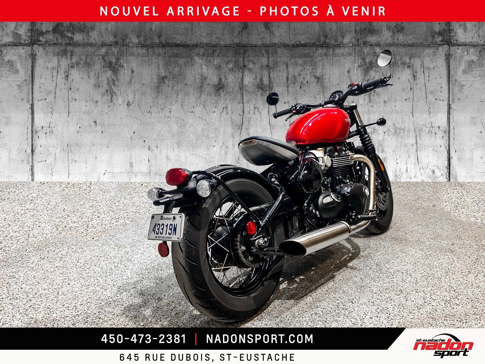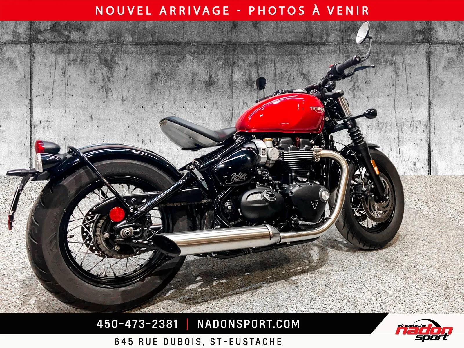 ???? TRIUMPH BONNEVILLE BOBBER 2023 – UN SON, UN LOOK, UNE GARANTIE ???? Vous ne voulez pas juste une moto, vous voulez une machine qui a une âme. Chez Nadon Sport Saint-Eustache, on vous présente ce superbe Bobber 2023 : l'équilibre parfait entre la nostalgie et la performance brute. ???? FICHE TECHNIQUE Année : 2023 Kilométrage : 1 600 km seulement (état salle de montre) Prix : 14 195 $ ???? UNE SONORITÉ QUI DONNE DES FRISSONS Le bicylindre 1200cc de Triumph est célèbre pour sa note d'échappement profonde et gutturale. Grâce à sa conception unique de boîte à air à double chambre, vous obtenez ce son "Hot Rod" authentique dès que vous tournez la poignée. C'est une mélodie mécanique pure, sans compromis. ????️ INGÉNIERIE DE POINTE & SUSPENSION L’illusion du Rigide : Admirez la ligne arrière épurée grâce à la suspension "Swing Rocker". L'amortisseur est intelligemment caché sous la selle pour vous offrir le look d'un cadre rigide d'époque, tout en absorbant les imperfections de la route avec une douceur incroyable. Selle ajustable : Configurez votre position de conduite pour un confort sur mesure. ✅ TRANQUILLITÉ D’ESPRIT TOTALE Garantie : Bénéficiez de la balance de la garantie prolongée/manufacturier encore valide. Roulez l'esprit léger ! Freinage & Sécurité : Équipée de freins Brembo haut de gamme et d'un antipatinage de série. État Exceptionnel : Inspectée de A à Z par nos experts à Saint-Eustache. ✨ L’EXPÉRIENCE NADON SPORT SAINT-EUSTACHE : Nous valorisons chaque option et chaque détail de cette moto. Elle est prête à prendre la route, aucune dépense à prévoir. ✅ Financement flexible à taux compétitifs. ✅ Échanges bienvenus (moto, VTT, motoneige). ✅ Service après-vente de premier ordre. Une Bobber de ce calibre avec si peu de millage ne restera pas longtemps dans l'entrée. ???? Adresse : Nadon Sport Saint-Eustache ???? Contactez-nous pour confirmer la disponibilité et planifier votre visite !