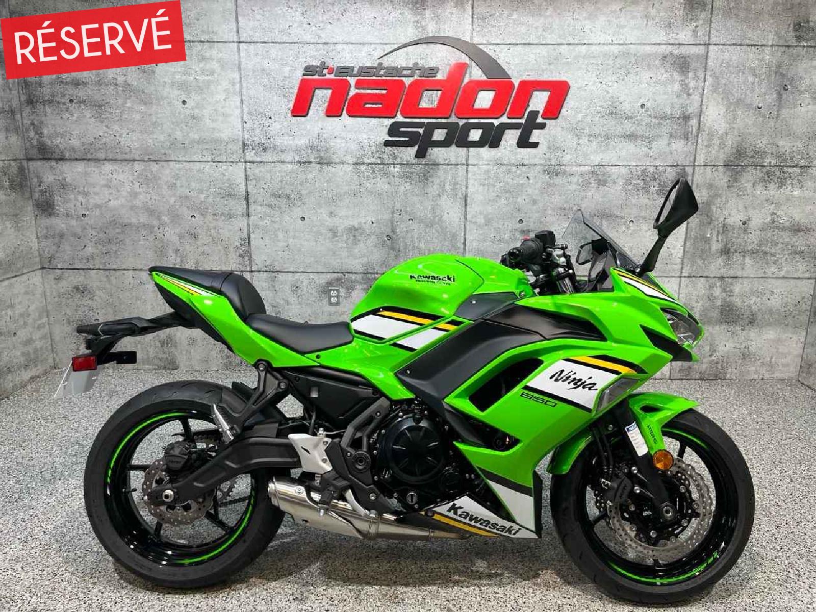 Kawasaki Ninja 650 2025 : la sport-touring polyvalente et performante La Kawasaki Ninja 650 2025 est bien plus qu’une moto routière sportive : c’est une invitation à la performance, à la liberté et au plaisir de conduite, que ce soit pour le quotidien ou les escapades sur route. Conçue pour les pilotes à la recherche d’un parfait équilibre entre puissance, maniabilité et confort, la Ninja 650 s’impose comme une référence reconnue dans la catégorie des motos sport-touring intermédiaires. Elle est offerte ici dans une livrée verte et noire éclatante, aux reflets modernes, dynamiques et sportifs, qui mettent en valeur son style racé et affirmé. Équipée d’un moteur bicylindre en ligne de 649 cm³ à refroidissement liquide et injection électronique, la Ninja 650 offre une accélération réactive, un couple généreux et une traction fiable, idéal pour les longues randonnées, les trajets quotidiens et les sorties sur routes sinueuses. Son châssis treillis en acier léger, combiné à une suspension réglable et une direction précise, assure une stabilité et un contrôle exceptionnels, même dans les conditions exigeantes. Que vous rouliez sur les routes du Québec, dans les Laurentides ou sur des tracés sinueux, la Ninja 650 garantit une expérience de conduite agréable, sécuritaire et engageante. Côté design et équipement, la Kawasaki Ninja 650 2025 se distingue par son style sportif et moderne, et une technologie pensée pour la performance et la sécurité : Écran TFT couleur moderne, Éclairage DEL complet, ABS optimisé pour la route, Modes de conduite et contrôle de traction, Suspension réglable pour confort et sportivité. Kawasaki signe ici une moto fiable, performante et polyvalente, taillée pour la route et les sorties sportives. Chez Nadon Sport à Saint-Eustache, nous proposons la Kawasaki Ninja 650 2025 neuve à $, avec plusieurs options de financement flexibles, incluant la 1re, 2e et 3e chance au crédit. Venez la découvrir en concession et comprendre pourquoi elle est considérée comme l’une des meilleures motos sport-touring de sa catégorie. Chez Nadon Sport, notre équipe accompagne les passionnés de sports motorisés du Québec depuis 1961 dans le choix de véhicules adaptés à leur style de conduite et à leur utilisation. Situé à Saint-Eustache, notre concessionnaire offre un service personnalisé, des conseils d’experts et un accompagnement complet avant et après l’achat.