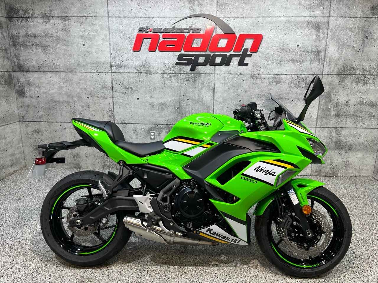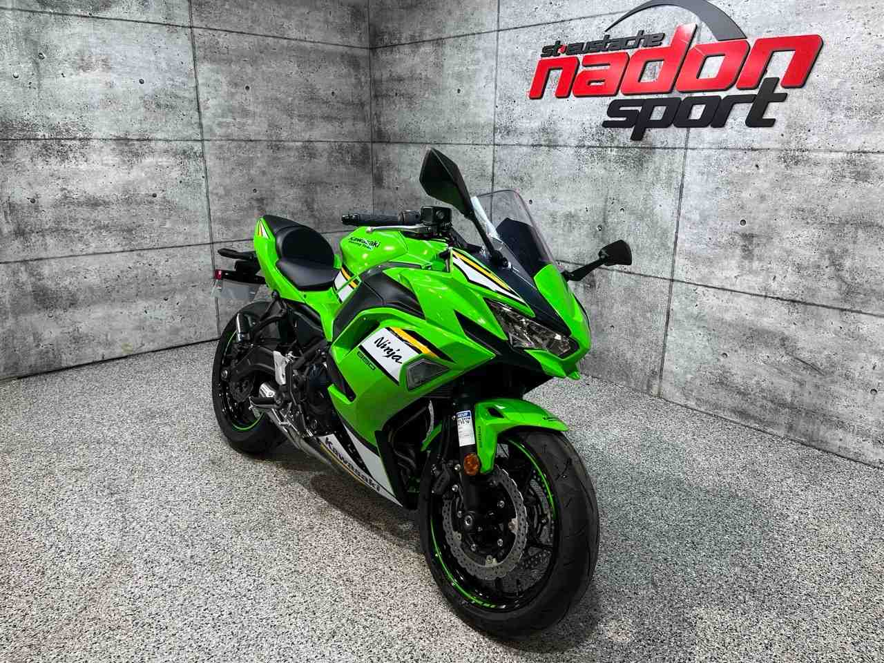 Kawasaki Ninja 650 2025 : la sport-touring polyvalente et performante La Kawasaki Ninja 650 2025 est bien plus qu’une moto routière sportive : c’est une invitation à la performance, à la liberté et au plaisir de conduite, que ce soit pour le quotidien ou les escapades sur route. Conçue pour les pilotes à la recherche d’un parfait équilibre entre puissance, maniabilité et confort, la Ninja 650 s’impose comme une référence reconnue dans la catégorie des motos sport-touring intermédiaires. Elle est offerte ici dans une livrée verte et noire éclatante, aux reflets modernes, dynamiques et sportifs, qui mettent en valeur son style racé et affirmé. Équipée d’un moteur bicylindre en ligne de 649 cm³ à refroidissement liquide et injection électronique, la Ninja 650 offre une accélération réactive, un couple généreux et une traction fiable, idéal pour les longues randonnées, les trajets quotidiens et les sorties sur routes sinueuses. Son châssis treillis en acier léger, combiné à une suspension réglable et une direction précise, assure une stabilité et un contrôle exceptionnels, même dans les conditions exigeantes. Que vous rouliez sur les routes du Québec, dans les Laurentides ou sur des tracés sinueux, la Ninja 650 garantit une expérience de conduite agréable, sécuritaire et engageante. Côté design et équipement, la Kawasaki Ninja 650 2025 se distingue par son style sportif et moderne, et une technologie pensée pour la performance et la sécurité : Écran TFT couleur moderne, Éclairage DEL complet, ABS optimisé pour la route, Modes de conduite et contrôle de traction, Suspension réglable pour confort et sportivité. Kawasaki signe ici une moto fiable, performante et polyvalente, taillée pour la route et les sorties sportives. Chez Nadon Sport à Saint-Eustache, nous proposons la Kawasaki Ninja 650 2025 neuve à $, avec plusieurs options de financement flexibles, incluant la 1re, 2e et 3e chance au crédit. Venez la découvrir en concession et comprendre pourquoi elle est considérée comme l’une des meilleures motos sport-touring de sa catégorie. Chez Nadon Sport, notre équipe accompagne les passionnés de sports motorisés du Québec depuis 1961 dans le choix de véhicules adaptés à leur style de conduite et à leur utilisation. Situé à Saint-Eustache, notre concessionnaire offre un service personnalisé, des conseils d’experts et un accompagnement complet avant et après l’achat.