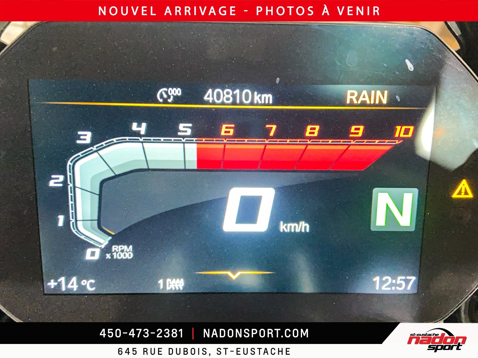 Prix de vente inclus les frais de TRANSPORT et PRÉPARATION. Photos à titre indicatives seulement, accessoires et options non inclus dans le prix. Les données sont affichées à titre indicatif seulement et ne peuvent être considérées comme une information contractuelle. N'hésitez pas à nous consulter pour plus de détails. Nous sommes dépositaire de plusieurs marques tel que, Bmw, Ducati, Husqvarna, Kawasaki, Polaris, et Yamaha, ainsi que les velo électrique de la marque Husqvarna et Gasgas. Nadon Sport St-Eustache vous offre également une boutique de vêtements, de pièces et d'accessoires de marques exclusives tel que : AGV, Dainese et Rev-it et bien plus encore.