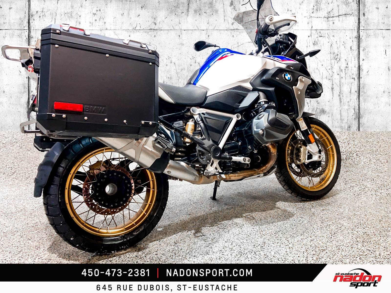????️ LA REINE DE L'AVENTURE : BMW R 1250 GS 2019 – PRÊTE POUR TOUT ! ????️ Vous rêvez de parcourir le monde ou simplement de dominer les routes du Québec avec un confort inégalé ? Nadon Sport Saint-Eustache vous présente cette icône : la BMW R 1250 GS 2019. Avec 40 812 km, elle est à peine à la moitié de sa jeunesse et, surtout, elle sort d'un entretien majeur ! ????️ ENTRETIEN RIGOUREUX – RIEN À PRÉVOIR ! On s'est occupés de tout pour que vous n'ayez qu'à rouler : Pneu arrière NEUF : Une traction optimale dès la sortie de la cour. Ajustement des VALVES effectué : Le moteur Boxer tourne comme une horloge suisse. Un entretien crucial déjà fait pour votre tranquillité d'esprit ! ???? LA RÉVOLUTION SHIFTCAM 2019 a marqué l'arrivée du moteur de 1 254 cc doté de la technologie BMW ShiftCam. Résultat : une puissance de 136 ch et un couple monstrueux disponible dès les bas régimes pour des dépassements foudroyants, même chargé. ???? UN ARSENAL D'OPTIONS ET DE TECHNOLOGIES : Écran TFT Couleur 6.5" : Connectivité totale pour votre téléphone et votre musique. Dynamic ESA : La suspension électronique qui s'ajuste seule selon la route et votre poids. Modes de Conduite Pro : Incluant les modes Dynamic et Enduro. Gear Shift Assist Pro : Changez de vitesse (montée/descente) sans toucher à l'embrayage. Confort Absolu : Poignées chauffantes, régulateur de vitesse (Cruise Control) et protège-mains. Sécurité Totale : ABS Pro (virages), DTC (Traction) et aide au départ en pente. ???? FICHE TECHNIQUE Kilométrage : 40 812 km Moteur : Boxer bicylindre 1 254 cc (ShiftCam) Transmission : Par arbre (Shaft drive – aucun entretien de chaîne !)