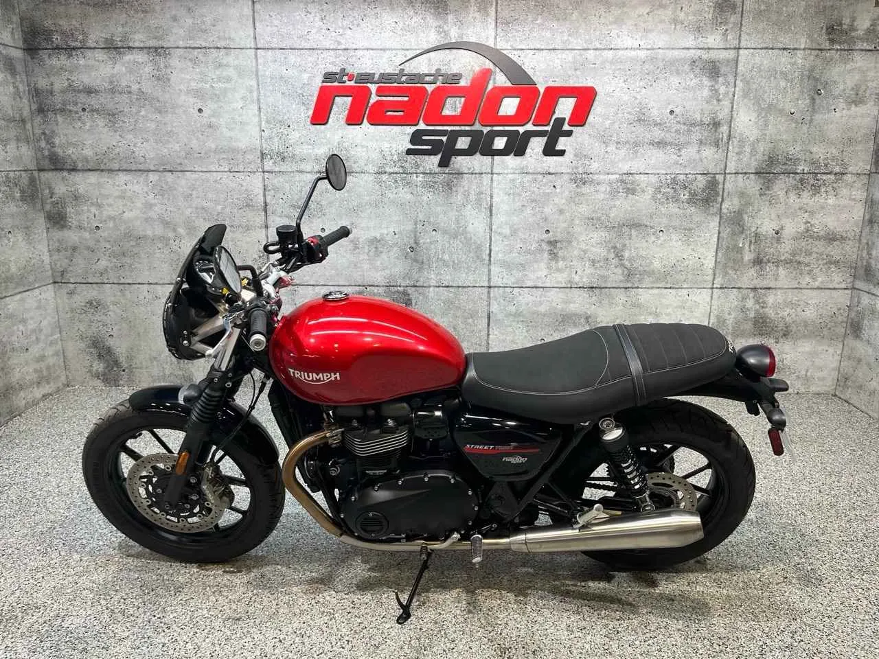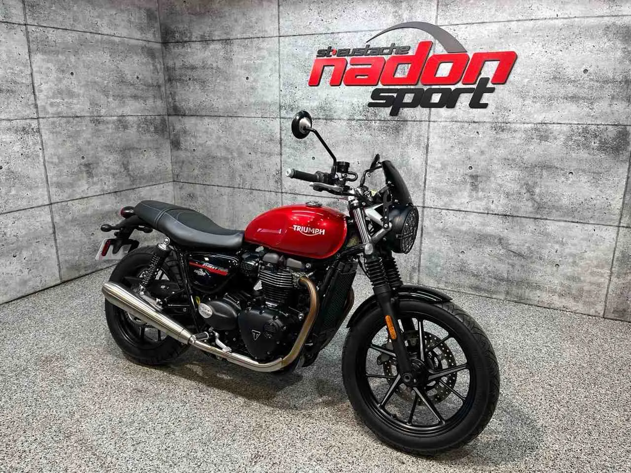 La Triumph Street Twin 900 2020 est une moto néo-rétro élégante, équipée d'un moteur bicylindre en ligne de 900 cm³. En excellent état, elle offre des performances dynamiques, une maniabilité agile et un design classique, idéale pour les trajets quotidiens et les balades sur route.
