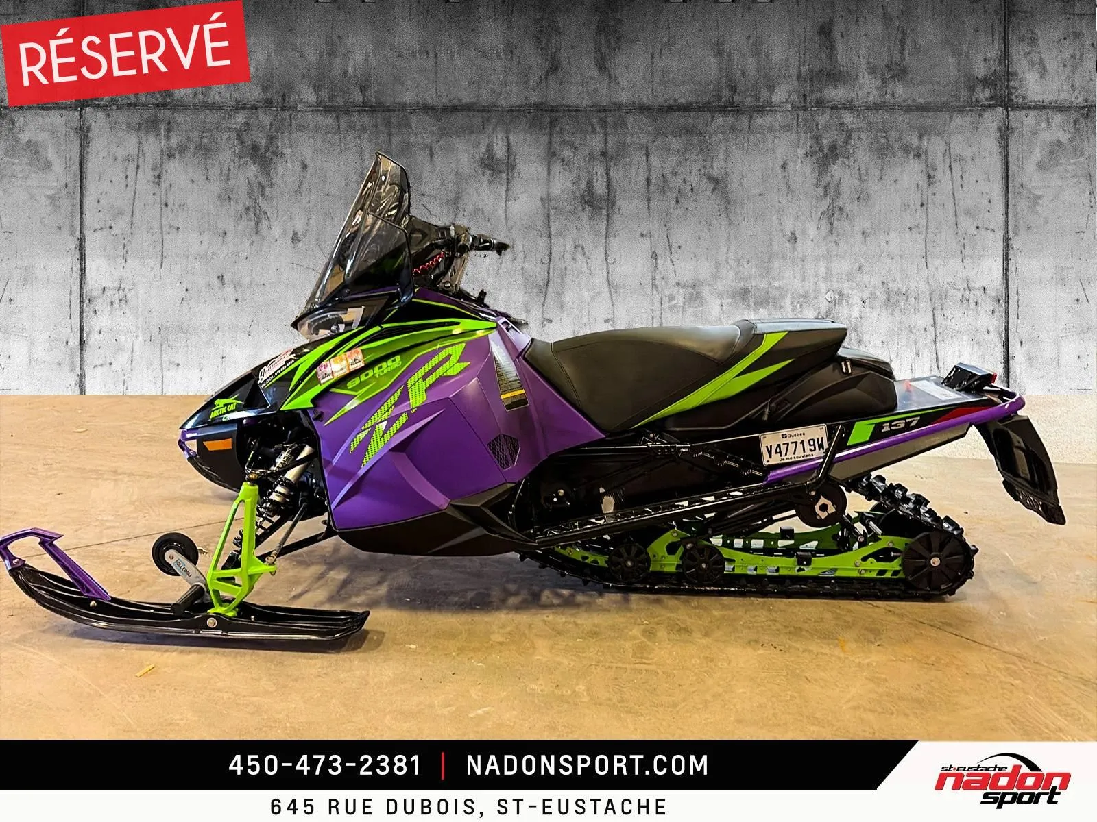 ARCTIC CAT ZR9000 TURBO 2019 Couleur : Vert Seulement 2 000 km Motoneige haute performance pour les vrais passionnés de puissance. Le ZR9000 Turbo 2019 est équipé d’un moteur turbo 4 temps ultra performant offrant une accélération explosive, une stabilité impressionnante et une conduite précise en sentier comme en conduite sportive. Points forts : Moteur 9000cc Turbo 4 temps Suspension sportive haute performance Direction précise et stable Sonorité agressive et distinctive Condition exceptionnelle Très bas kilométrage : 2 000 km seulement Machine idéale pour le pilote qui veut puissance, fiabilité et adrénaline dans un même produit. Prête pour la saison. Inspection complète effectuée.Prix de vente inclus les frais de TRANSPORT et PRÉPARATION. Photos à titre indicatives seulement, accessoires et options non inclus dans le prix. Les données sont affichées à titre indicatif seulement et ne peuvent être considérées comme une information contractuelle. N'hésitez pas à nous consulter pour plus de détails. Nous sommes dépositaire de plusieurs marques tel que, Bmw, Ducati, Husqvarna, Kawasaki, Polaris, et Yamaha, ainsi que les velo électrique de la marque Husqvarna et Gasgas. Nadon Sport St-Eustache vous offre également une boutique de vêtements, de pièces et d'accessoires de marques exclusives tel que : AGV, Dainese et Rev-it et bien plus encore.