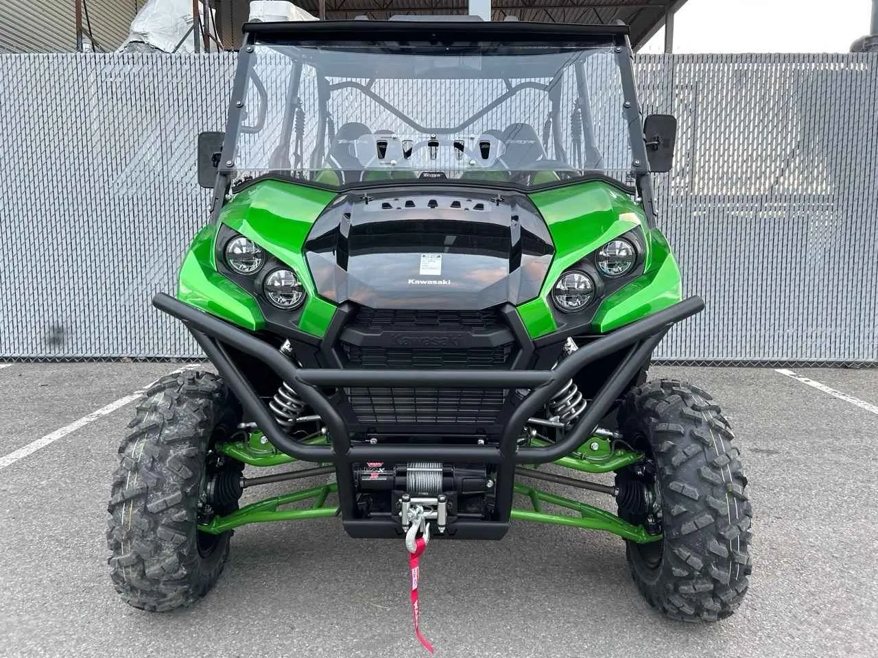 Kawasaki Teryx4 S SE 2025 : puissance et polyvalence pour l’aventure en famille La Kawasaki Teryx4 S SE 2025 est bien plus qu’un côte-à-côte : c’est une invitation à l’aventure, la performance et la liberté. Conçu pour les pilotes à la recherche d’un parfait équilibre entre puissance, maniabilité et confort, le Teryx4 S SE s’impose comme une référence reconnue dans la catégorie côte-à-côte utilitaire pour 4 passagers. Il est offert ici en Vert camouflage élégant avec accents noirs contrastants, une teinte qui allie style et robustesse. Équipé d’un moteur bicylindre 812 cm³ à injection électronique et double arbre à cames, le Teryx4 S SE offre une accélération dynamique, un couple généreux et une traction exceptionnelle, idéal pour les longues randonnées, les sentiers techniques, le hors-route et les travaux exigeants. Son châssis robuste et sa transmission intégrale à glissement limité, combinés à des sièges ergonomiques et une direction assistée précise, assurent une conduite stable et confortable, même dans des conditions difficiles. Que vous rouliez sur les sentiers des Laurentides, les forêts du Québec ou les pistes locales accidentées, ce côte-à-côte garantit une expérience de conduite sécuritaire et engageante. Côté design et équipement, le Teryx4 S SE 2025 se distingue par un style robuste et moderne, et une technologie pensée pour la performance, la sécurité et le confort : suspension indépendante à bras oscillants, éclairage LED, traction intégrale avec modes de conduite, tableau de bord numérique et protection des passagers. Kawasaki signe ici un véhicule fiable, performant et polyvalent, taillé pour les aventures en famille ou entre amis et les sorties tout-terrain exigeantes. Chez Nadon Sport à Saint-Eustache, nous proposons le/la Kawasaki Teryx4 S SE 2025 neuf(ve) à $, avec plusieurs options de financement : première, deuxième et troisième chance au crédit. Venez le/la découvrir en concession et comprendre pourquoi il/elle est considéré(e) comme l’un(e) des meilleurs côte-à-côte 4 passagers du marché. Depuis 1961, notre équipe accompagne les passionnés de sports motorisés du Québec dans le choix de véhicules adaptés à leur style de conduite et à leur utilisation. Situé à Saint-Eustache, notre concessionnaire offre un service personnalisé, des conseils d’experts et un accompagnement complet avant et après l’achat.