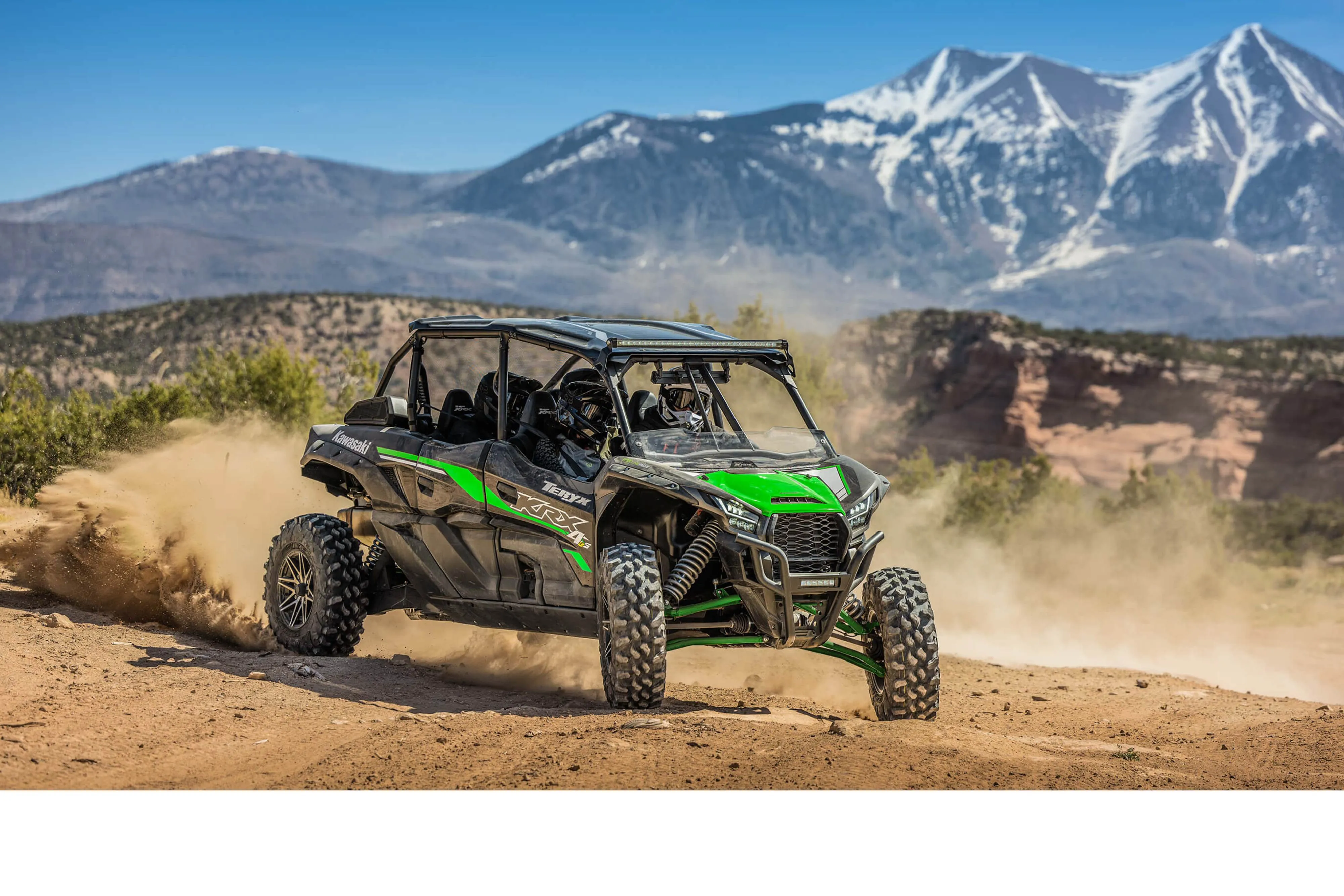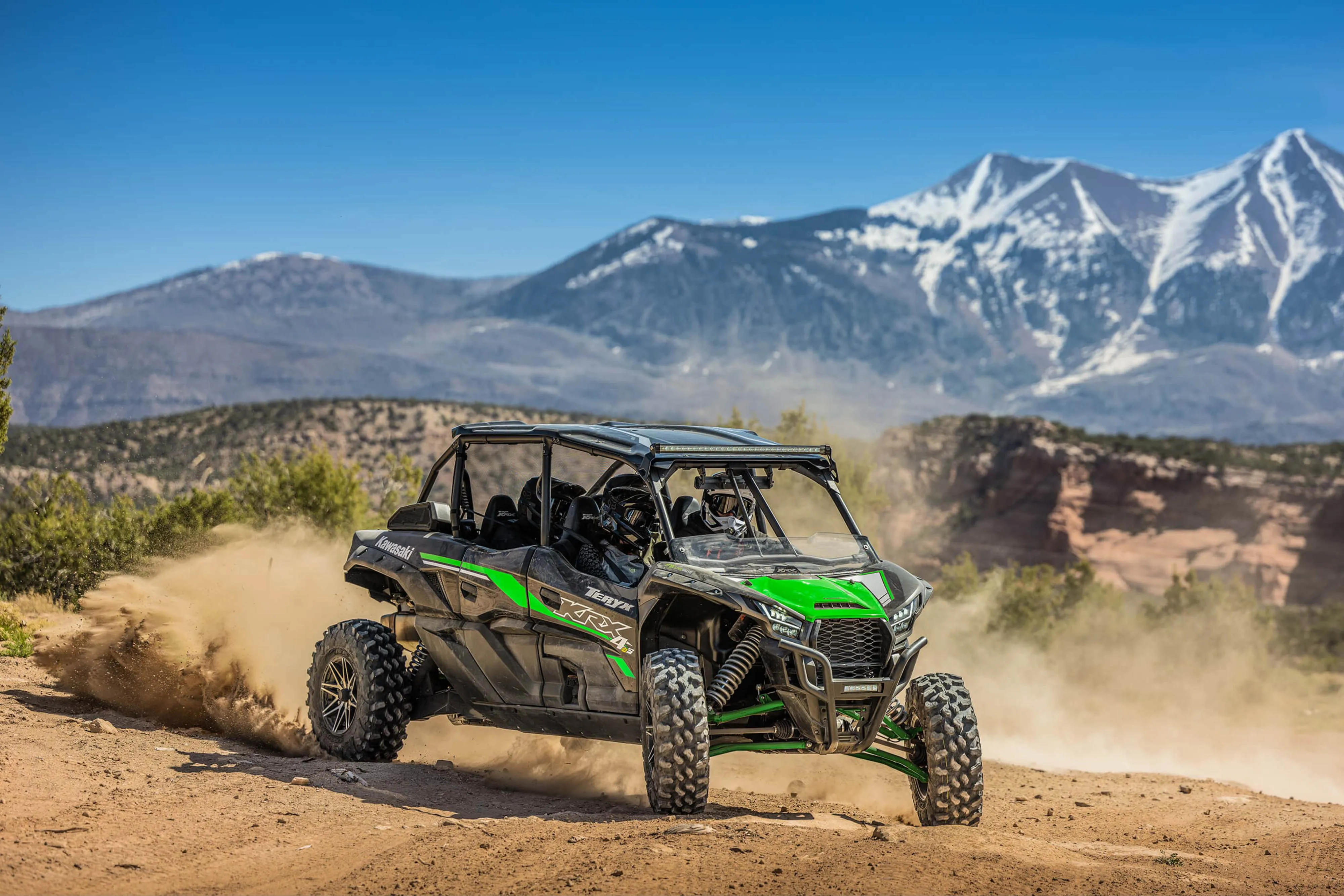Les modèles side by side Teryx sont conçus pour l’aventure et les sensations fortes! Priorité à la puissance et la maniabilité pour ces CAC parfaits pour le franchissement et les sentiers. Les amateurs de parcours ludiques préféreront le Teryx 2 passagers et le Teryx4 pour 4 passagers. Leurs suspensions sont haut de gamme, leur bicylindre déploie 783 cm3, l’espace cargo est de 272 kg (600 lb). Pneus 26 pouces et garde au sol de 285 mm (11,2 po). Les plus sportifs choisiront le Teryx KRX 1000 et son moteur bicylindre parallèle de 999 cm3 pour 2 passagers. Avec 4 roues motrices, blocage du différentiel avant à sélection électrique. Le tout associé à des pneus de 31 po, garde au sol de 14 po et empattement de 2 510 mm (98,8 pouces). Le Teryx KRX4 1000 accueille quant à lui 4 passagers. Jetez un œil aux choix de différentes éditions super stylées pour que votre nouveau jouet vous ressemble et dévoile votre personnalité!