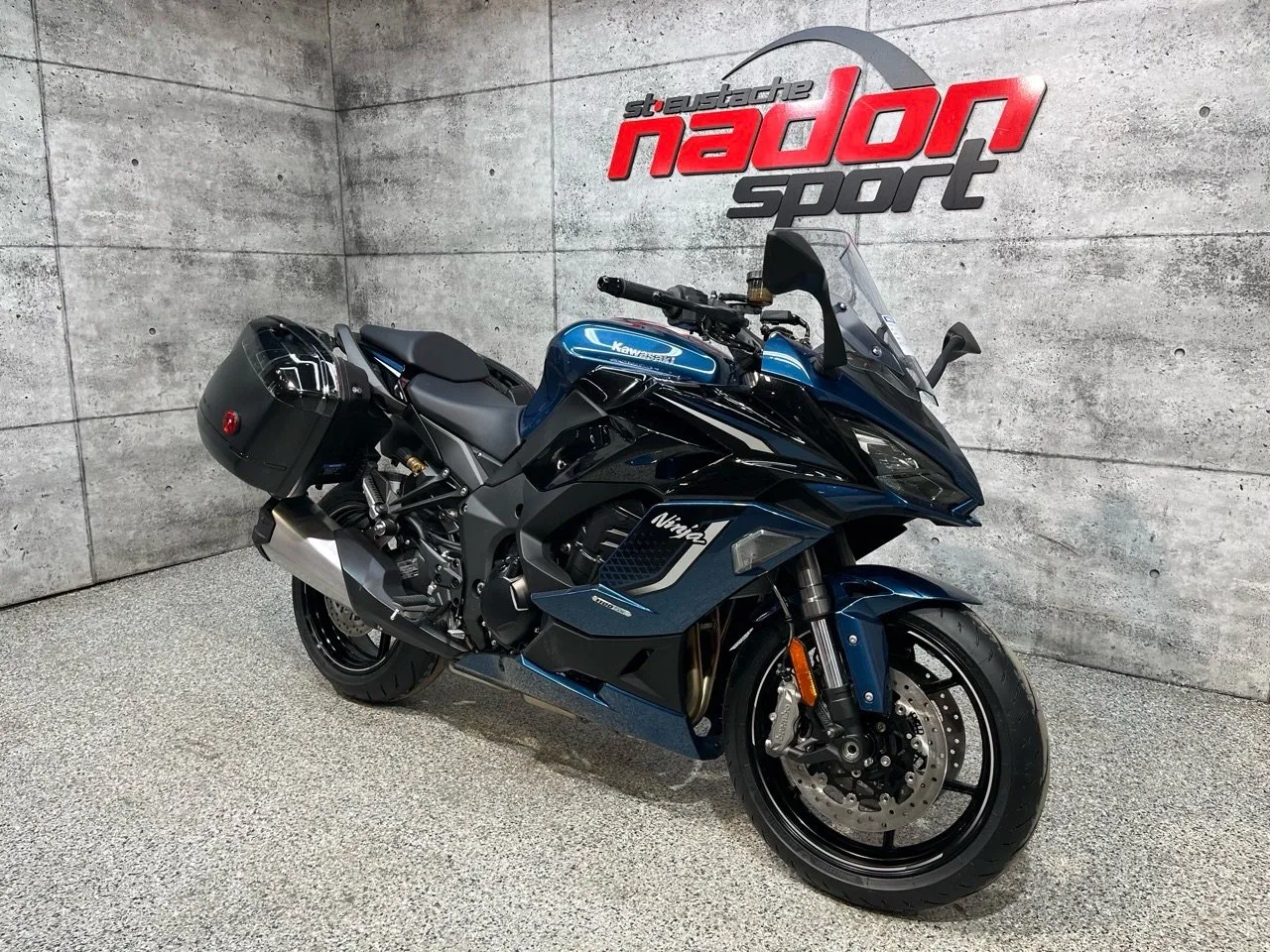 Kawasaki Ninja 1100SX SE 2026 : la sport-touring qui repousse les limites La Kawasaki Ninja 1100SX SE 2026 est bien plus qu’une moto sportive routière : c’est une invitation à la performance, la liberté et le plaisir des longues randonnées, offrant à la fois puissance et confort pour les trajets quotidiens comme pour les escapades sur route. Conçue pour les pilotes à la recherche d’un parfait équilibre entre puissance, confort et technologie, la Ninja 1100SX SE s’impose comme une référence reconnue dans la catégorie des sport-touring hautes performances. Elle est offerte ici en vert Kawasaki métallisé avec des accents noirs raffinés, combinant élégance et agressivité. Équipée d’un moteur quatre cylindres en ligne de 1 043 cm³ avec technologie électronique avancée, la Ninja 1100SX SE offre une accélération puissante, un couple constant et une stabilité exemplaire, idéal pour les longues randonnées, les routes sinueuses et les trajets quotidiens exigeants. Son châssis en aluminium léger et rigide, combiné à une suspension avant et arrière entièrement réglable et une position de conduite ergonomique, assure une maîtrise parfaite et un confort optimal, même dans des conditions exigeantes. Que vous rouliez sur les routes du Québec, dans les Laurentides ou sur des parcours montagneux, ce modèle garantit une expérience de conduite sécuritaire et engageante. Côté design et équipement, la Ninja 1100SX SE 2026 se distingue par son style sportif et moderne, et une technologie pensée pour la performance, la sécurité et le confort : Écran TFT couleur avec connectivité smartphone, Éclairage LED intégral pour une visibilité maximale, ABS et contrôle de traction Kawasaki pour une sécurité accrue, Modes de conduite ajustables pour adapter la moto à toutes les situations, Suspension semi-active électronique SE pour un confort et une stabilité optimisés. Kawasaki signe ici une moto fiable, performante et polyvalente, taillée pour les pilotes qui recherchent un sport-touring capable de tout affronter. Chez Nadon Sport à Saint-Eustache, nous proposons la Kawasaki Ninja 1100SX SE 2026 neuve à $, avec plusieurs options de financement flexibles, incluant la 1re, 2e et 3e chance au crédit. Venez la découvrir en concession et comprendre pourquoi elle est considérée comme l’une des meilleures motos sport-touring du marché. Depuis 1961, Nadon Sport accompagne les passionnés de sports motorisés du Québec dans le choix de véhicules adaptés à leur style de conduite et à leur utilisation. Situé à Saint-Eustache, notre concessionnaire offre un service personnalisé, des conseils d’experts et un accompagnement complet avant et après l’achat.
