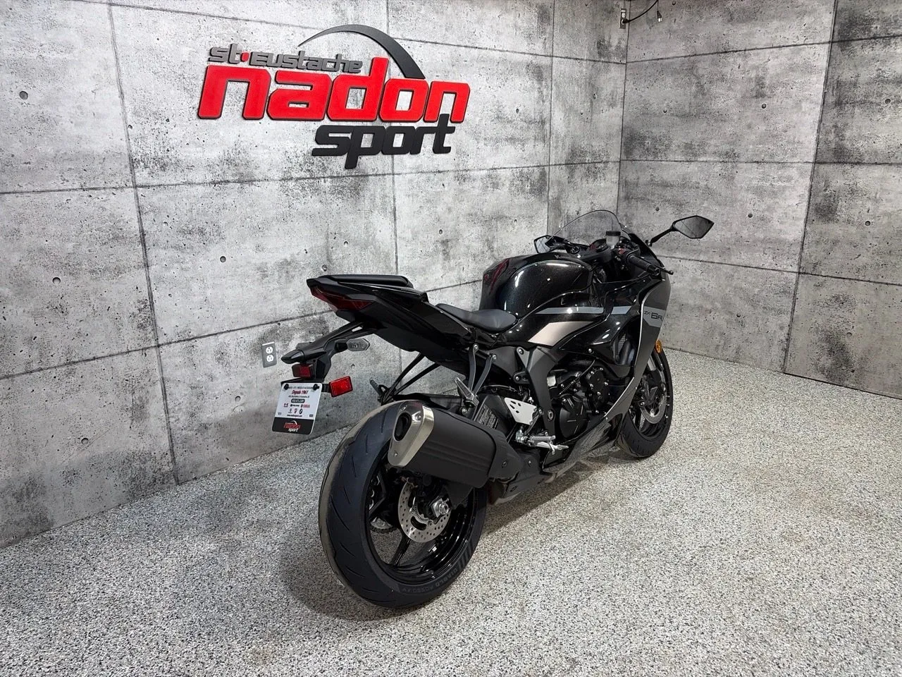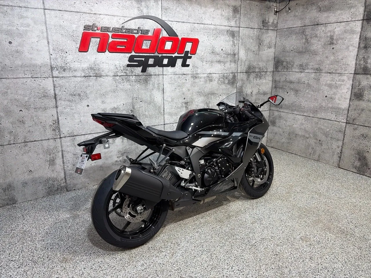 Kawasaki Ninja ZX-6R 2026 : la quintessence de la performance sportive La Kawasaki Ninja ZX-6R 2026 est bien plus qu’une moto sportive : c’est une invitation à la performance, la liberté et les sensations extrêmes sur route et piste. Conçue pour les pilotes à la recherche d’un parfait équilibre entre puissance, maniabilité et technologie, la ZX-6R s’impose comme une référence reconnue dans la catégorie supersport 600 cm³. Elle est offerte ici en vert KRT lumineux et noir carbone, une combinaison qui souligne son allure dynamique et agressive. Équipée d’un moteur quatre cylindres en ligne 636 cm³ avec injection électronique et refroidissement liquide, la ZX-6R 2026 offre une accélération vive, un couple réactif et une traction précise, idéale pour les routes sinueuses, les circuits et les sorties sportives sur route. Son châssis en aluminium léger et rigide, combiné à une suspension avant et arrière entièrement réglable et une position de conduite sportive, assure stabilité et contrôle exceptionnels, même dans des conditions exigeantes. Que vous rouliez sur les routes du Québec, les circuits des Laurentides ou tout tracé technique, cette moto garantit une expérience de conduite sécuritaire, engageante et exaltante. Côté design et équipement, la ZX-6R 2026 se distingue par un style sportif et moderne, et une technologie pensée pour la performance et la sécurité : tableau de bord TFT couleur, éclairage LED complet, modes de conduite, embrayage assisté et ABS désactivable pour un pilotage pur et précis. Kawasaki signe ici une moto fiable, performante et ultra-agile, taillée pour les amateurs de vitesse et de sensations fortes sur route et piste. Chez Nadon Sport à Saint-Eustache, nous proposons la Kawasaki Ninja ZX-6R 2026 neuve à $, avec plusieurs options de financement : première, deuxième et troisième chance au crédit. Venez la découvrir en concession et comprendre pourquoi elle est considérée comme l’une des meilleures supersport du marché. Depuis 1961, notre équipe accompagne les passionnés de sports motorisés du Québec dans le choix de véhicules adaptés à leur style de conduite et à leur utilisation. Situé à Saint-Eustache, notre concessionnaire offre un service personnalisé, des conseils d’experts et un accompagnement complet avant et après l’achat.