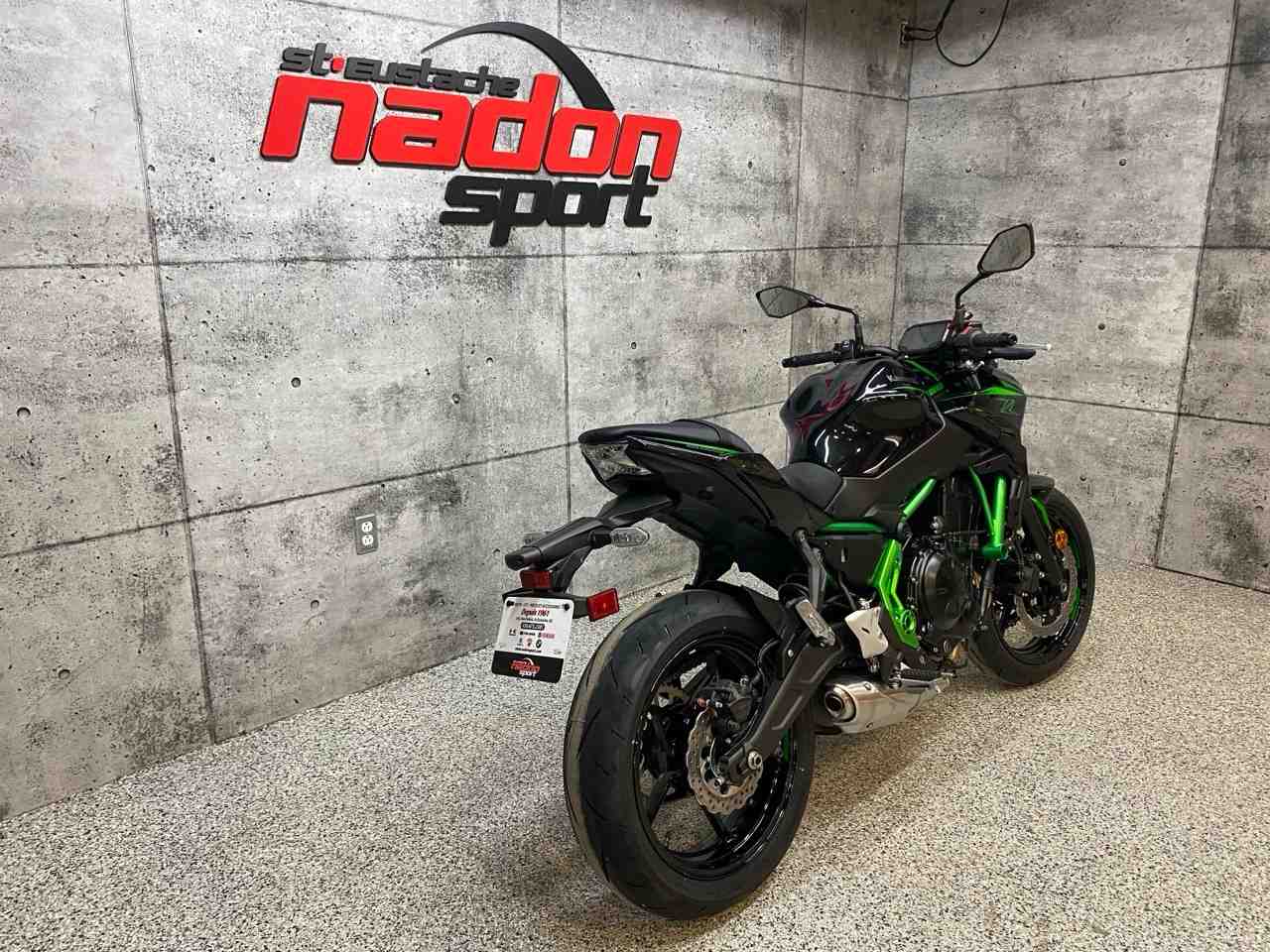 Kawasaki Z650 2025 : le roadster idéal pour dominer la route au quotidien La Kawasaki Z650 2025 est bien plus qu’une moto de route : c’est une véritable invitation à la performance, à la liberté et à la polyvalence, autant pour les trajets quotidiens que pour les sorties plaisir. Conçue pour les pilotes à la recherche d’un parfait équilibre entre puissance maîtrisée, maniabilité agile et fiabilité éprouvée, la Z650 s’impose comme une référence incontournable dans la catégorie des roadsters sport de moyenne cylindrée. Elle est offerte ici en vert Kawasaki au fini éclatant et sportif, une couleur emblématique qui souligne son caractère agressif et moderne. Équipée d’un moteur bicylindre parallèle de 649 cm³ à refroidissement liquide avec injection électronique, la Z650 offre une accélération vive, un couple généreux à bas et moyen régime ainsi qu’une excellente stabilité, idéale pour la route, les longues randonnées et les déplacements quotidiens. Son châssis treillis léger, combiné à une suspension équilibrée, une transmission souple et une position de conduite droite et naturelle, assure une prise en main intuitive et un contrôle précis, même dans des conditions exigeantes. Que vous rouliez au Québec, dans les Laurentides ou sur les routes urbaines et sinueuses, ce modèle garantit une expérience de conduite sécuritaire, engageante et agréable. Côté design et équipement, la Kawasaki Z650 2025 se distingue par un style sportif et moderne et une technologie pensée pour la sécurité et le confort, incluant : Écran TFT couleur avec connectivité Éclairage DEL complet Système de freinage ABS Contrôle de traction Kawasaki (KTRC) Embrayage assisté et antidribble Kawasaki signe ici une moto fiable, performante et polyvalente, taillée pour la conduite sur route, autant pour les motocyclistes en apprentissage avancé que pour les pilotes expérimentés. Chez Nadon Sport à Saint-Eustache, nous proposons la Kawasaki Z650 2025 neuve à $, avec plusieurs options de financement faciles, incluant la 1re, 2e et 3e chance au crédit. Venez la découvrir en concession et comprendre pourquoi elle est considérée comme l’une des meilleures motos de sa catégorie. Chez Nadon Sport, notre équipe accompagne les passionnés de sports motorisés du Québec depuis 1961 dans le choix de véhicules adaptés à leur style de conduite et à leur utilisation. Situé à Saint-Eustache, notre concessionnaire offre un service personnalisé, des conseils d’experts et un accompagnement complet avant et après l’achat.