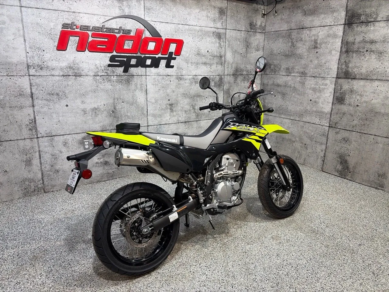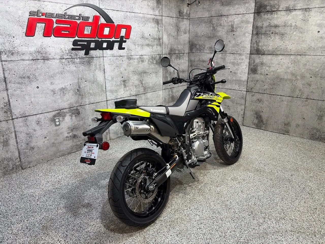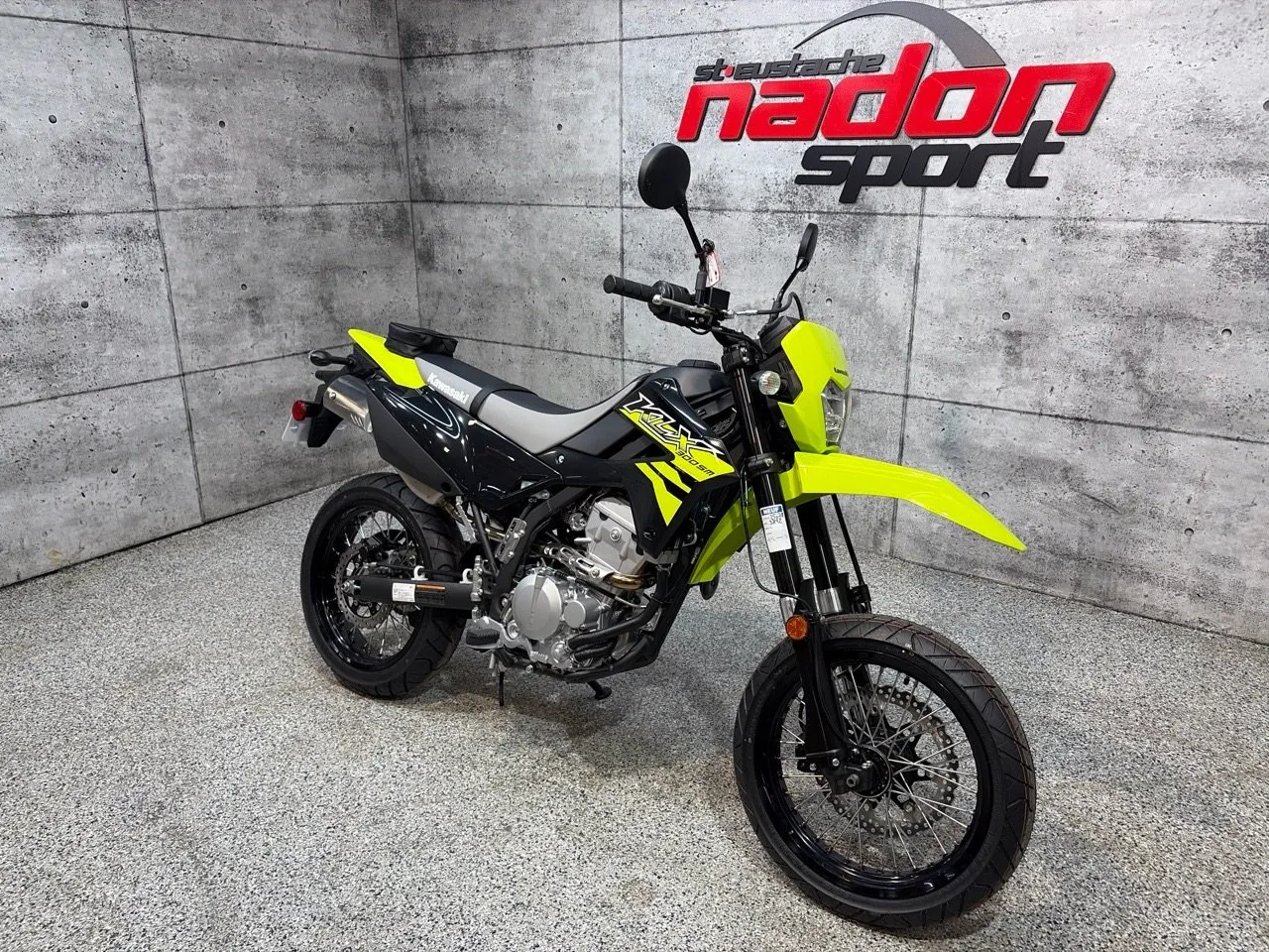 Kawasaki KLX300SM 2026 : la supermotard polyvalente par excellence La Kawasaki KLX300SM 2026 est bien plus qu’une moto double usage / supermotard : c’est une invitation à la performance, la liberté et l’aventure urbaine et tout-terrain. Conçue pour les pilotes à la recherche d’un parfait équilibre entre puissance, maniabilité et technologie, la KLX300SM s’impose comme une référence reconnue dans la catégorie supermotard léger et polyvalent. Elle est offerte ici en vert Kawasaki brillant et élégant, un coloris dynamique qui attire le regard et souligne son caractère sportif. Équipée d’un moteur monocylindre 292 cm³ 4-temps à injection électronique, la KLX300SM offre une accélération franche, un couple constant et une traction optimale, idéal pour les trajets urbains, les routes sinueuses et les escapades hors route légères. Son châssis en acier léger, suspension avant inversée et suspension arrière ajustable, combinés à une position de conduite droite et confortable, assurent une maniabilité exceptionnelle et une stabilité rassurante, même dans les conditions exigeantes des routes du Québec et des sentiers des Laurentides. Côté design et équipement, la KLX300SM 2026 se distingue par un style moderne et agressif, pensé pour la performance et la sécurité : Suspension avant inversée et arrière ajustable pour un confort et un contrôle optimaux, Freinage à disque avant et arrière haute performance, Éclairage LED complet pour une visibilité accrue, Tableau de bord digital compact et lisible, Pneus routiers et tout-terrain pour une polyvalence maximale. Kawasaki signe ici un véhicule fiable, performant et polyvalent, taillé pour la conduite urbaine, les sorties sportives et les aventures sur routes secondaires. Chez Nadon Sport à Saint-Eustache, nous proposons la Kawasaki KLX300SM 2026 neuve à