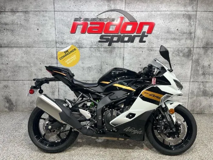 Kawasaki Ninja ZX-4RR 2026 : puissance et précision à l’état pur La Kawasaki Ninja ZX-4RR 2026 est bien plus qu’une moto sportive : c’est une invitation à la performance, la liberté et l’adrénaline sur route. Conçue pour les pilotes à la recherche d’un parfait équilibre entre puissance, maniabilité et technologie, la ZX-4RR s’impose comme une référence reconnue dans la catégorie supersport 400 cm³. Elle est offerte ici en vert éclatant KRT avec des accents noirs dynamiques, un style qui souligne son caractère audacieux et agressif. Équipée d’un moteur quatre cylindres en ligne 399 cm³ avec injection électronique et refroidissement liquide, la ZX-4RR 2026 offre accélération instantanée, couple réactif et stabilité dans les virages, idéal pour les longues sorties sportives sur route et les circuits techniques. Son châssis léger et rigide, combiné à une suspension avant et arrière entièrement réglable et une position de conduite sportive, assure une précision et un contrôle optimaux, même dans des conditions exigeantes. Que vous rouliez sur les routes du Québec ou les circuits des Laurentides, ce modèle garantit une expérience de conduite sécuritaire, engageante et exaltante. Côté design et équipement, la ZX-4RR 2026 se distingue par un style sportif et moderne, et une technologie pensée pour la performance et la sécurité : tableau de bord TFT couleur, éclairage LED complet, modes de conduite, embrayage assisté et ABS optimisé pour circuit. Kawasaki signe ici une moto fiable, performante et agile, taillée pour les amateurs de vitesse et de sensations fortes. Chez Nadon Sport à Saint-Eustache, nous proposons la Kawasaki Ninja ZX-4RR 2026 neuve à $, avec plusieurs options de financement : première, deuxième et troisième chance au crédit. Venez la découvrir en concession et comprendre pourquoi elle est considérée comme l’une des meilleures supersport du marché. Depuis 1961, notre équipe accompagne les passionnés de sports motorisés du Québec dans le choix de véhicules adaptés à leur style de conduite et à leur utilisation. Situé à Saint-Eustache, notre concessionnaire offre un service personnalisé, des conseils d’experts et un accompagnement complet avant et après l’achat.