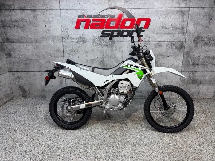 Kawasaki KLX300 2026 : puissance et polyvalence pour tous les terrains La Kawasaki KLX300 2026 est bien plus qu’une moto double usage : c’est une invitation à l’aventure, la performance et la liberté, que ce soit pour le loisir, les sentiers ou le travail hors route. Conçue pour les pilotes à la recherche d’un parfait équilibre entre puissance, maniabilité et confort, la KLX300 s’impose comme une référence reconnue dans la catégorie trail / enduro polyvalent. Elle est offerte ici en vert emblématique Kawasaki, vif et dynamique, un coloris qui souligne son caractère sportif et audacieux. Équipée d’un moteur monocylindre 292 cm³ 4-temps à injection électronique, la KLX300 2026 offre accélération réactive, couple soutenu et traction optimale, idéal pour les longues randonnées, les sentiers techniques, la route ou le hors route. Son châssis léger et robuste, combiné à une suspension avant inversée et arrière réglable, et à une ergonomie pensée pour la conduite prolongée, assure une maniabilité et un confort exceptionnels, même dans les conditions les plus exigeantes. Que vous rouliez sur les routes du Québec, les sentiers des Laurentides ou en pleine nature, la KLX300 2026 garantit une expérience de conduite sécuritaire et engageante. Côté design et équipement, la KLX300 2026 se distingue par un style moderne et robuste, pensé pour la performance, la sécurité et le confort : Suspension avant inversée et arrière ajustable pour une absorption optimale des chocs, Freins à disque avant et arrière pour un contrôle total, Éclairage LED haute visibilité pour rouler en toute sécurité, Tableau de bord digital lisible et pratique, Pneus tout-terrain polyvalents offrant une adhérence maximale. Kawasaki signe ici un véhicule fiable, performant et polyvalent, taillé pour le trail, l’aventure et le loisir. Chez Nadon Sport à Saint-Eustache, nous proposons la Kawasaki KLX300 2026 neuve à