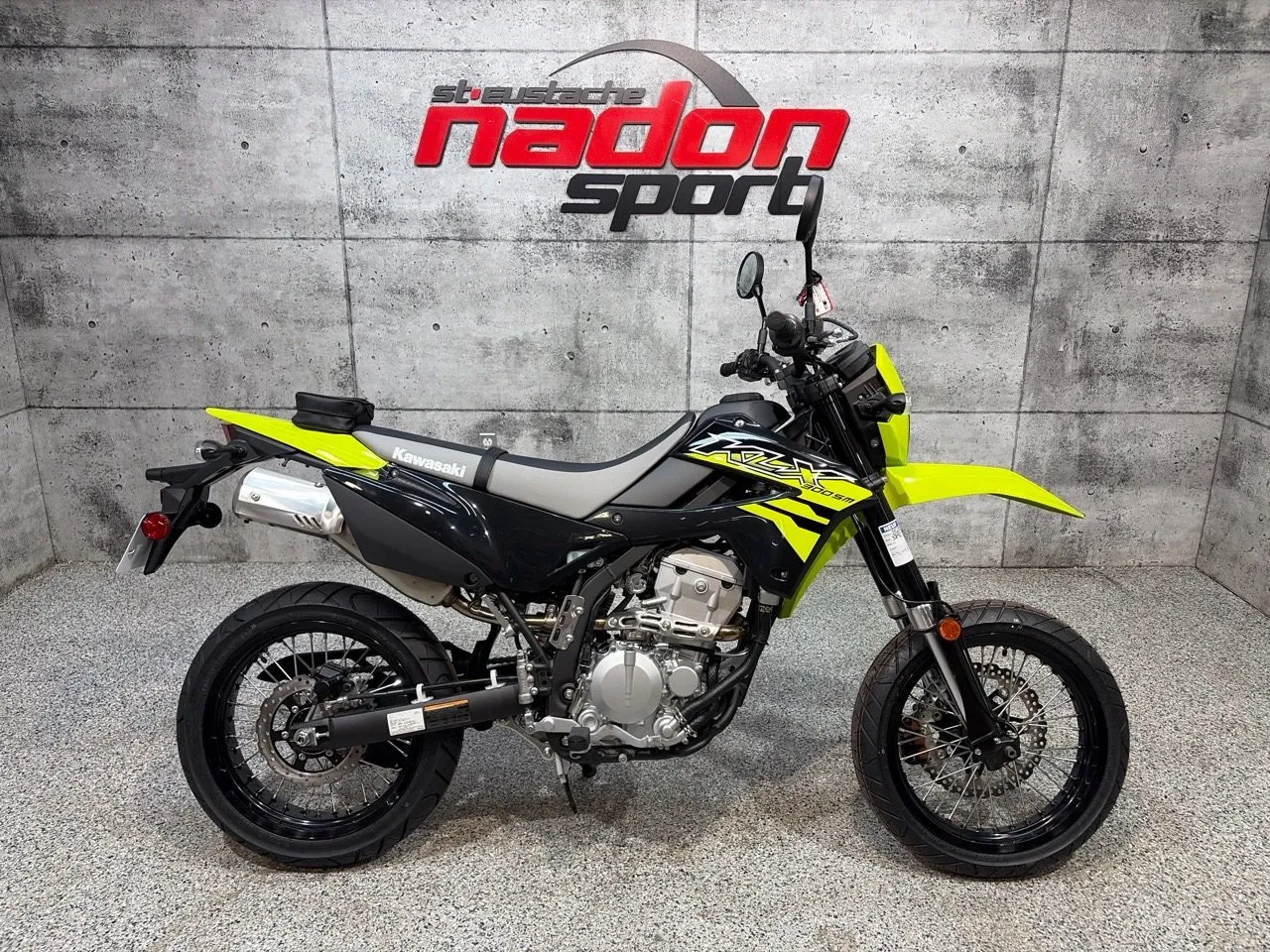 Kawasaki KLX300SM 2026 : la supermotard polyvalente par excellence La Kawasaki KLX300SM 2026 est bien plus qu’une moto double usage / supermotard : c’est une invitation à la performance, la liberté et l’aventure urbaine et tout-terrain. Conçue pour les pilotes à la recherche d’un parfait équilibre entre puissance, maniabilité et technologie, la KLX300SM s’impose comme une référence reconnue dans la catégorie supermotard léger et polyvalent. Elle est offerte ici en vert Kawasaki brillant et élégant, un coloris dynamique qui attire le regard et souligne son caractère sportif. Équipée d’un moteur monocylindre 292 cm³ 4-temps à injection électronique, la KLX300SM offre une accélération franche, un couple constant et une traction optimale, idéal pour les trajets urbains, les routes sinueuses et les escapades hors route légères. Son châssis en acier léger, suspension avant inversée et suspension arrière ajustable, combinés à une position de conduite droite et confortable, assurent une maniabilité exceptionnelle et une stabilité rassurante, même dans les conditions exigeantes des routes du Québec et des sentiers des Laurentides. Côté design et équipement, la KLX300SM 2026 se distingue par un style moderne et agressif, pensé pour la performance et la sécurité : Suspension avant inversée et arrière ajustable pour un confort et un contrôle optimaux, Freinage à disque avant et arrière haute performance, Éclairage LED complet pour une visibilité accrue, Tableau de bord digital compact et lisible, Pneus routiers et tout-terrain pour une polyvalence maximale. Kawasaki signe ici un véhicule fiable, performant et polyvalent, taillé pour la conduite urbaine, les sorties sportives et les aventures sur routes secondaires. Chez Nadon Sport à Saint-Eustache, nous proposons la Kawasaki KLX300SM 2026 neuve à $, avec plusieurs options de financement faciles, incluant 1re, 2e et 3e chance au crédit. Venez la découvrir en concession et comprendre pourquoi elle est considérée comme l’une des meilleures motos supermotard / double usage du marché. Depuis 1961, Nadon Sport accompagne les passionnés de sports motorisés du Québec dans le choix de véhicules adaptés à leur style de conduite et à leur utilisation, offrant service personnalisé, conseils d’experts et accompagnement complet avant et après l’achat.