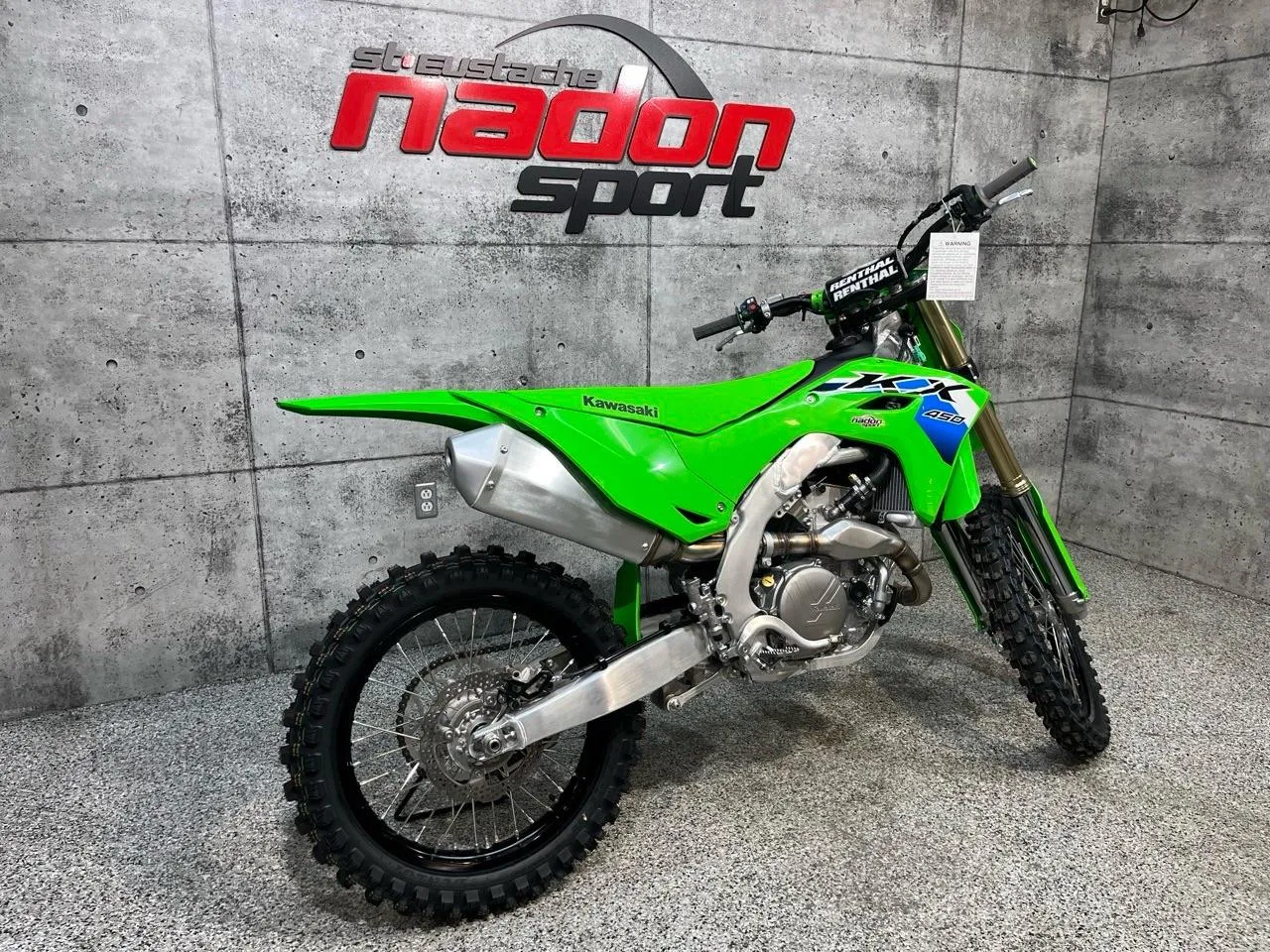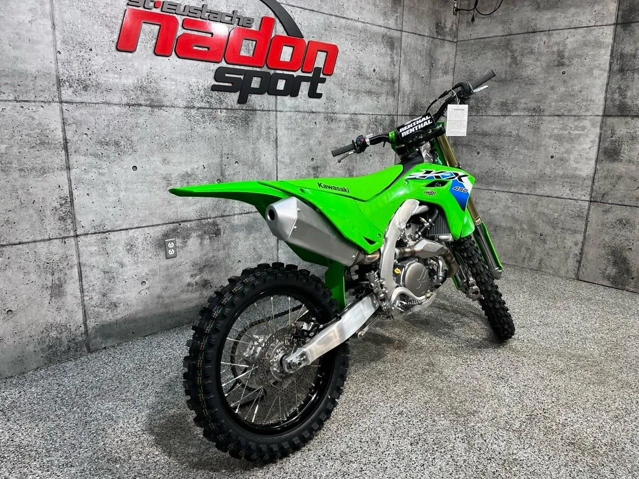 Kawasaki KX450 2026 : la référence ultime du motocross moderne La Kawasaki KX450 2026 est bien plus qu’une moto de motocross / tout-terrain : c’est une invitation à la performance, la liberté et la polyvalence sur piste et hors route. Conçue pour les pilotes à la recherche d’un parfait équilibre entre puissance, maniabilité et fiabilité, la KX450 s’impose comme une référence reconnue dans la catégorie motocross haute performance. Elle est offerte ici en vert Kawasaki vif et dynamique, un coloris qui reflète parfaitement son esprit compétitif et agressif. Équipée d’un moteur 4-temps de 449 cm³ à injection électronique et refroidissement liquide, la KX450 offre accélération fulgurante, couple élevé et traction exceptionnelle, idéale pour les pistes de motocross, les sentiers techniques, les longues randonnées hors route et les entraînements intensifs. Son châssis léger en aluminium, suspension Kayaba entièrement réglable et transmission de précision, combinés à une position de conduite ergonomique et agile, assurent une maniabilité et un contrôle remarquables, même dans des conditions exigeantes. Que vous rouliez sur les circuits du Québec, les sentiers des Laurentides ou vos pistes locales, la KX450 garantit une expérience de conduite sécuritaire, engagée et palpitante. Côté design et équipement, la KX450 2026 se distingue par un style sportif, moderne et robuste, et une technologie pensée pour la performance et le confort : Suspension Kayaba entièrement réglable pour un pilotage précis et adaptable, Freinage haute performance à disques avant et arrière, Châssis en aluminium léger pour une maniabilité optimale, Système d’injection électronique avancé pour une réponse moteur instantanée, Commandes et guidon ergonomiques pour un contrôle total et un confort prolongé. Kawasaki signe ici une moto fiable, performante et polyvalente, taillée pour le motocross, l’enduro et les entraînements techniques intensifs. Chez Nadon Sport à Saint-Eustache, nous proposons la Kawasaki KX450 2026 neuve à $, avec plusieurs options de financement faciles, incluant 1re, 2e et 3e chance au crédit. Venez la découvrir en concession et comprendre pourquoi elle est considérée comme l’une des meilleures motos de motocross du marché. Depuis 1961, Nadon Sport accompagne les passionnés de sports motorisés du Québec dans le choix de véhicules adaptés à leur style de conduite et à leur utilisation, offrant service personnalisé, conseils d’experts et accompagnement complet avant et après l’achat.