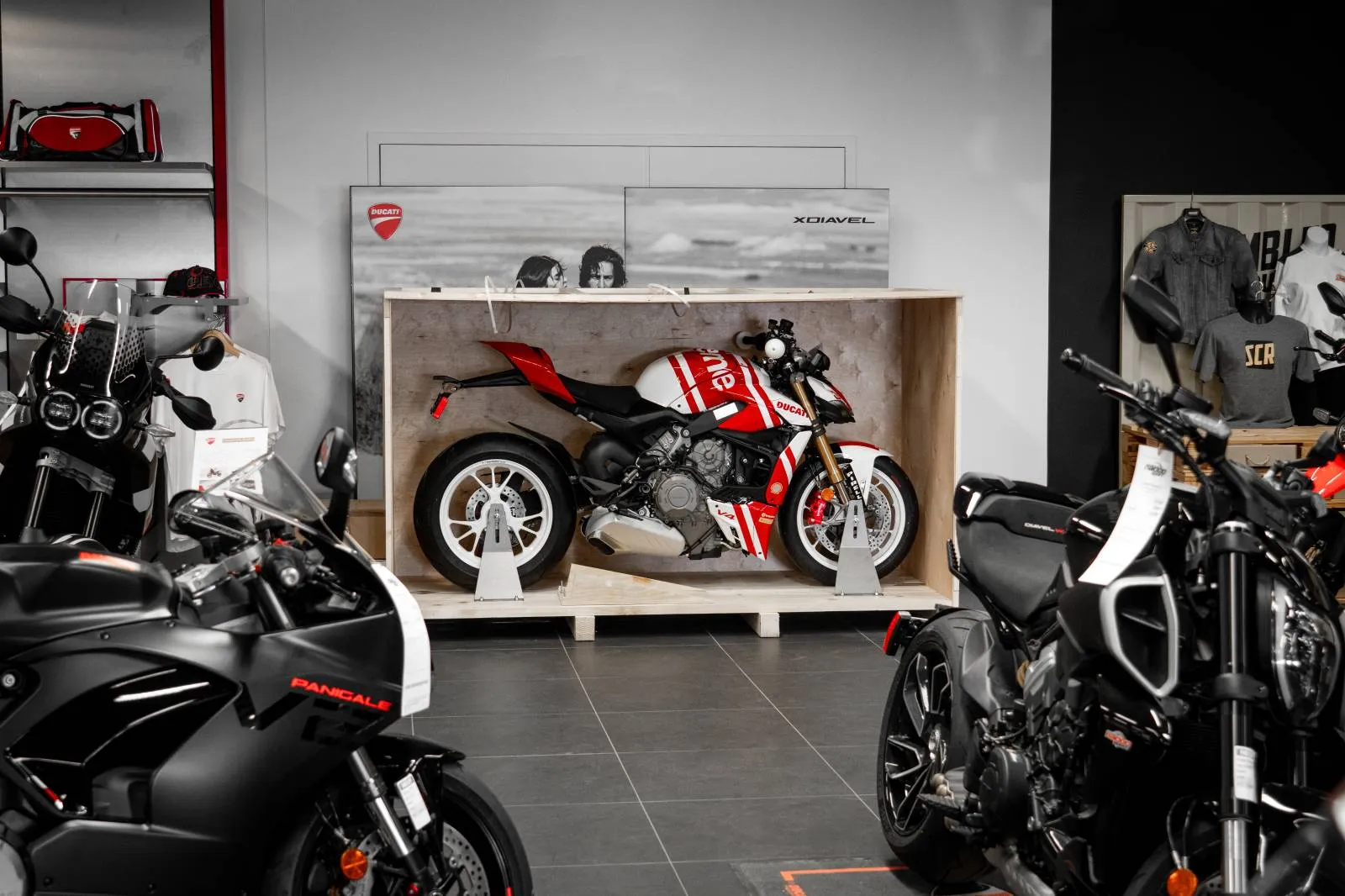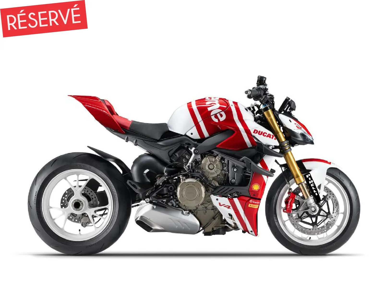 Ducati Streetfighter V4 Supreme 2025 : la puissance incarnée La Ducati Streetfighter V4 Supreme 2025 est bien plus qu’une moto de route sportive : c’est une invitation à la performance extrême, la liberté et l’adrénaline, pensée pour les pilotes en quête de sensations pures. Conçue pour ceux qui recherchent un parfait équilibre entre puissance, maniabilité et technologie, la Streetfighter V4 Supreme s’impose comme une référence reconnue dans la catégorie des naked sportives ultra-performantes. Elle est offerte ici en rouge Ducati mat avec accents noirs et détails carbone, un look à la fois agressif et raffiné. Équipée d’un moteur V4 Desmosedici Stradale de 1 103 cm³ avec technologie ride-by-wire et échappement racing, la Streetfighter V4 Supreme 2025 offre une accélération fulgurante, un couple impressionnant et une traction exceptionnelle, idéale pour routes sinueuses, circuits et longues randonnées sportives. Son châssis en aluminium monocoque, suspension Öhlins semi-active et transmission rapide à 6 vitesses, combinés à une position de conduite sportive et ergonomique, assurent stabilité, contrôle et confort, même dans des conditions exigeantes. Que vous rouliez sur les routes du Québec ou les routes sinueuses des Laurentides, la Streetfighter V4 Supreme 2025 garantit une expérience de conduite sécuritaire, engagée et palpitante. Côté design et équipement, la Streetfighter V4 Supreme 2025 se distingue par un style sportif, moderne et audacieux, et une technologie pensée pour la performance, la sécurité et le confort : Écran TFT couleur full-connecté avec navigation et données moteur Éclairage LED complet et feux diurnes DRL ABS Cornering Bosch, contrôle de traction Ducati et wheelie control Modes de conduite multiples (Race, Sport, Street, Wet) Suspension Öhlins Smart EC avec réglages dynamiques Ducati signe ici une moto fiable, performante et polyvalente, taillée pour les amateurs de sensations extrêmes sur route. Chez Nadon Sport à Saint-Eustache, nous proposons la Ducati Streetfighter V4 Supreme 2025 neuve à $, avec plusieurs options de financement flexibles incluant la 1re, 2e et 3e chance au crédit. Venez la découvrir en concession et comprendre pourquoi elle est considérée comme l’une des meilleures naked sportives du marché. Depuis 1961, chez Nadon Sport, notre équipe accompagne les passionnés de sports motorisés du Québec dans le choix de véhicules adaptés à leur style de conduite et à leur utilisation, avec un service personnalisé et un accompagnement complet avant et après l’achat.