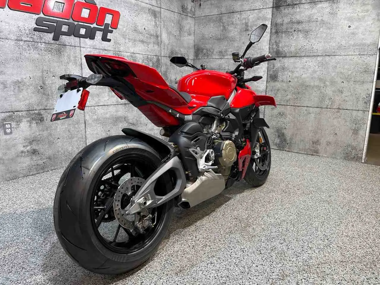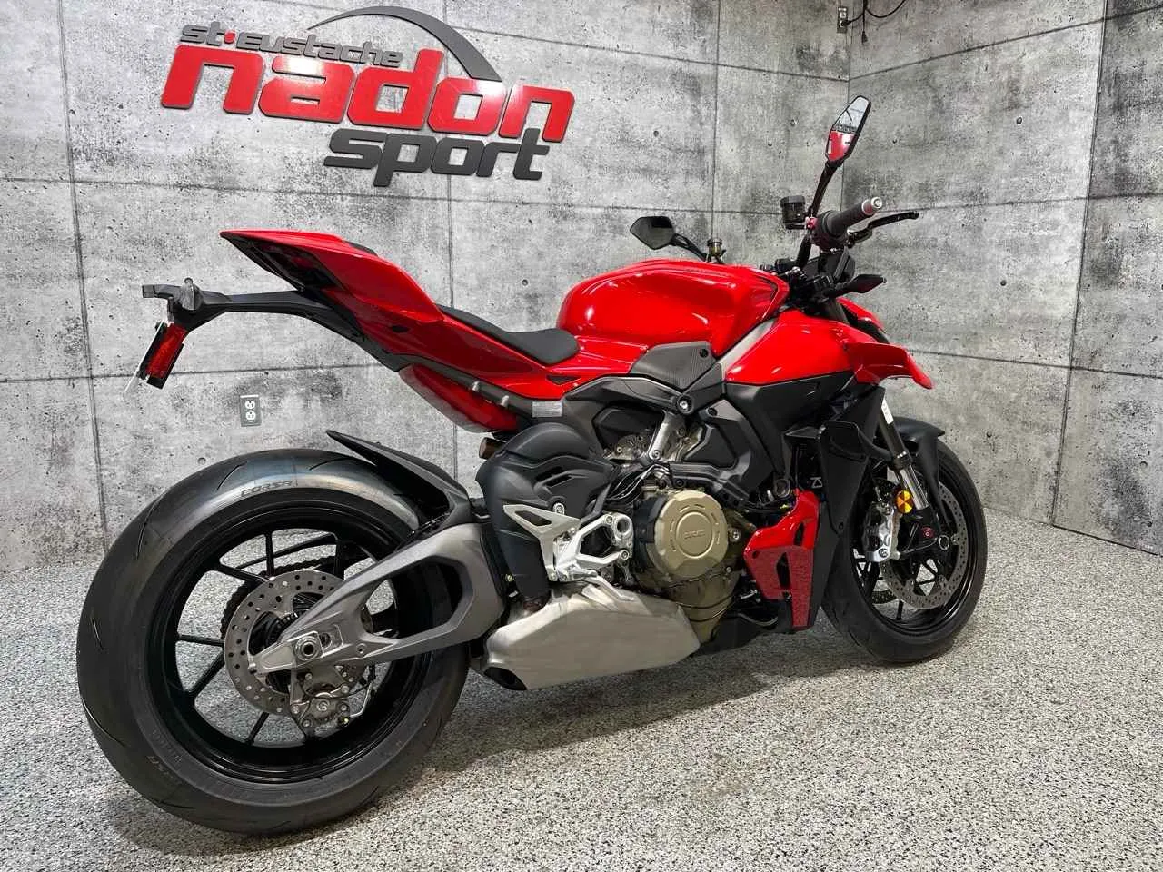 | Equipement de série | Launch control Ducati (DPL), Shifter Ducati (DQS) montée/descente 2.0, Eclairage Full LED avec feux diurnes (DRL)*, Amortisseur de direction Sachs, Boutons de réglage rapide, Pit Limiter, Clignotants à extinction automatique |