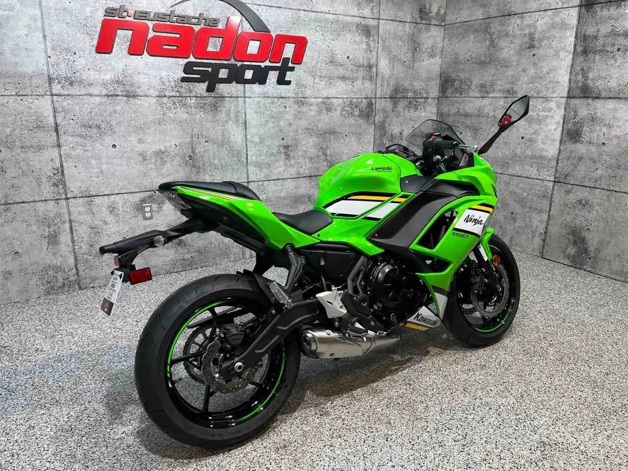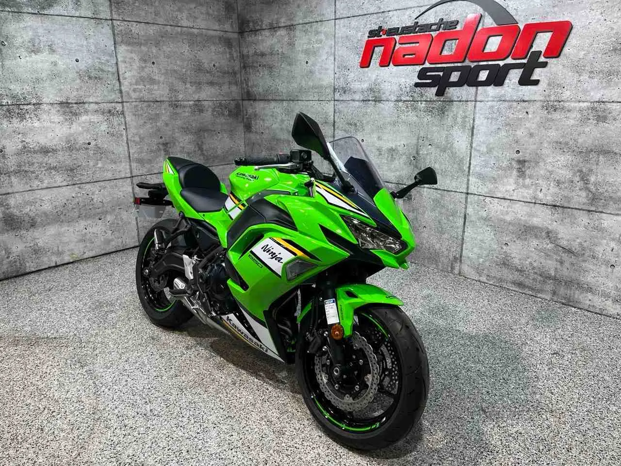 Kawasaki Ninja 650 2025 : la sport-touring polyvalente et performante La Kawasaki Ninja 650 2025 est bien plus qu’une moto routière sportive : c’est une invitation à la performance, à la liberté et au plaisir de conduite, que ce soit pour le quotidien ou les escapades sur route. Conçue pour les pilotes à la recherche d’un parfait équilibre entre puissance, maniabilité et confort, la Ninja 650 s’impose comme une référence reconnue dans la catégorie des motos sport-touring intermédiaires. Elle est offerte ici dans une livrée verte et noire éclatante, aux reflets modernes, dynamiques et sportifs, qui mettent en valeur son style racé et affirmé. Équipée d’un moteur bicylindre en ligne de 649 cm³ à refroidissement liquide et injection électronique, la Ninja 650 offre une accélération réactive, un couple généreux et une traction fiable, idéal pour les longues randonnées, les trajets quotidiens et les sorties sur routes sinueuses. Son châssis treillis en acier léger, combiné à une suspension réglable et une direction précise, assure une stabilité et un contrôle exceptionnels, même dans les conditions exigeantes. Que vous rouliez sur les routes du Québec, dans les Laurentides ou sur des tracés sinueux, la Ninja 650 garantit une expérience de conduite agréable, sécuritaire et engageante. Côté design et équipement, la Kawasaki Ninja 650 2025 se distingue par son style sportif et moderne, et une technologie pensée pour la performance et la sécurité : Écran TFT couleur moderne, Éclairage DEL complet, ABS optimisé pour la route, Modes de conduite et contrôle de traction, Suspension réglable pour confort et sportivité. Kawasaki signe ici une moto fiable, performante et polyvalente, taillée pour la route et les sorties sportives. Chez Nadon Sport à Saint-Eustache, nous proposons la Kawasaki Ninja 650 2025 neuve à $, avec plusieurs options de financement flexibles, incluant la 1re, 2e et 3e chance au crédit. Venez la découvrir en concession et comprendre pourquoi elle est considérée comme l’une des meilleures motos sport-touring de sa catégorie. Chez Nadon Sport, notre équipe accompagne les passionnés de sports motorisés du Québec depuis 1961 dans le choix de véhicules adaptés à leur style de conduite et à leur utilisation. Situé à Saint-Eustache, notre concessionnaire offre un service personnalisé, des conseils d’experts et un accompagnement complet avant et après l’achat.