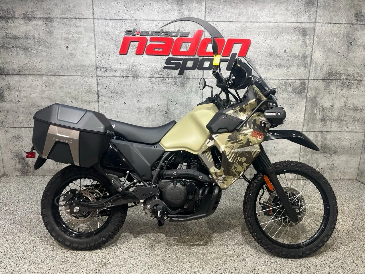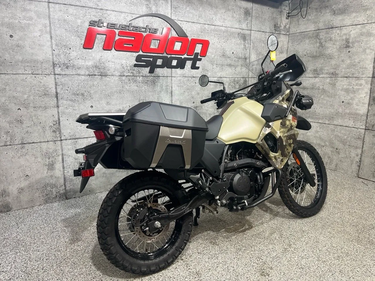 Kawasaki KLR650 Adventure 2026 : L’aventure sans limites La Kawasaki KLR650 Adventure 2026 est bien plus qu’une moto double usage : c’est une invitation à l’aventure, la liberté et la polyvalence, conçue pour les pilotes qui veulent explorer routes, sentiers et horizons lointains avec confiance et plaisir. Conçue pour les pilotes à la recherche d’un parfait équilibre entre puissance, maniabilité et confort, la KLR650 Adventure s’impose comme une référence reconnue dans la catégorie trail / aventure longue distance. Elle est offerte ici en vert Kawasaki dynamique et robuste, reflétant son esprit aventureux et résistant. Équipée d’un moteur monocylindre 652 cm³ 4-temps à injection électronique et refroidissement air/huile, la KLR650 Adventure offre un couple généreux, une traction fiable et une stabilité optimale, idéal pour longues randonnées, sentiers techniques, routes asphaltées et excursions hors route. Son châssis tubulaire renforcé, combiné à une suspension avant télescopique et arrière mono-amortisseur réglable, assure une maniabilité fluide et un confort de conduite supérieur, même dans les conditions les plus exigeantes. Que vous rouliez sur les routes et sentiers du Québec et des Laurentides, cette moto garantit une expérience sécuritaire et engageante. Côté design et équipement, la KLR650 Adventure 2026 se distingue par un style robuste, moderne et aventurier, avec une technologie pensée pour la performance et la sécurité : phares LED, tableau de bord clair, protection moteur, supports pour bagages et autonomie étendue. Kawasaki signe ici une moto fiable, performante et polyvalente, taillée pour l’aventure et le tourisme tout-terrain longue distance. Chez Nadon Sport à Saint-Eustache, nous proposons la Kawasaki KLR650 Adventure 2026 neuve à $, avec plusieurs options de financement facile : première, deuxième et troisième chance au crédit. Venez la découvrir en concession et comprendre pourquoi elle est considérée comme l’une des meilleures motos double usage du marché. Depuis 1961, notre équipe accompagne les passionnés de sports motorisés du Québec dans le choix de véhicules adaptés à leur style de conduite et à leur utilisation, avec un service personnalisé avant et après l’achat.