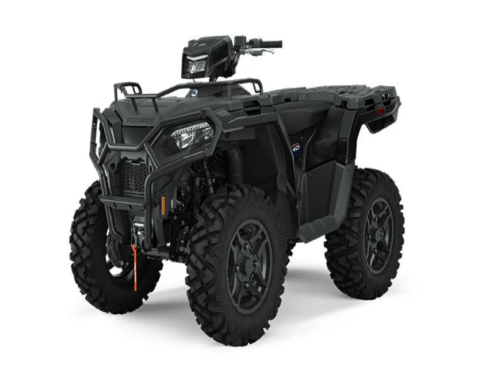 Other standard features Front Trail Bumper, 2,500 lb. Polaris HD Winch, 12 Volt Power Plug, Pre-Wired for Hand & Thumb Warmers, In Pod Battery Charger, Painted Plastics, Front and Rear A-Arm Guards