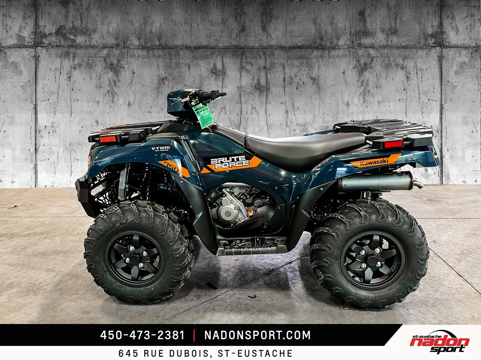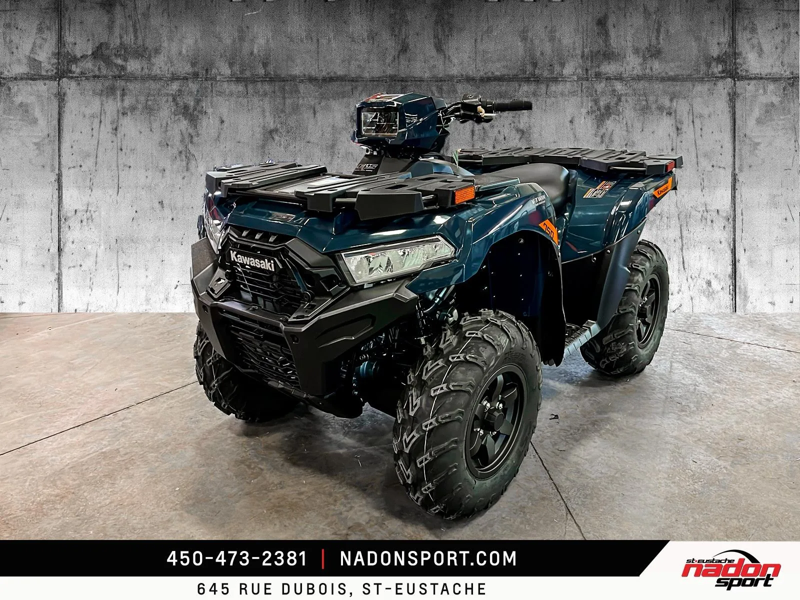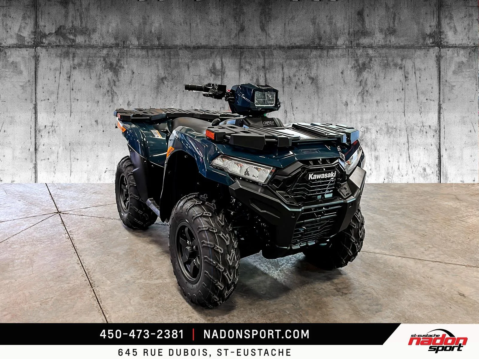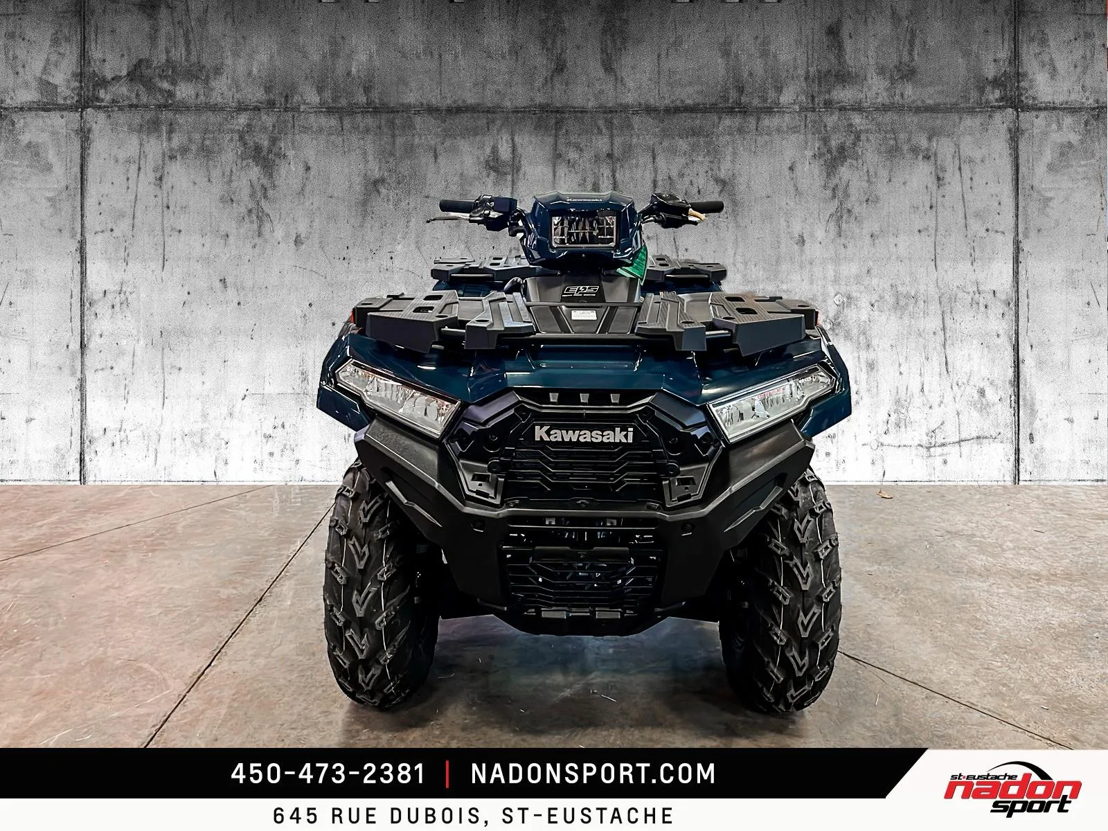 Kawasaki Brute Force 750 EPS 2026 Kawasaki Brute Force 750 EPS 2026 : liberté et puissance sur tous les terrains La Kawasaki Brute Force 750 EPS 2026 est bien plus qu’un VTT : c’est une invitation à la performance, à la polyvalence et à l’aventure, qu’importe le terrain. Conçu pour les pilotes à la recherche d’un parfait équilibre entre puissance, fiabilité et technologie, le Brute Force 750 EPS 2026 s’impose comme une référence dans la catégorie VTT utilitaire et récréatif premium. Elle est offerte en vert militaire éclatant et robuste, parfait pour affronter tous les sentiers et travaux exigeants. Équipé d’un moteur bicylindre en V de 749 cm³ à injection électronique, le Brute Force 750 EPS 2026 offre traction et couple puissants, idéal pour longues randonnées, hors-route, sentiers et travail. Son châssis renforcé avec suspension indépendante double A, combiné à une position de conduite ergonomique et direction assistée, assure une stabilité et un contrôle exceptionnels, même dans les conditions les plus difficiles. Que vous rouliez sur les routes, sentiers et territoires du Québec et des Laurentides, ce VTT garantit une expérience de conduite sécuritaire et dynamique. Côté design et équipement, le Brute Force 750 EPS 2026 se distingue par son style robuste et aventurier, avec une technologie pensée pour performance, sécurité et confort : Suspension arrière indépendante ajustable Direction assistée EPS Transmission intégrale 2WD/4WD avec différentiel verrouillable Freins à disque hydrauliques haute performance Kawasaki signe ici un VTT fiable, puissant et polyvalent, taillé pour tous les usages récréatifs et professionnels. Chez Nadon Sport à Saint-Eustache, nous proposons le Brute Force 750 EPS 2026 neuf à $, avec plusieurs options de financement faciles, première, deuxième et troisième chance au crédit. Venez le découvrir en concession et comprendre pourquoi il est considéré comme l’un des meilleurs VTT du marché. Depuis 1961, notre équipe accompagne les passionnés du Québec dans le choix de véhicules adaptés à leur style de conduite et à leur utilisation, avec un service complet avant et après l’achat.