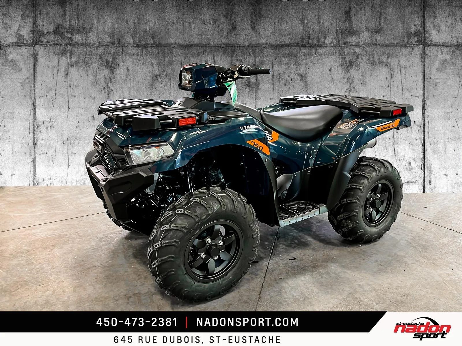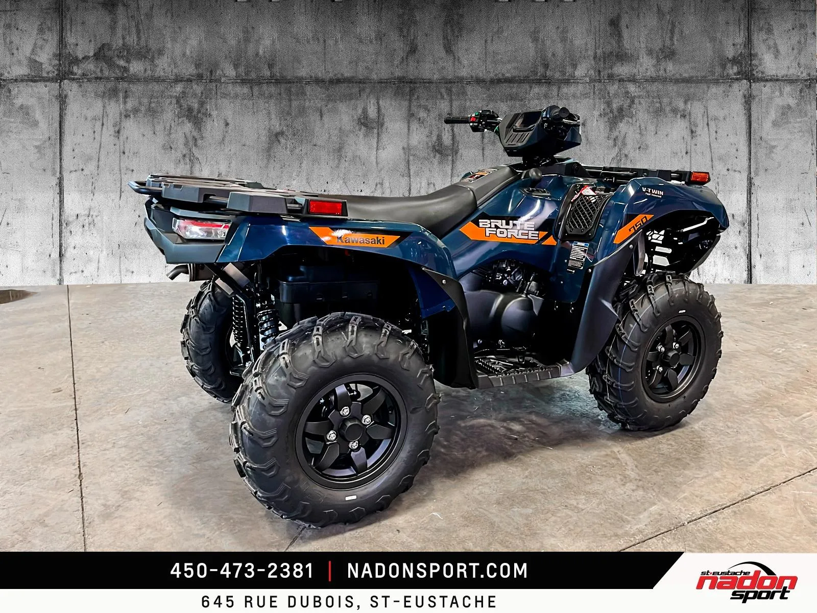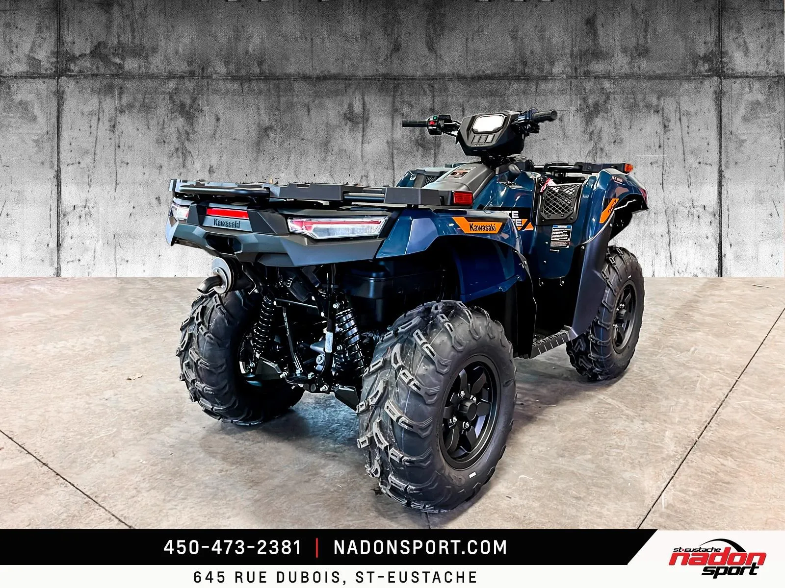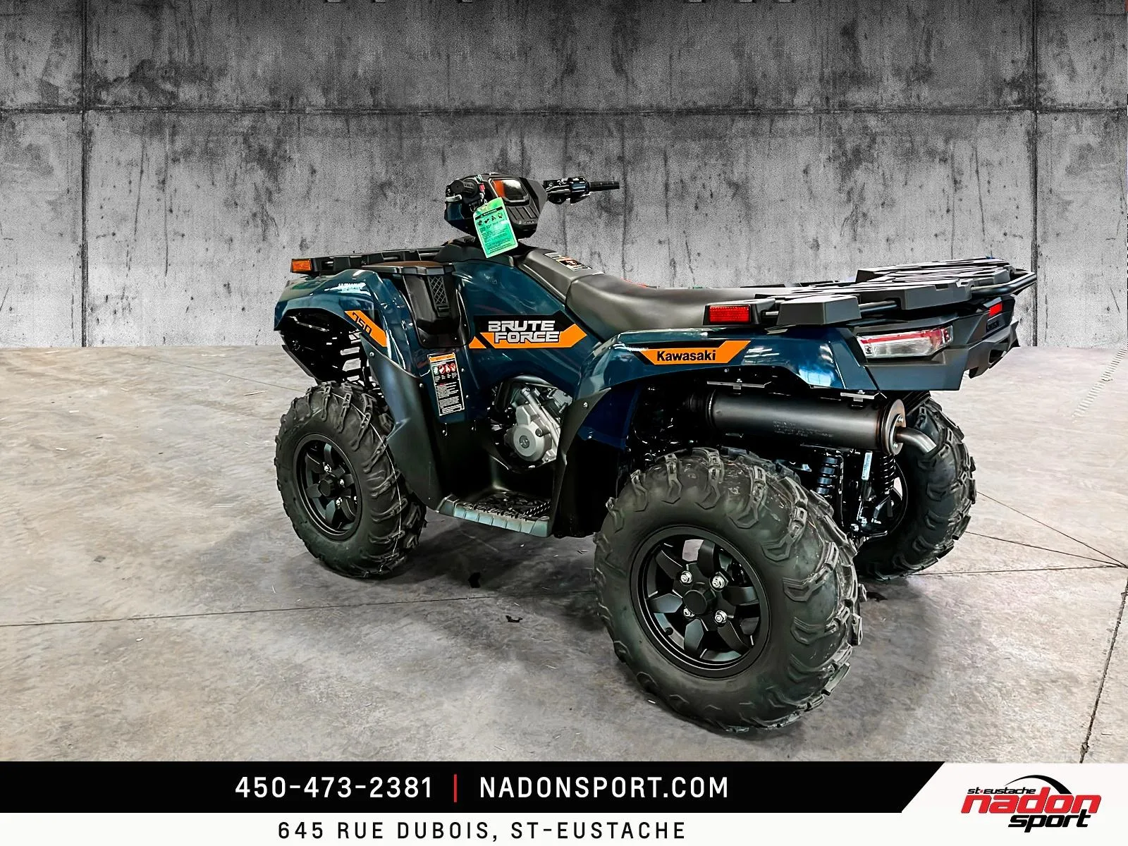Kawasaki Brute Force 750 EPS 2026 Kawasaki Brute Force 750 EPS 2026 : liberté et puissance sur tous les terrains La Kawasaki Brute Force 750 EPS 2026 est bien plus qu’un VTT : c’est une invitation à la performance, à la polyvalence et à l’aventure, qu’importe le terrain. Conçu pour les pilotes à la recherche d’un parfait équilibre entre puissance, fiabilité et technologie, le Brute Force 750 EPS 2026 s’impose comme une référence dans la catégorie VTT utilitaire et récréatif premium. Elle est offerte en vert militaire éclatant et robuste, parfait pour affronter tous les sentiers et travaux exigeants. Équipé d’un moteur bicylindre en V de 749 cm³ à injection électronique, le Brute Force 750 EPS 2026 offre traction et couple puissants, idéal pour longues randonnées, hors-route, sentiers et travail. Son châssis renforcé avec suspension indépendante double A, combiné à une position de conduite ergonomique et direction assistée, assure une stabilité et un contrôle exceptionnels, même dans les conditions les plus difficiles. Que vous rouliez sur les routes, sentiers et territoires du Québec et des Laurentides, ce VTT garantit une expérience de conduite sécuritaire et dynamique. Côté design et équipement, le Brute Force 750 EPS 2026 se distingue par son style robuste et aventurier, avec une technologie pensée pour performance, sécurité et confort : Suspension arrière indépendante ajustable Direction assistée EPS Transmission intégrale 2WD/4WD avec différentiel verrouillable Freins à disque hydrauliques haute performance Kawasaki signe ici un VTT fiable, puissant et polyvalent, taillé pour tous les usages récréatifs et professionnels. Chez Nadon Sport à Saint-Eustache, nous proposons le Brute Force 750 EPS 2026 neuf à $, avec plusieurs options de financement faciles, première, deuxième et troisième chance au crédit. Venez le découvrir en concession et comprendre pourquoi il est considéré comme l’un des meilleurs VTT du marché. Depuis 1961, notre équipe accompagne les passionnés du Québec dans le choix de véhicules adaptés à leur style de conduite et à leur utilisation, avec un service complet avant et après l’achat.