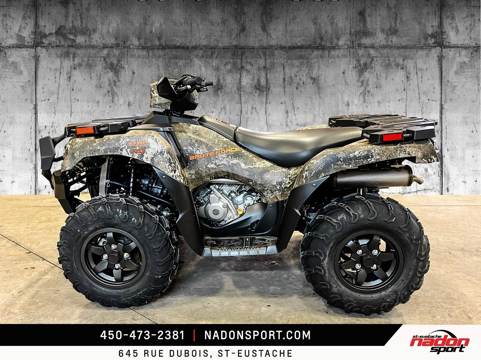Kawasaki Brute Force 750 EPS SE 2026 : Puissance et maîtrise extrême La Kawasaki Brute Force 750 EPS SE 2026 : la référence ultime pour dominer tous les terrains. La Kawasaki Brute Force 750 EPS SE est bien plus qu’un VTT côte-à-côte : c’est une invitation à l’aventure, la liberté et la performance hors route. Conçu(e) pour les pilotes à la recherche d’un parfait équilibre entre puissance, maniabilité et confort, le Brute Force 750 EPS SE s’impose comme une référence reconnue dans la catégorie VTT utilitaire et récréatif haute performance. Elle est offerte ici en vert éclatant avec accents noirs mats, soulignant son style robuste et agressif. Équipé(e) d’un moteur bicylindre en V de 749 cc à injection électronique, le/la Brute Force 750 EPS SE offre un couple impressionnant, une traction inégalée et une accélération réactive, idéal(e) pour les longues randonnées, les sentiers techniques, le travail et les sorties hors route. Son châssis renforcé, combiné à la suspension indépendante à grand débattement et à la direction assistée EPS, assure une maîtrise totale et un confort exceptionnel, même dans les conditions les plus exigeantes. Que vous rouliez sur les sentiers des Laurentides, les routes forestières du Québec ou vos terrains de travail, ce VTT garantit une expérience de conduite sécuritaire, stable et engageante. Côté design et équipement, le/la Brute Force 750 EPS SE 2026 se distingue par un style sportif et robuste, et une technologie pensée pour la performance, la sécurité et le confort : Direction assistée EPS Suspension indépendante à grand débattement Pneus tout-terrain haute adhérence Éclairage LED haute intensité Différentiel avant verrouillable Kawasaki signe ici un VTT fiable, performant et polyvalent, taillé pour l’aventure extrême et le travail sur tous les terrains. Chez Nadon Sport à Saint-Eustache, nous proposons le/la Kawasaki Brute Force 750 EPS SE 2026 neuf(ve) à $, avec plusieurs options de financement faciles, incluant 1re, 2e et 3e chance au crédit. Venez le/la découvrir en concession et comprendre pourquoi il/elle est considéré(e) comme l’un des meilleurs VTT haute performance du marché. Depuis 1961, notre équipe accompagne les passionnés de sports motorisés du Québec dans le choix de véhicules adaptés à leur style de conduite et à leur utilisation. Situé à Saint-Eustache, notre concessionnaire offre un service personnalisé, des conseils d’experts et un accompagnement complet avant et après l’achat.