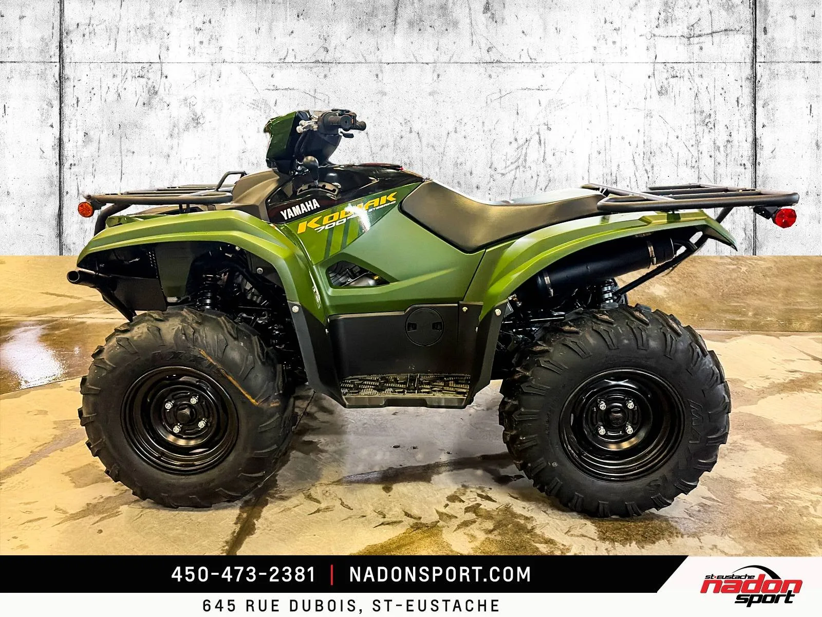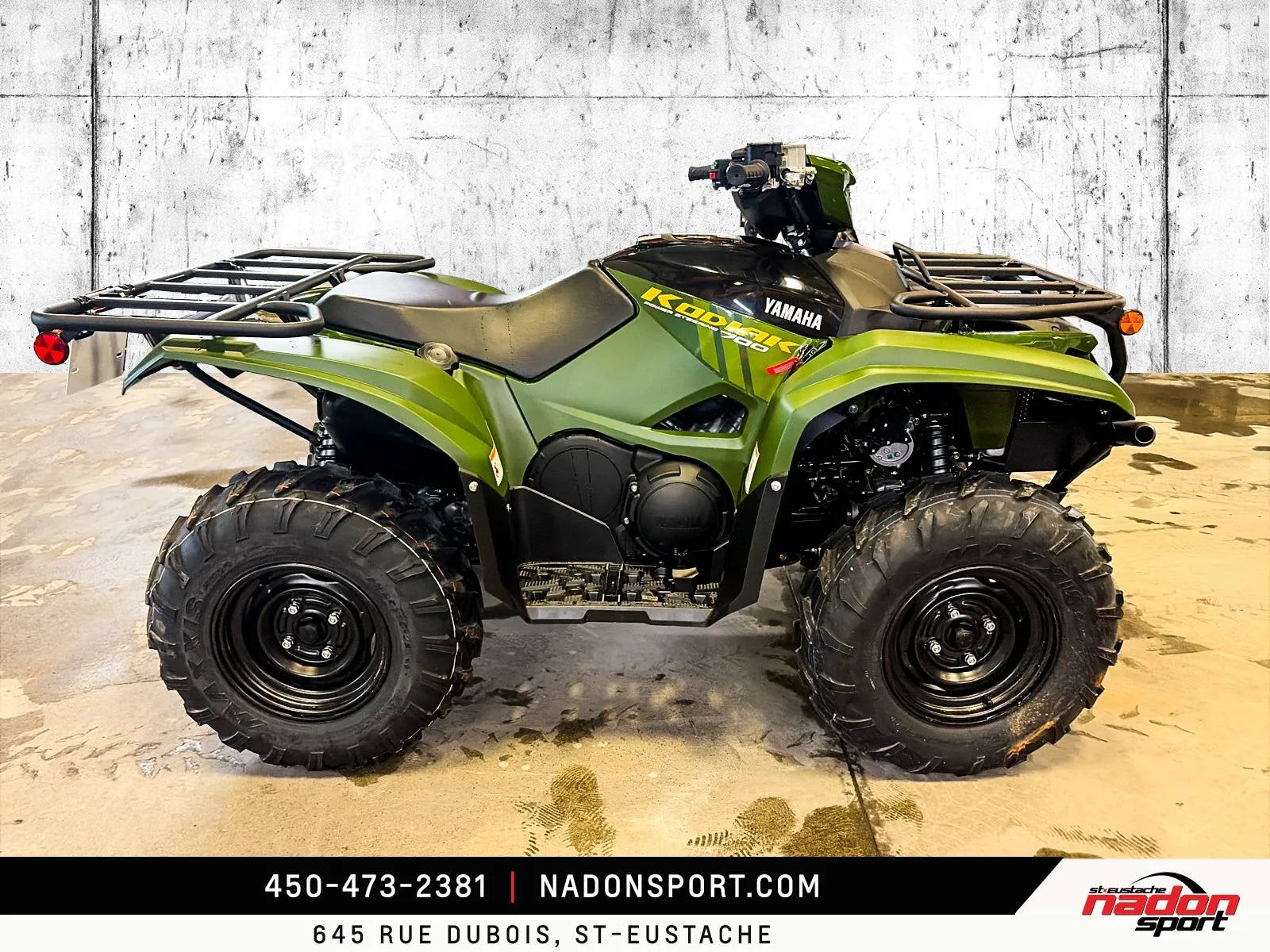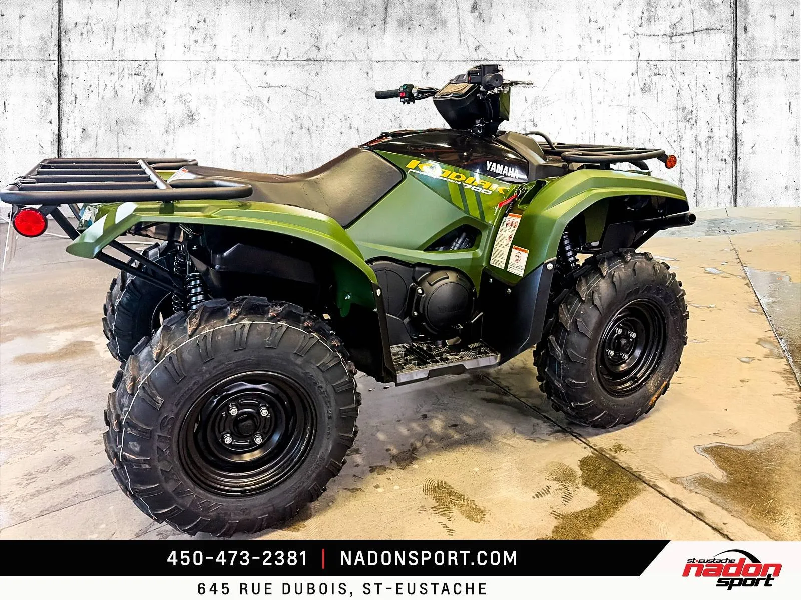 Yamaha Kodiak 700 DAE 2026 : La puissance et la polyvalence à l’état pur Le Yamaha Kodiak 700 DAE 2026 est bien plus qu’un VTT utilitaire et récréatif : c’est une invitation à l’aventure, la performance et la liberté, que ce soit pour le travail ou les loisirs. Conçu pour les pilotes à la recherche d’un parfait équilibre entre puissance, maniabilité et confort, le Kodiak 700 DAE s’impose comme une référence reconnue dans la catégorie des VTT utilitaires haut de gamme. Il est offert ici en noir robuste et finition élégante, alliant style et fonctionnalité pour toutes vos sorties tout-terrain. Équipé d’un moteur bicylindre 686 cm³ à injection électronique avec transmission Yamaha Ultramatic et direction assistée EPS, le Kodiak 700 DAE 2026 offre un couple généreux, une traction optimale et une stabilité inégalée, idéal pour les longues randonnées, les sentiers techniques, le travail exigeant et le hors route. Son châssis renforcé et sa suspension indépendante à bras oscillant, combinés à une ergonomie pensée pour le confort et une direction assistée précise, assurent une maîtrise totale et un confort supérieur, même dans les conditions les plus difficiles. Que vous rouliez sur les routes et sentiers du Québec, dans les Laurentides ou sur vos terrains de travail et d’aventure, ce Kodiak 700 DAE garantit une expérience de conduite sécuritaire, fiable et engageante. Côté design et équipement, le Kodiak 700 DAE 2026 se distingue par un style robuste et moderne, et une technologie pensée pour la performance, la sécurité et le confort : Direction assistée EPS Suspension indépendante à bras oscillant avec débattement amélioré Treuil intégré Yamaha Traction intégrale On-Command avec modes de conduite Éclairage LED haute visibilité Yamaha signe ici un VTT fiable, performant et polyvalent, taillé pour le travail et les loisirs tout-terrain les plus exigeants. Chez Nadon Sport à Saint-Eustache, nous proposons le Yamaha Kodiak 700 DAE 2026 neuf à $, avec plusieurs options de financement flexibles, incluant 1re, 2e et 3e chance au crédit. Venez le découvrir en concession et comprendre pourquoi il est considéré comme l’un des meilleurs VTT utilitaires du marché. Depuis 1961, notre équipe accompagne les passionnés de sports motorisés du Québec dans le choix de véhicules adaptés à leur style de conduite et à leur utilisation. Situé à Saint-Eustache, notre concessionnaire offre un service personnalisé, des conseils d’experts et un accompagnement complet avant et après l’achat.