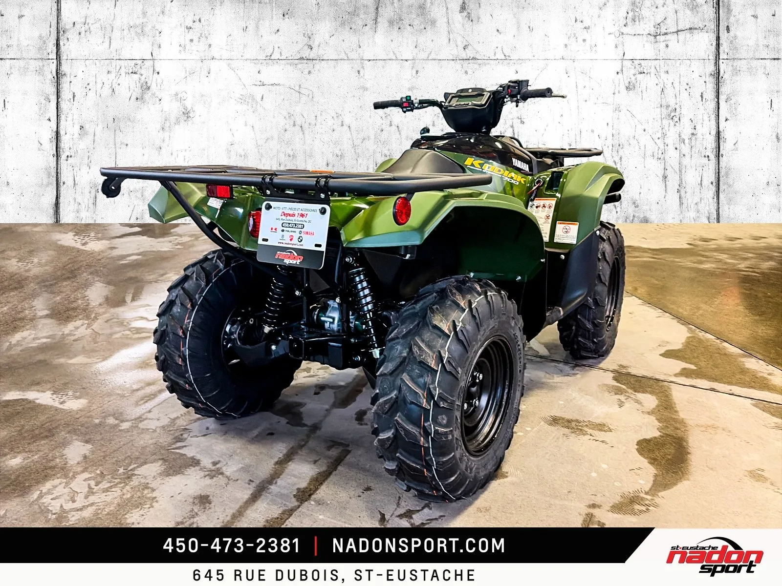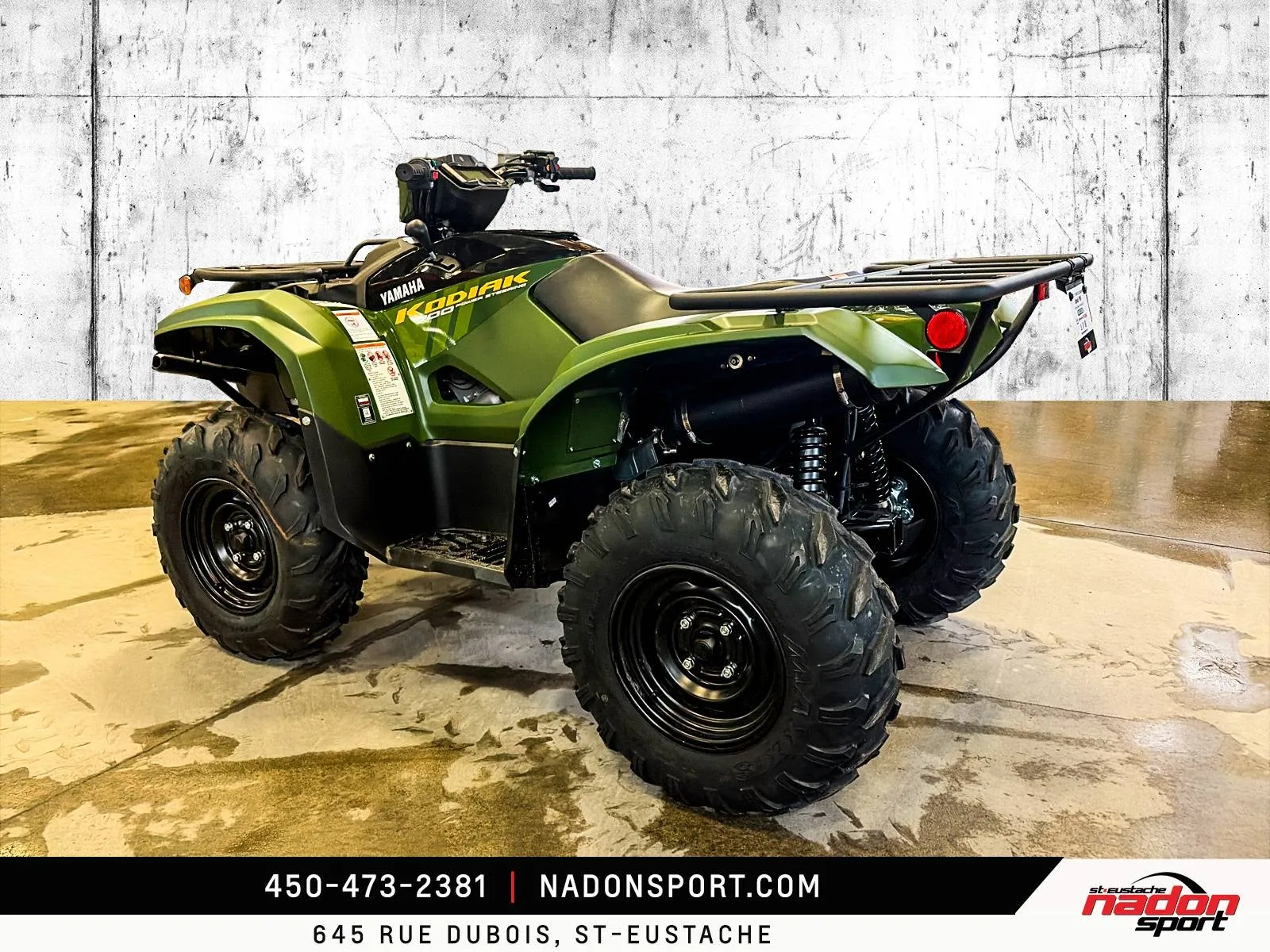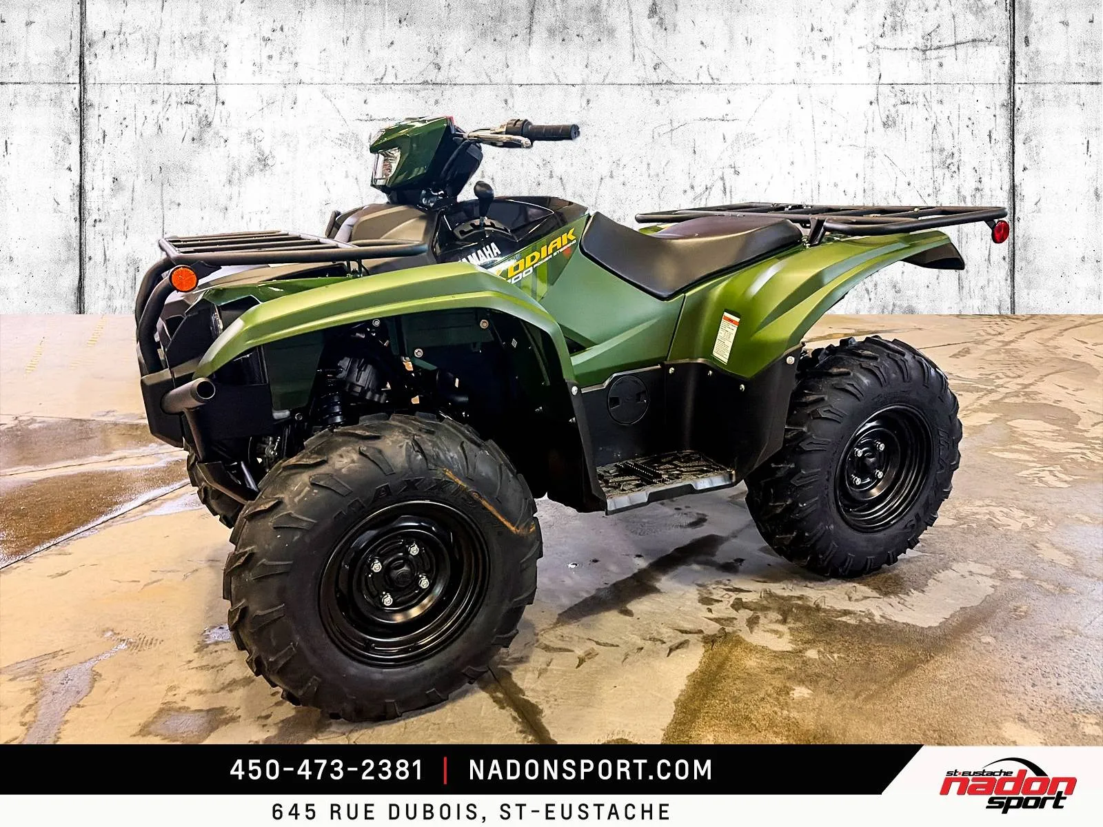 Yamaha Kodiak 700 DAE 2026 : La puissance et la polyvalence à l’état pur Le Yamaha Kodiak 700 DAE 2026 est bien plus qu’un VTT utilitaire et récréatif : c’est une invitation à l’aventure, la performance et la liberté, que ce soit pour le travail ou les loisirs. Conçu pour les pilotes à la recherche d’un parfait équilibre entre puissance, maniabilité et confort, le Kodiak 700 DAE s’impose comme une référence reconnue dans la catégorie des VTT utilitaires haut de gamme. Il est offert ici en noir robuste et finition élégante, alliant style et fonctionnalité pour toutes vos sorties tout-terrain. Équipé d’un moteur bicylindre 686 cm³ à injection électronique avec transmission Yamaha Ultramatic et direction assistée EPS, le Kodiak 700 DAE 2026 offre un couple généreux, une traction optimale et une stabilité inégalée, idéal pour les longues randonnées, les sentiers techniques, le travail exigeant et le hors route. Son châssis renforcé et sa suspension indépendante à bras oscillant, combinés à une ergonomie pensée pour le confort et une direction assistée précise, assurent une maîtrise totale et un confort supérieur, même dans les conditions les plus difficiles. Que vous rouliez sur les routes et sentiers du Québec, dans les Laurentides ou sur vos terrains de travail et d’aventure, ce Kodiak 700 DAE garantit une expérience de conduite sécuritaire, fiable et engageante. Côté design et équipement, le Kodiak 700 DAE 2026 se distingue par un style robuste et moderne, et une technologie pensée pour la performance, la sécurité et le confort : Direction assistée EPS Suspension indépendante à bras oscillant avec débattement amélioré Treuil intégré Yamaha Traction intégrale On-Command avec modes de conduite Éclairage LED haute visibilité Yamaha signe ici un VTT fiable, performant et polyvalent, taillé pour le travail et les loisirs tout-terrain les plus exigeants. Chez Nadon Sport à Saint-Eustache, nous proposons le Yamaha Kodiak 700 DAE 2026 neuf à $, avec plusieurs options de financement flexibles, incluant 1re, 2e et 3e chance au crédit. Venez le découvrir en concession et comprendre pourquoi il est considéré comme l’un des meilleurs VTT utilitaires du marché. Depuis 1961, notre équipe accompagne les passionnés de sports motorisés du Québec dans le choix de véhicules adaptés à leur style de conduite et à leur utilisation. Situé à Saint-Eustache, notre concessionnaire offre un service personnalisé, des conseils d’experts et un accompagnement complet avant et après l’achat.