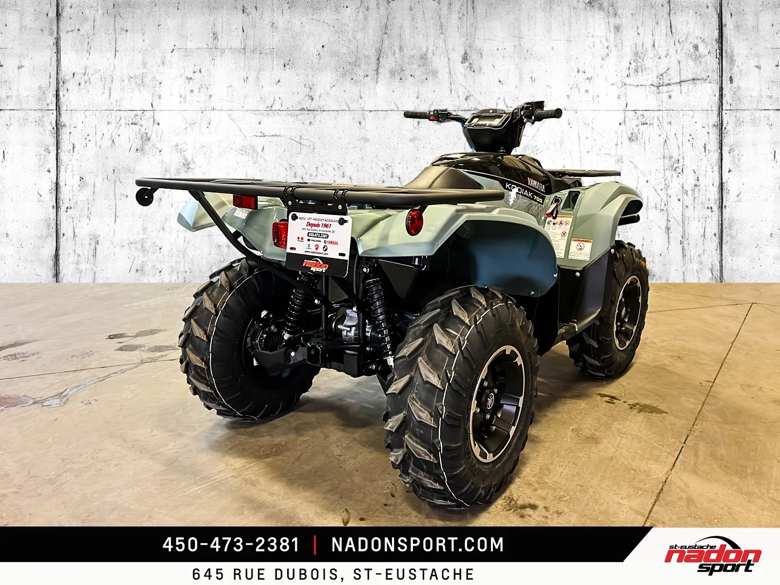 Yamaha Kodiak 700 DAE XT-R 2026 : Le VTT ultime pour repousser vos limites Le Yamaha Kodiak 700 DAE XT-R 2026 est bien plus qu’un VTT utilitaire et récréatif : c’est une invitation à l’aventure, la performance et la liberté, que ce soit pour le travail exigeant ou les loisirs tout-terrain. Conçu pour les pilotes à la recherche d’un parfait équilibre entre puissance, maniabilité et confort, le Kodiak 700 DAE XT-R s’impose comme une référence reconnue dans la catégorie des VTT utilitaires haute performance. Il est offert ici en coloris Vert Mat XT-R, audacieux et élégant, parfait pour affirmer votre présence sur les sentiers les plus difficiles. Équipé d’un moteur bicylindre 686 cm³ à injection électronique avec transmission Yamaha Ultramatic et EPS (direction assistée), le Kodiak 700 DAE XT-R 2026 offre un couple puissant, une traction supérieure et une stabilité optimale, idéal pour les longues randonnées, les sentiers techniques, le travail intensif et le hors route extrême. Son châssis robuste et sa suspension indépendante à bras oscillant, combinés à une ergonomie pensée pour la conduite tout-terrain et une direction assistée précise, assurent une maîtrise totale et un confort exceptionnel, même dans les conditions les plus exigeantes. Que vous rouliez sur les routes et sentiers du Québec, dans les Laurentides ou sur vos terrains de travail et de loisir, ce Kodiak 700 DAE XT-R garantit une expérience de conduite sécuritaire, engageante et fiable. Côté design et équipement, le Kodiak 700 DAE XT-R 2026 se distingue par un style robuste et aventureux, et une technologie pensée pour la performance, la sécurité et le confort : Direction assistée EPS Suspension indépendante à bras oscillant avec débattement amélioré Treuil intégré Yamaha Traction intégrale On-Command avec modes de conduite Éclairage LED haute visibilité Yamaha signe ici un VTT fiable, performant et polyvalent, taillé pour le travail et les loisirs tout-terrain les plus exigeants. Chez Nadon Sport à Saint-Eustache, nous proposons le Yamaha Kodiak 700 DAE XT-R 2026 neuf à $, avec plusieurs options de financement flexibles, incluant 1re, 2e et 3e chance au crédit. Venez le découvrir en concession et comprendre pourquoi il est considéré comme l’un des meilleurs VTT utilitaires du marché. Depuis 1961, notre équipe accompagne les passionnés de sports motorisés du Québec dans le choix de véhicules adaptés à leur style de conduite et à leur utilisation. Situé à Saint-Eustache, notre concessionnaire offre un service personnalisé, des conseils d’experts et un accompagnement complet avant et après l’achat.
