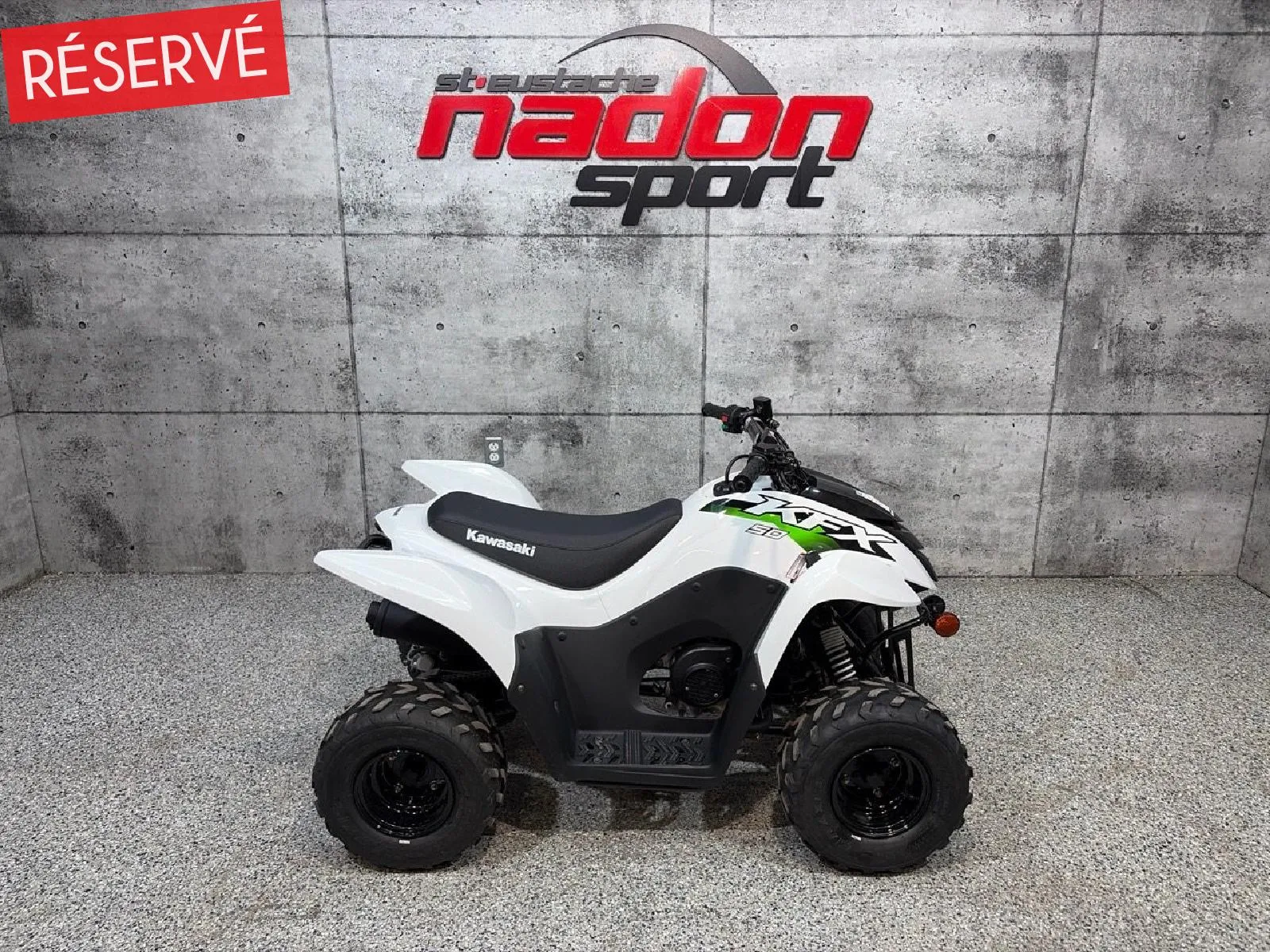 Kawasaki KFX50 2026 : La première vraie aventure hors route, en toute confiance La Kawasaki KFX50 2026 est bien plus qu’un VTT jeunesse : c’est une invitation à la découverte, au plaisir de conduire et à l’autonomie, dans un environnement sécuritaire parfaitement adapté aux jeunes pilotes. Conçue pour les enfants à la recherche d’un parfait équilibre entre maniabilité, fiabilité et simplicité, la KFX50 s’impose comme une référence reconnue dans la catégorie des VTT pour enfants et débutants. Elle est offerte ici en vert Kawasaki emblématique, une teinte vive, éclatante et sportive qui reflète l’ADN tout-terrain de la marque. Équipé d’un moteur monocylindre 4 temps de 50 cc, refroidi par air et à carburateur, le KFX50 2026 offre une accélération douce, contrôlée et progressive, idéale pour l’apprentissage et les premières expériences en sentiers. Son châssis compact et léger, combiné à une transmission automatique CVT et à une ergonomie pensée pour les jeunes conducteurs, assure une conduite stable, intuitive et rassurante, même dans des conditions exigeantes. Que vous rouliez sur les sentiers du Québec, dans les Laurentides ou sur un terrain privé, ce KFX50 garantit une expérience de conduite sécuritaire, ludique et engageante. Côté design et équipement, le KFX50 2026 se distingue par un style sportif et robuste, jumelé à une technologie pensée avant tout pour la sécurité et la tranquillité d’esprit des parents : Limiteur de vitesse ajustable Transmission automatique CVT (sans embrayage) Démarrage électrique simple et fiable Coupe-circuit de sécurité Commandes adaptées aux jeunes pilotes Kawasaki signe ici un VTT fiable, durable et polyvalent, taillé pour l’initiation, l’apprentissage et le loisir familial. Chez Nadon Sport à Saint-Eustache, nous proposons le Kawasaki KFX50 2026 neuf à $, avec plusieurs options de financement faciles, incluant la 1re, 2e et 3e chance au crédit. Venez le découvrir en concession et comprendre pourquoi il est considéré comme l’un des meilleurs VTT jeunesse du marché. Chez Nadon Sport, notre équipe accompagne les passionnés de sports motorisés du Québec depuis 1961 dans le choix de véhicules adaptés à leur style de conduite et à leur utilisation. Situé à Saint-Eustache, notre concessionnaire vous offre un service personnalisé, des conseils d’experts et un accompagnement complet avant et après l’achat.