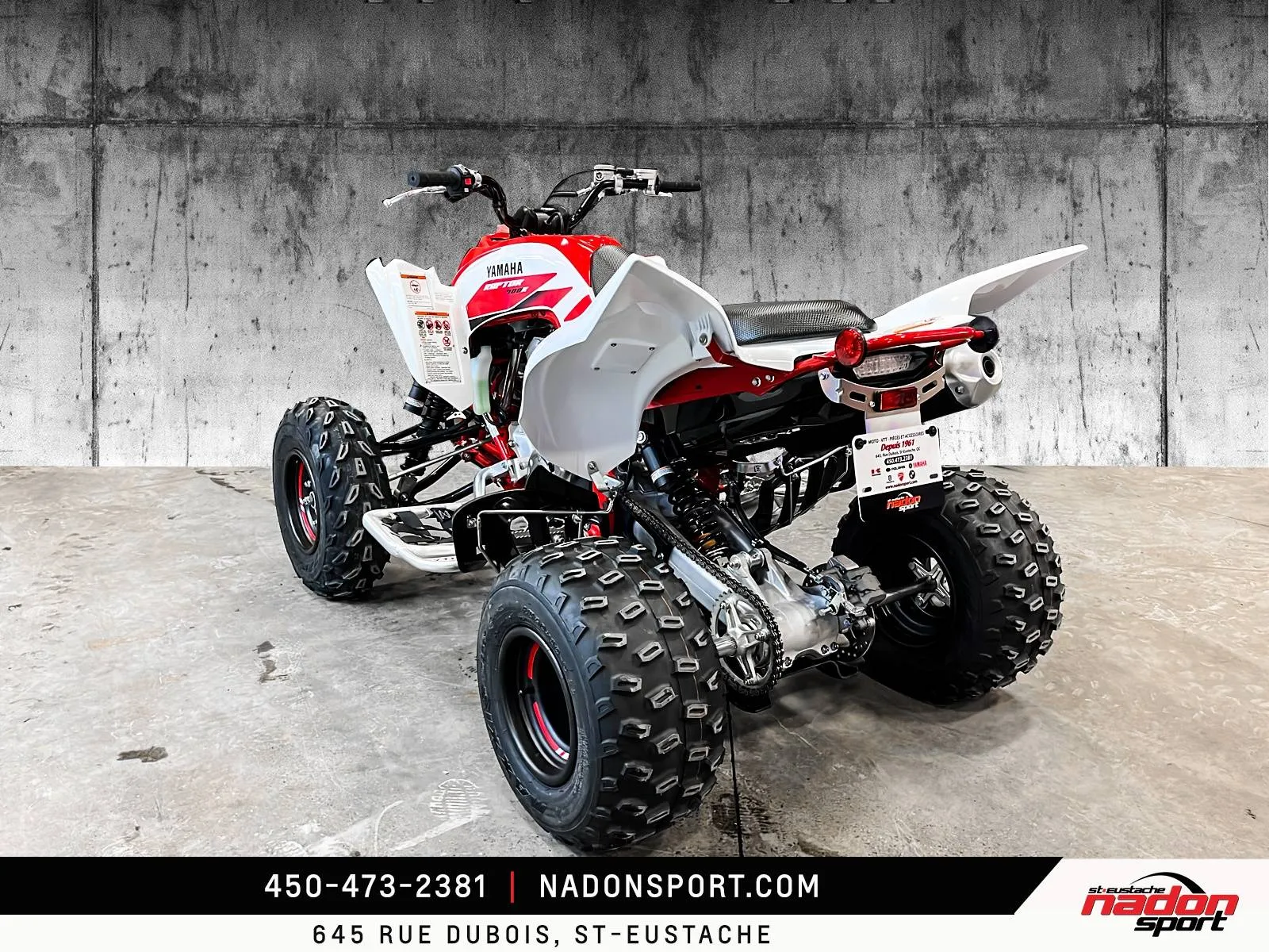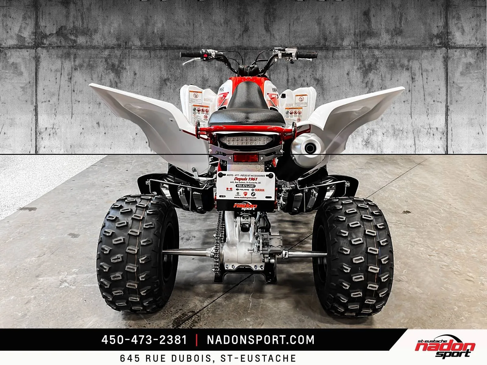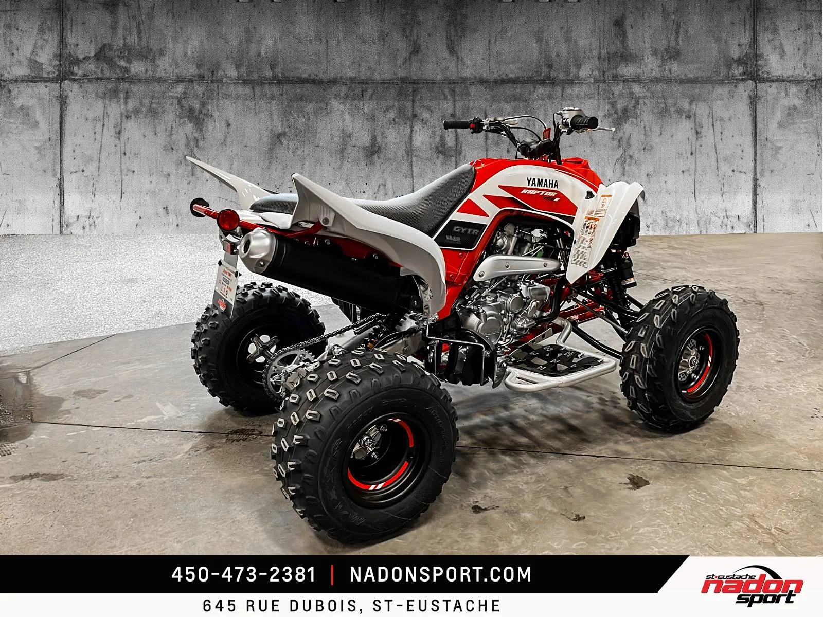Yamaha Raptor 700R SE 70th Anniversary 2026 : la performance légendaire à l’état pur La Yamaha Raptor 700R SE 70th Anniversary 2026 est bien plus qu’un VTT sport : c’est une invitation directe à la performance, à la liberté et au plaisir de conduite sans compromis. Conçu pour les pilotes à la recherche d’un parfait équilibre entre puissance, maniabilité et fiabilité, le Raptor 700R s’impose depuis des années comme une référence absolue dans la catégorie des VTT sport haute performance. Cette édition spéciale 70e anniversaire est offerte dans une livrée exclusive inspirée de l’héritage Yamaha, mêlant des teintes contrastées audacieuses, sportives et distinctives, qui rendent hommage à 70 ans d’innovation et de succès en compétition. Équipé d’un moteur monocylindre 4 temps de 686 cm³ à injection électronique, le Raptor 700R offre une accélération franche, un couple puissant et une traction exceptionnelle, idéale pour les sentiers sportifs, le hors route agressif et les longues randonnées dynamiques. Son châssis sport léger et rigide, combiné à une suspension performante à long débattement et une ergonomie sportive centrée sur le pilote, assure une stabilité remarquable, une précision de pilotage accrue et un contrôle total, même dans des conditions exigeantes. Que vous rouliez sur les sentiers du Québec, les Laurentides ou les terrains plus techniques, ce modèle garantit une expérience de conduite engageante, sécuritaire et exaltante. Côté design et équipement, le Raptor 700R SE 70th Anniversary 2026 se distingue par un style sportif, agressif et exclusif, avec une technologie pensée pour la performance et le contrôle : Suspension avant et arrière haute performance ajustable Injection électronique Yamaha pour une réponse moteur précise Freins à disque puissants avant et arrière Direction sportive offrant une grande précision Éléments de finition exclusifs à l’édition 70e anniversaire Yamaha signe ici un VTT sport fiable, extrêmement performant et emblématique, taillé pour les amateurs de sensations fortes et de conduite sportive. Chez Nadon Sport à Saint-Eustache, nous proposons le Yamaha Raptor 700R SE 70th Anniversary 2026 neuf à $, avec plusieurs options de financement faciles, incluant la 1re, 2e et 3e chance au crédit. Venez le découvrir en concession et comprendre pourquoi il est considéré comme l’un des meilleurs VTT sport du marché. Chez Nadon Sport, notre équipe accompagne les passionnés de sports motorisés du Québec depuis 1961, dans le choix de véhicules adaptés à leur style de conduite et à leur utilisation. Situé à Saint-Eustache, notre concessionnaire vous offre un service personnalisé, des conseils d’experts et un accompagnement complet avant et après l’achat.